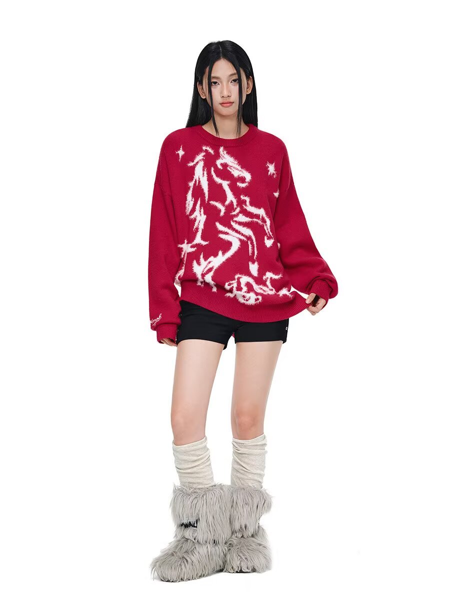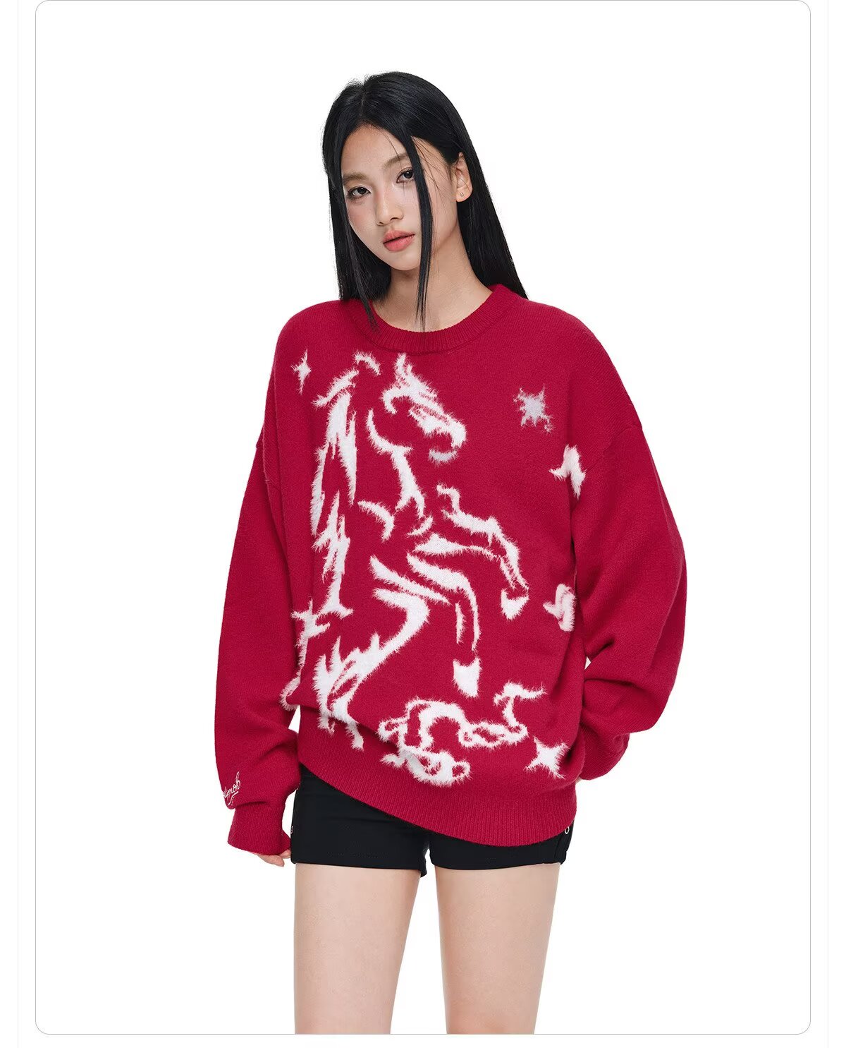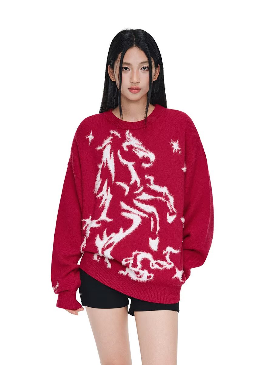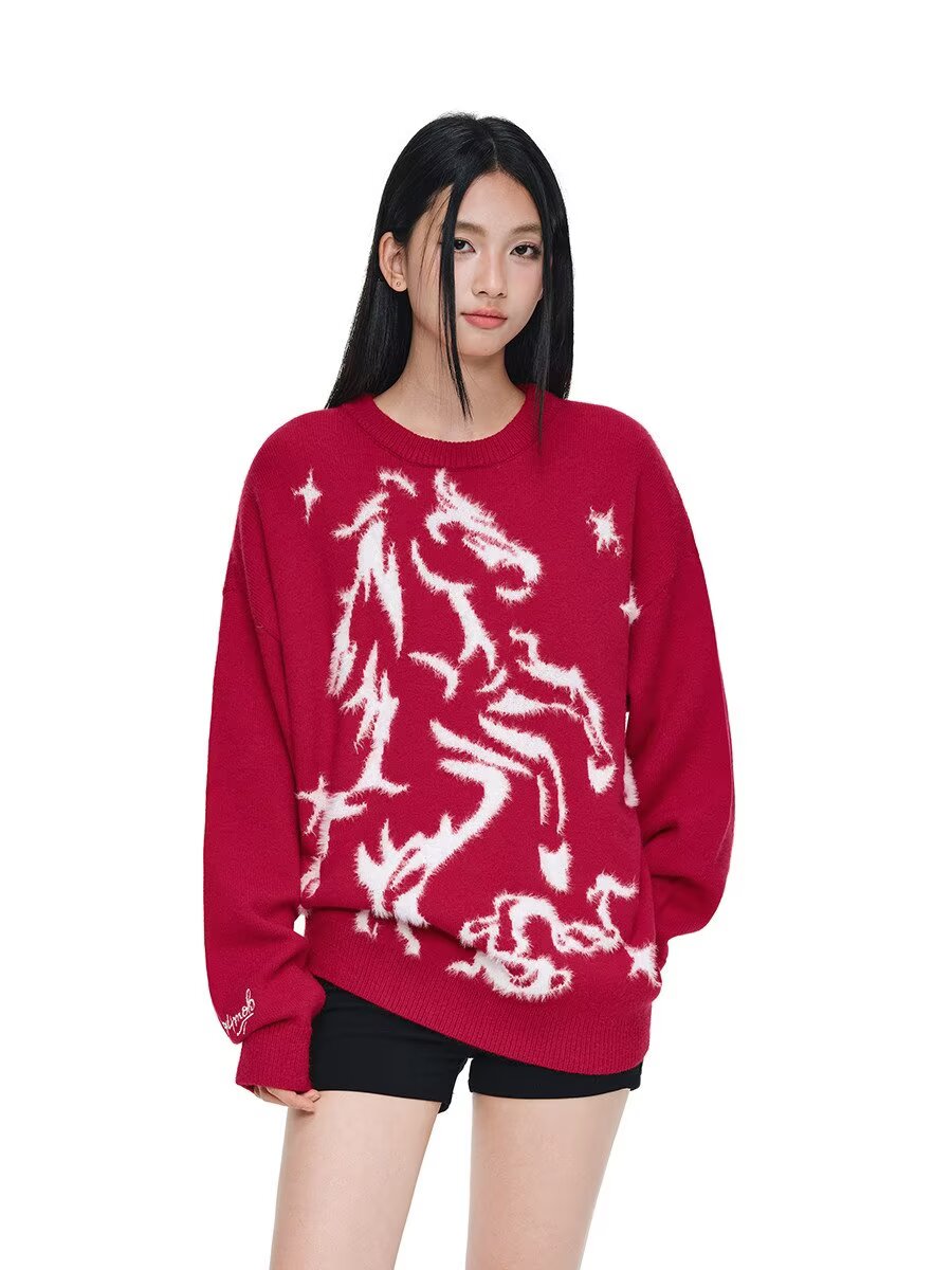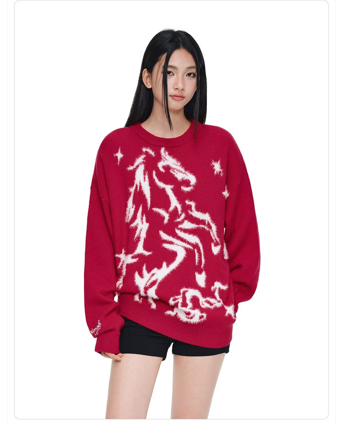 马年新年款仿貂毛毛衣魔方男女款冬季潮牌宽松慵懒风情侣针织衫