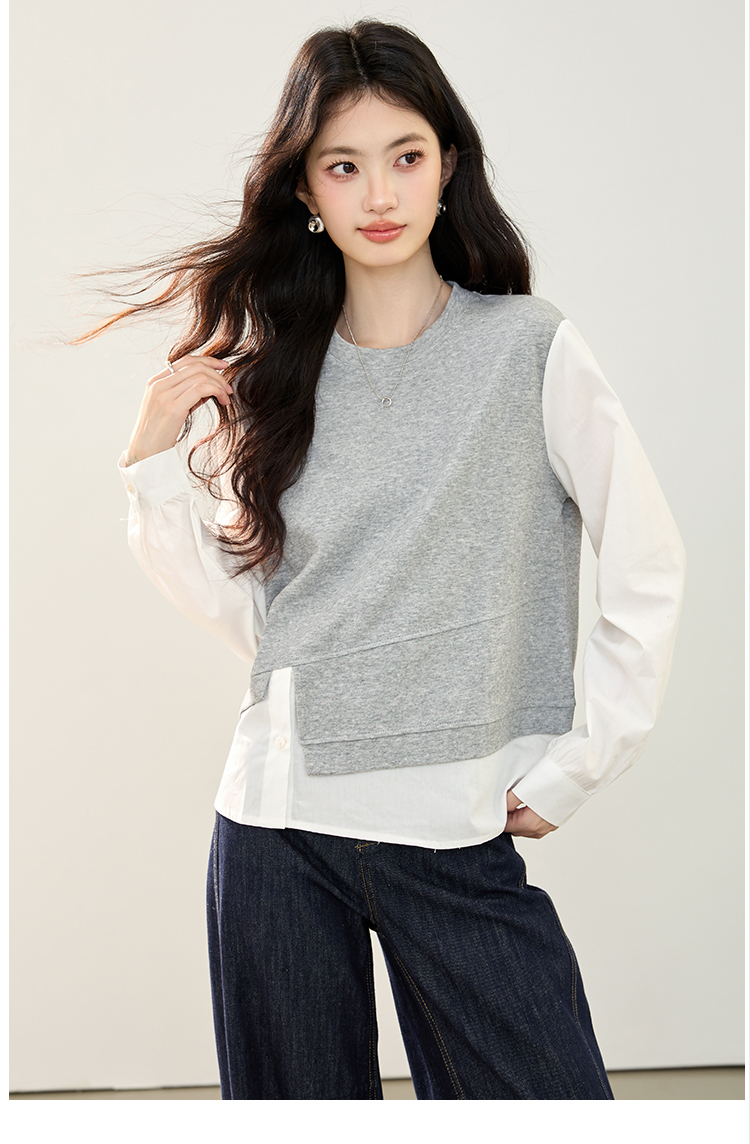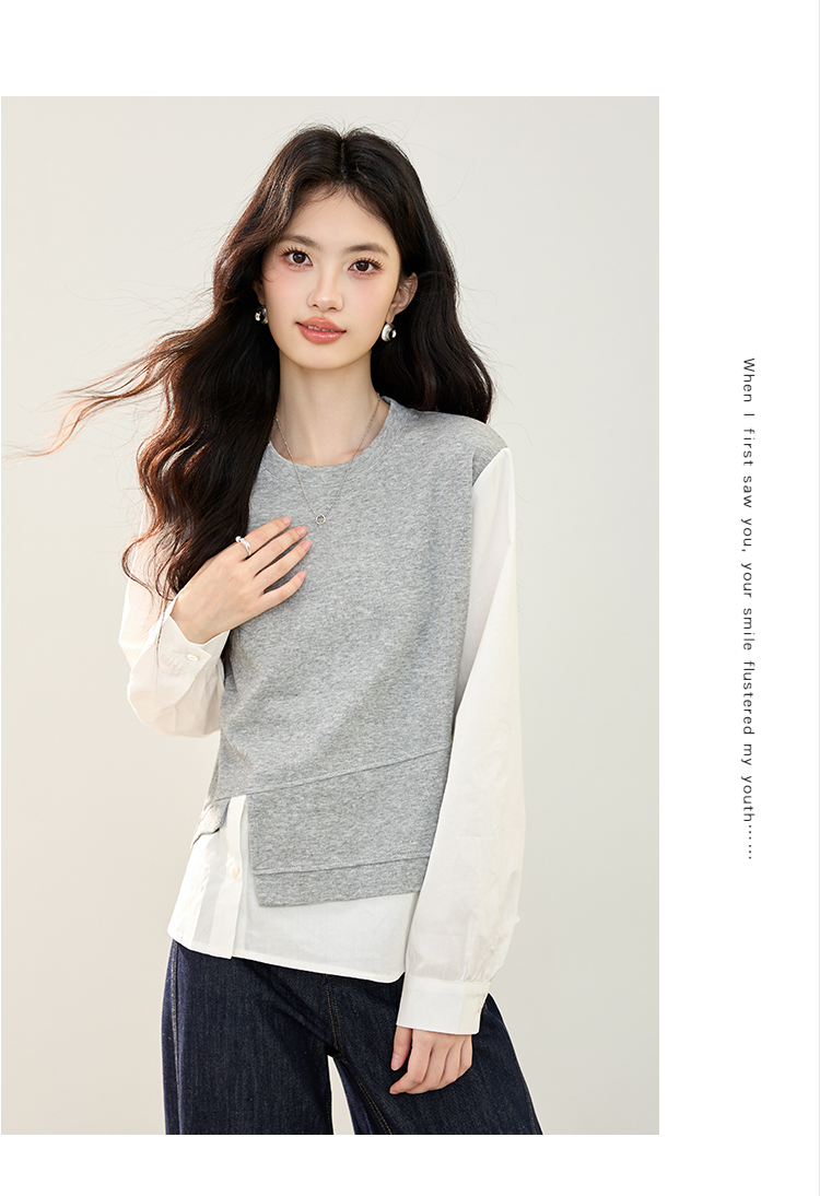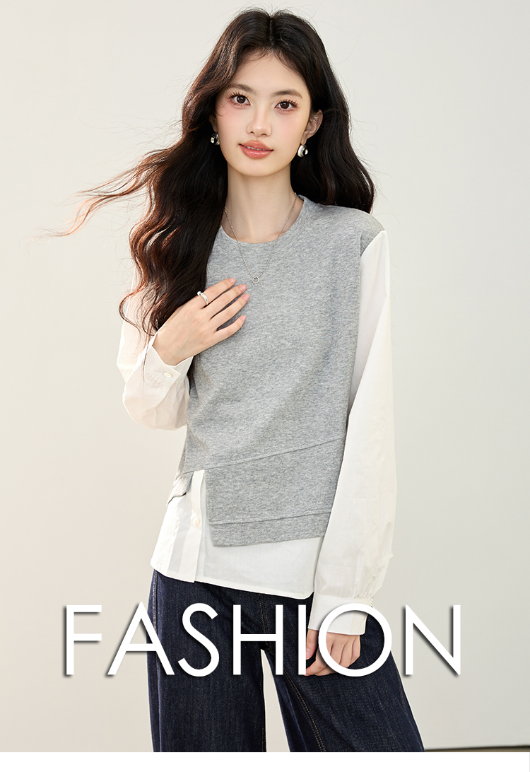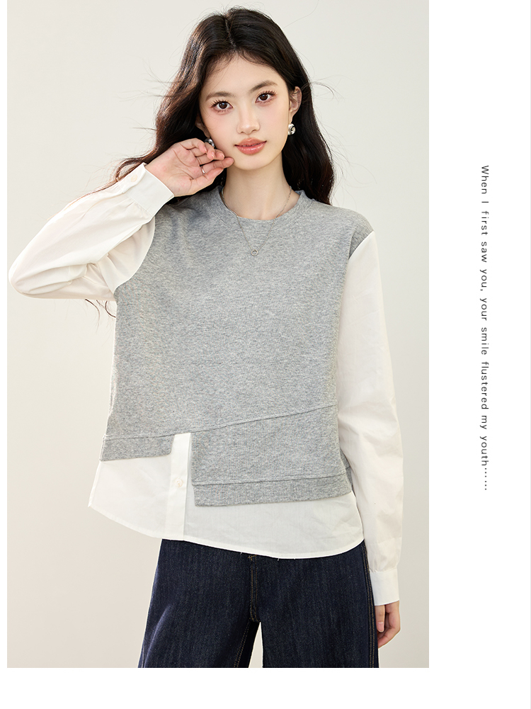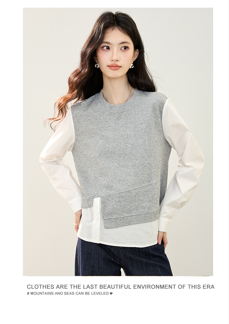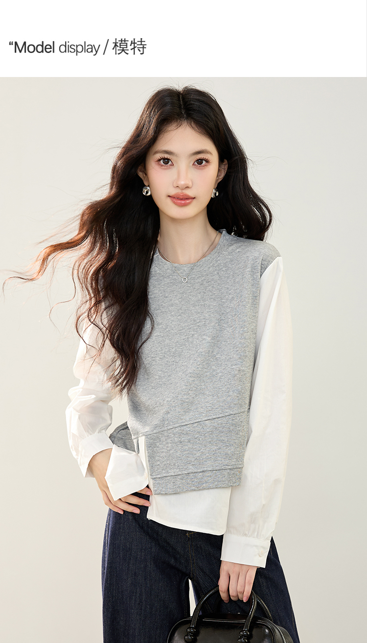 实拍假两件不规则卫衣女2026春装新款套头气质针织拼接上衣