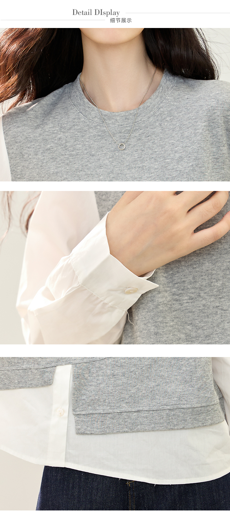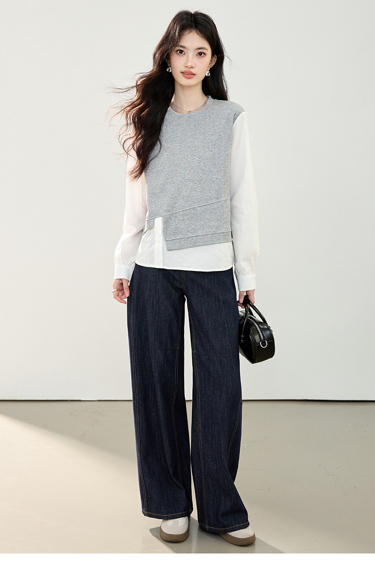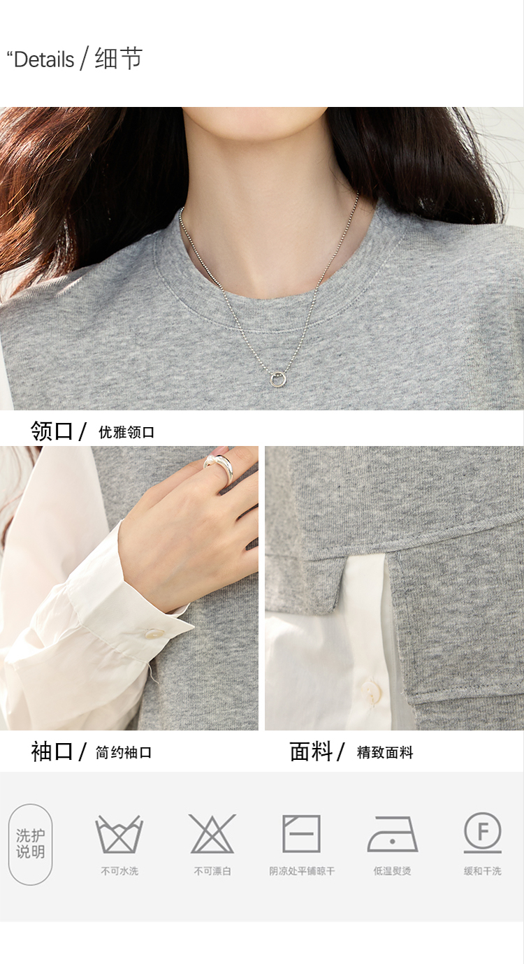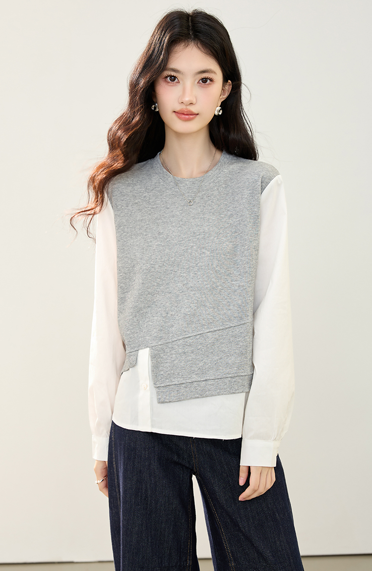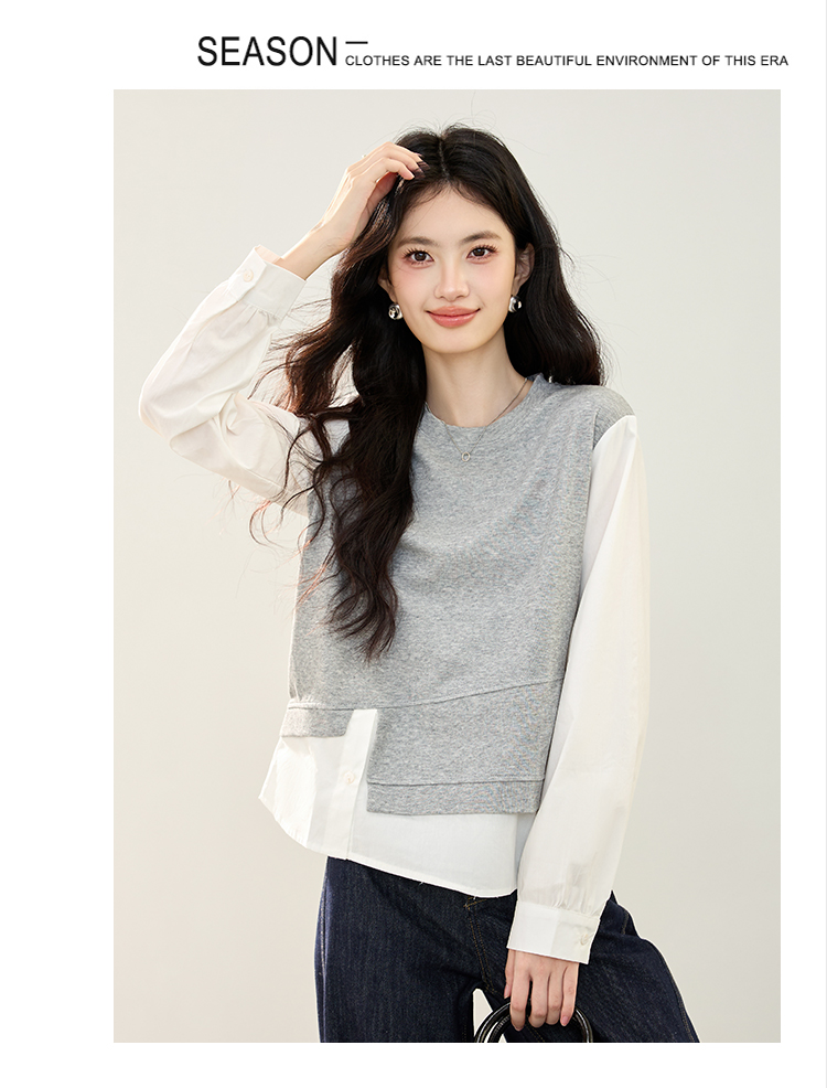 实拍假两件不规则卫衣女2026春装新款套头气质针织拼接上衣