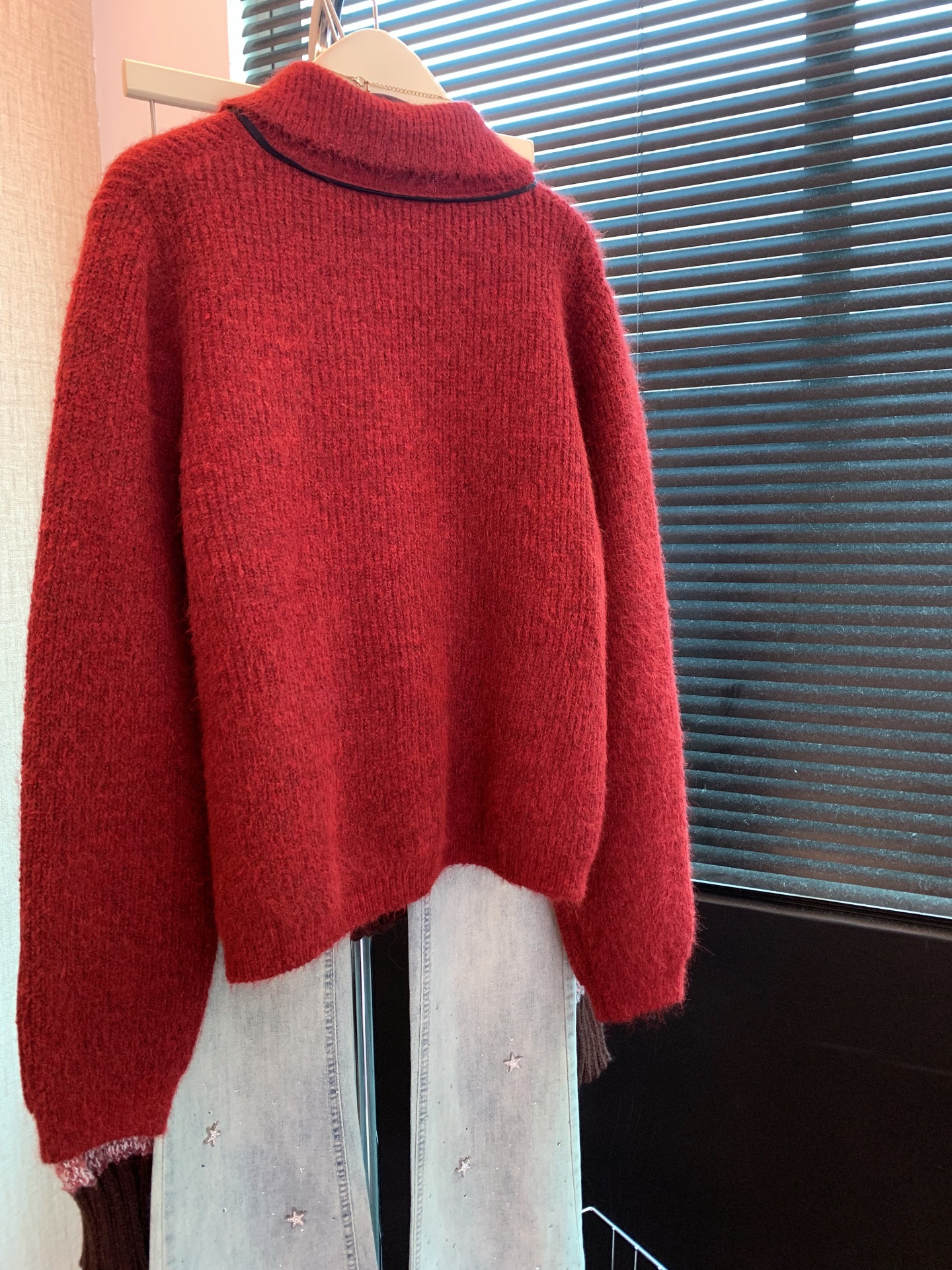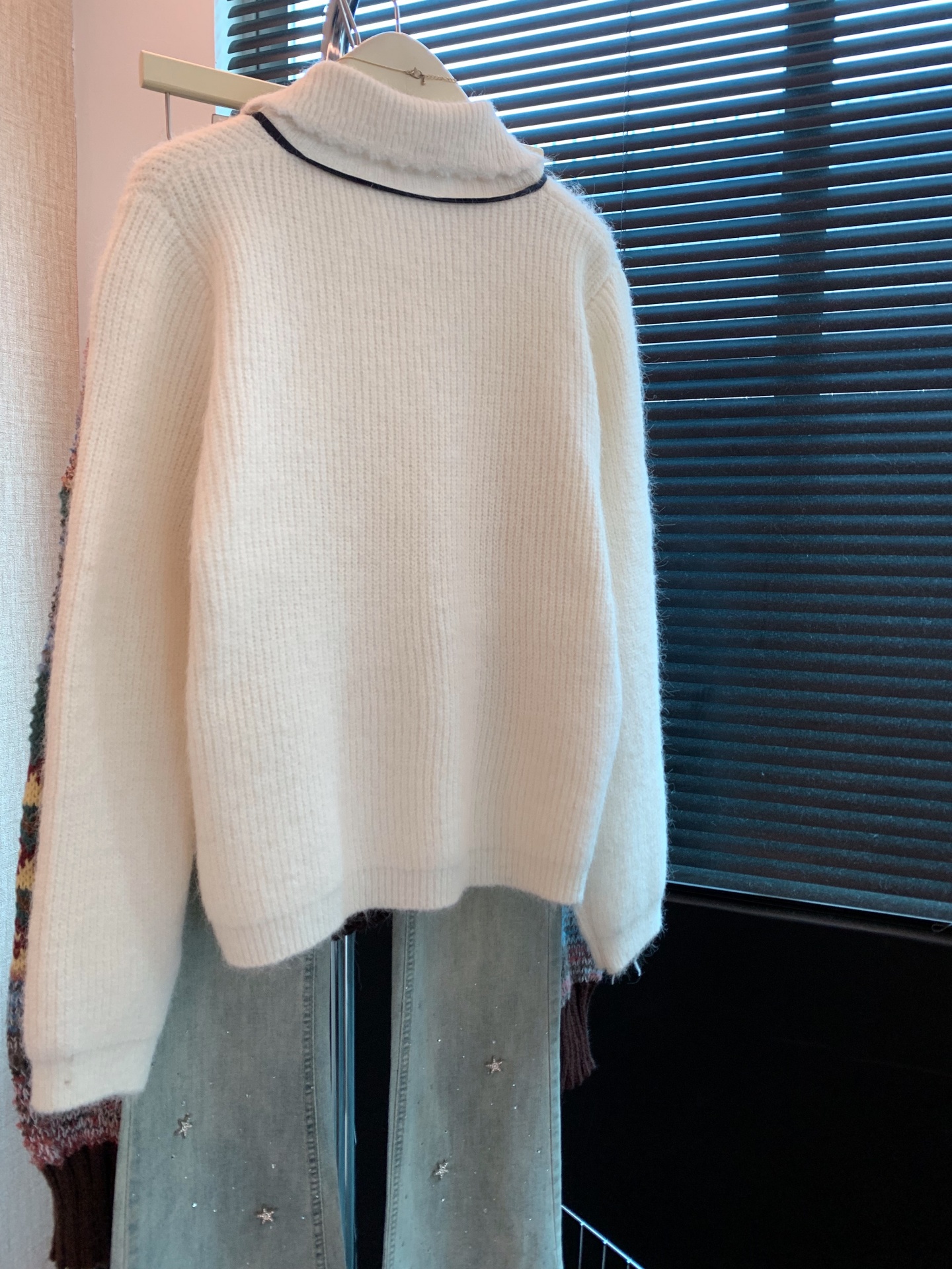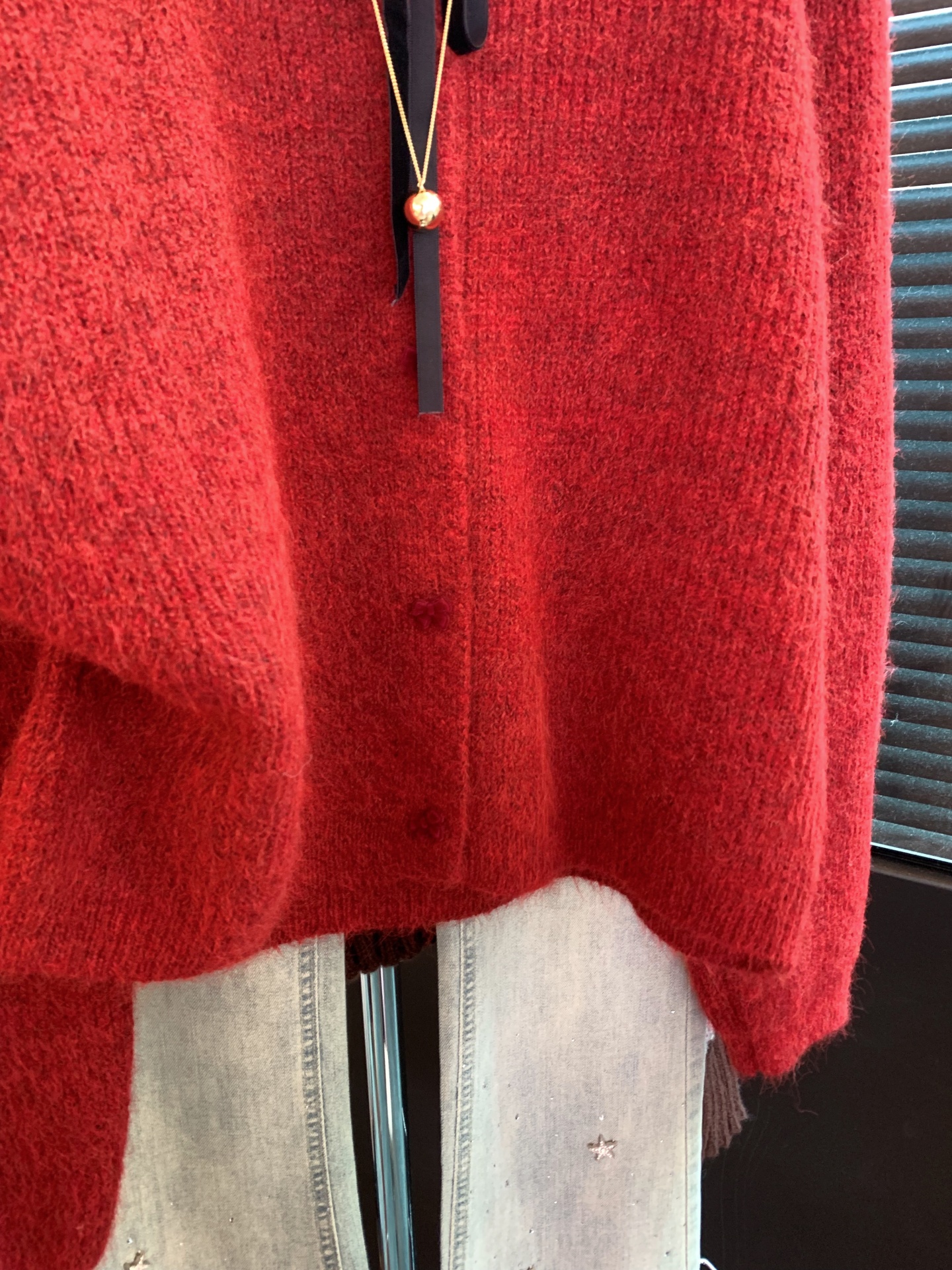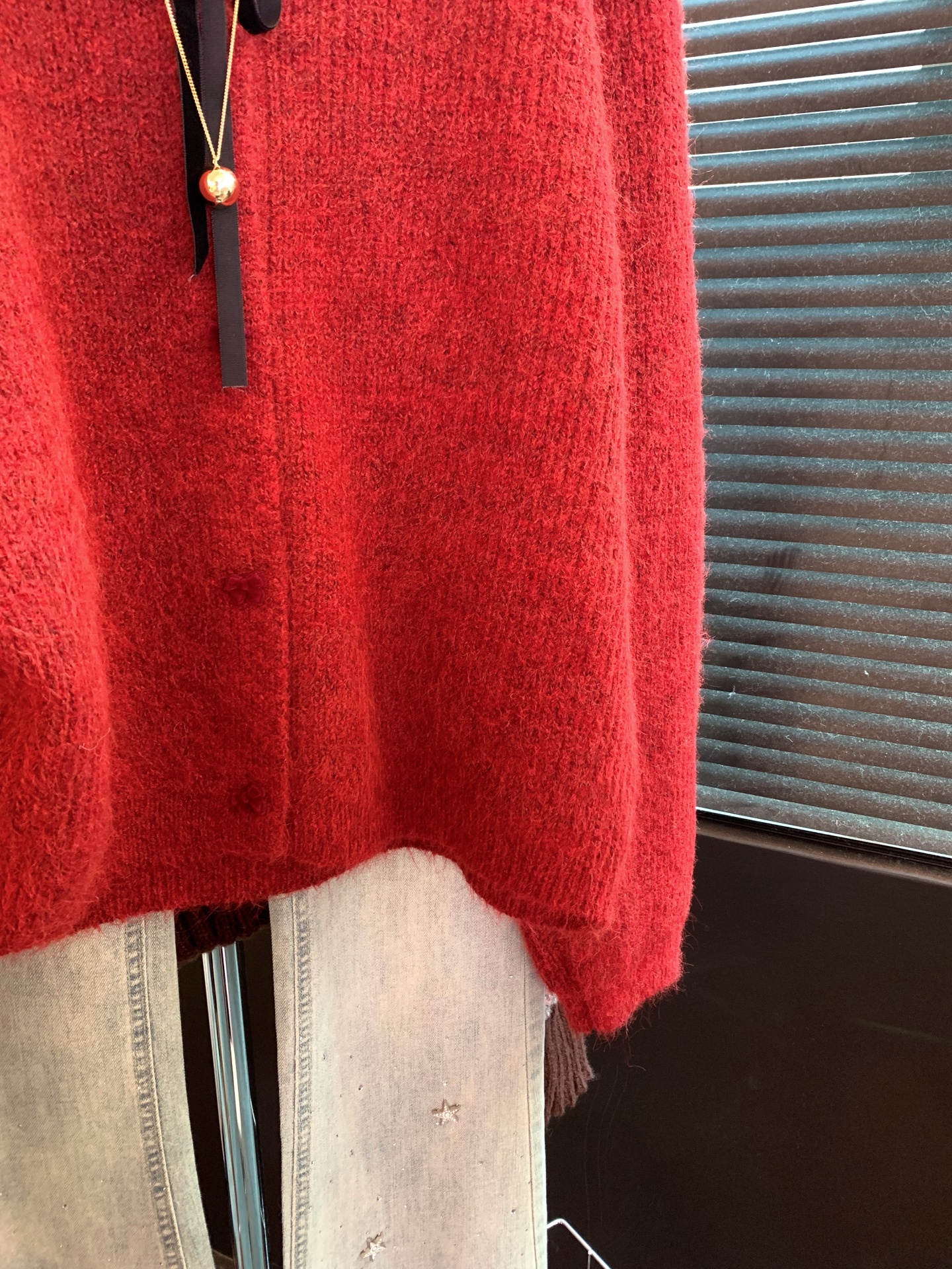 实拍秋冬甜美翻领系带蝴蝶结系带针织开衫女毛衣学院风长袖毛衣