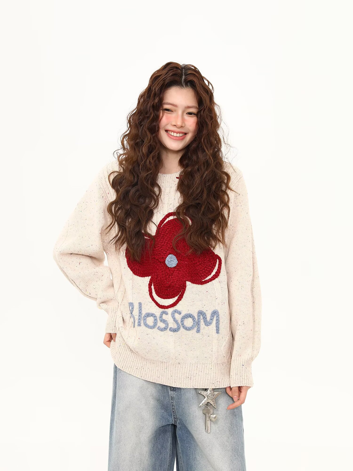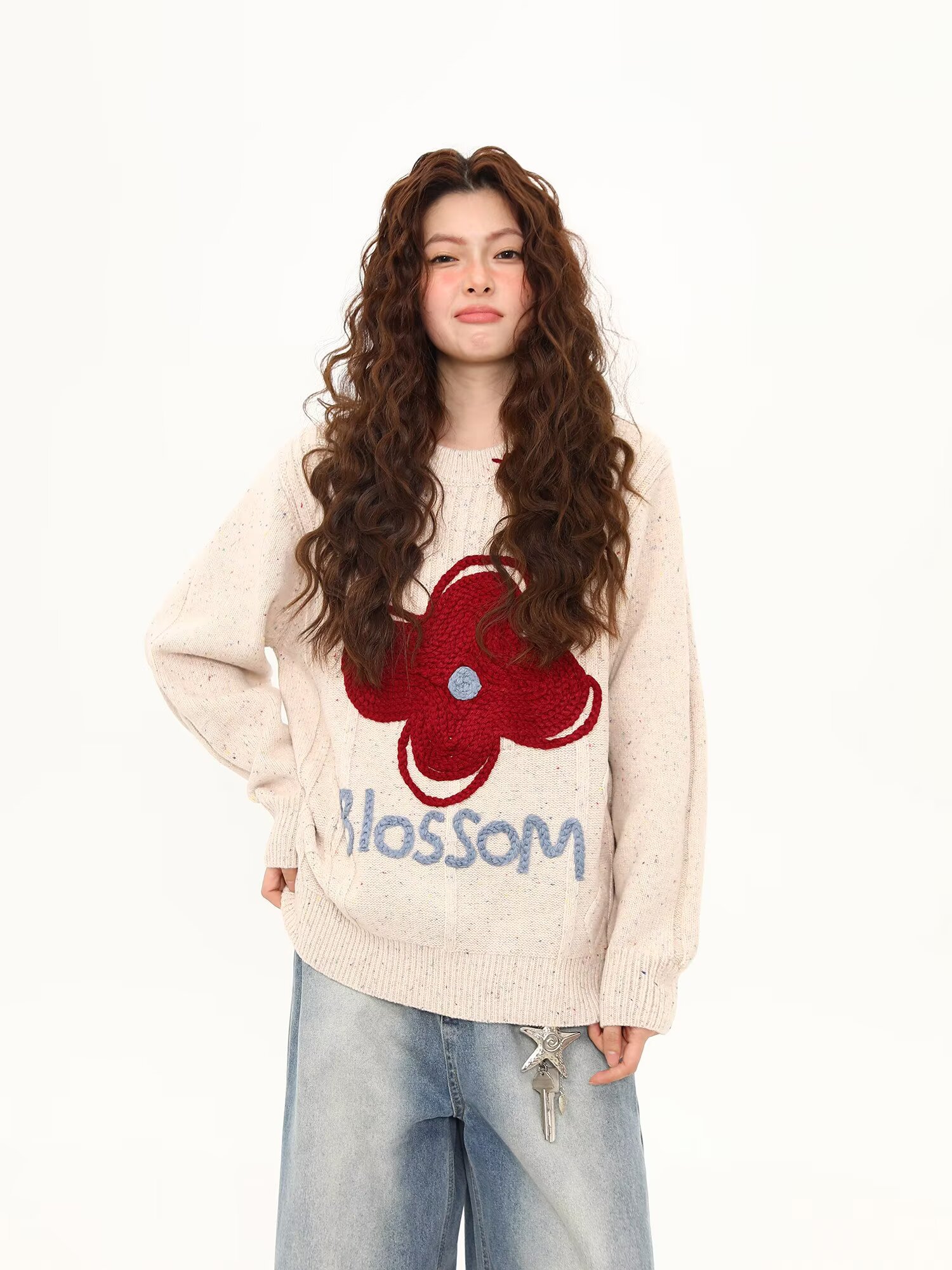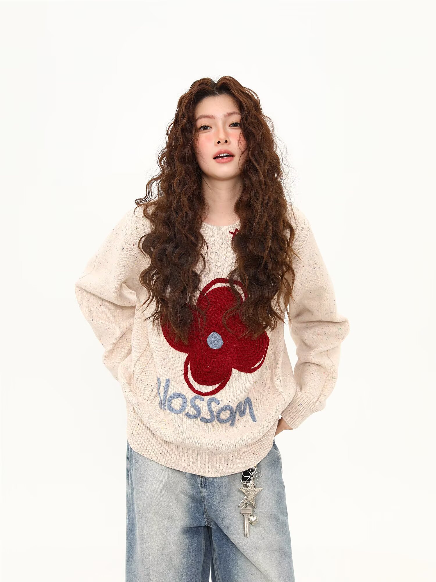 65涤纶35聚丙烯腈纤维刺绣彩点正色毛衣女2026春情侣针织衫上衣
