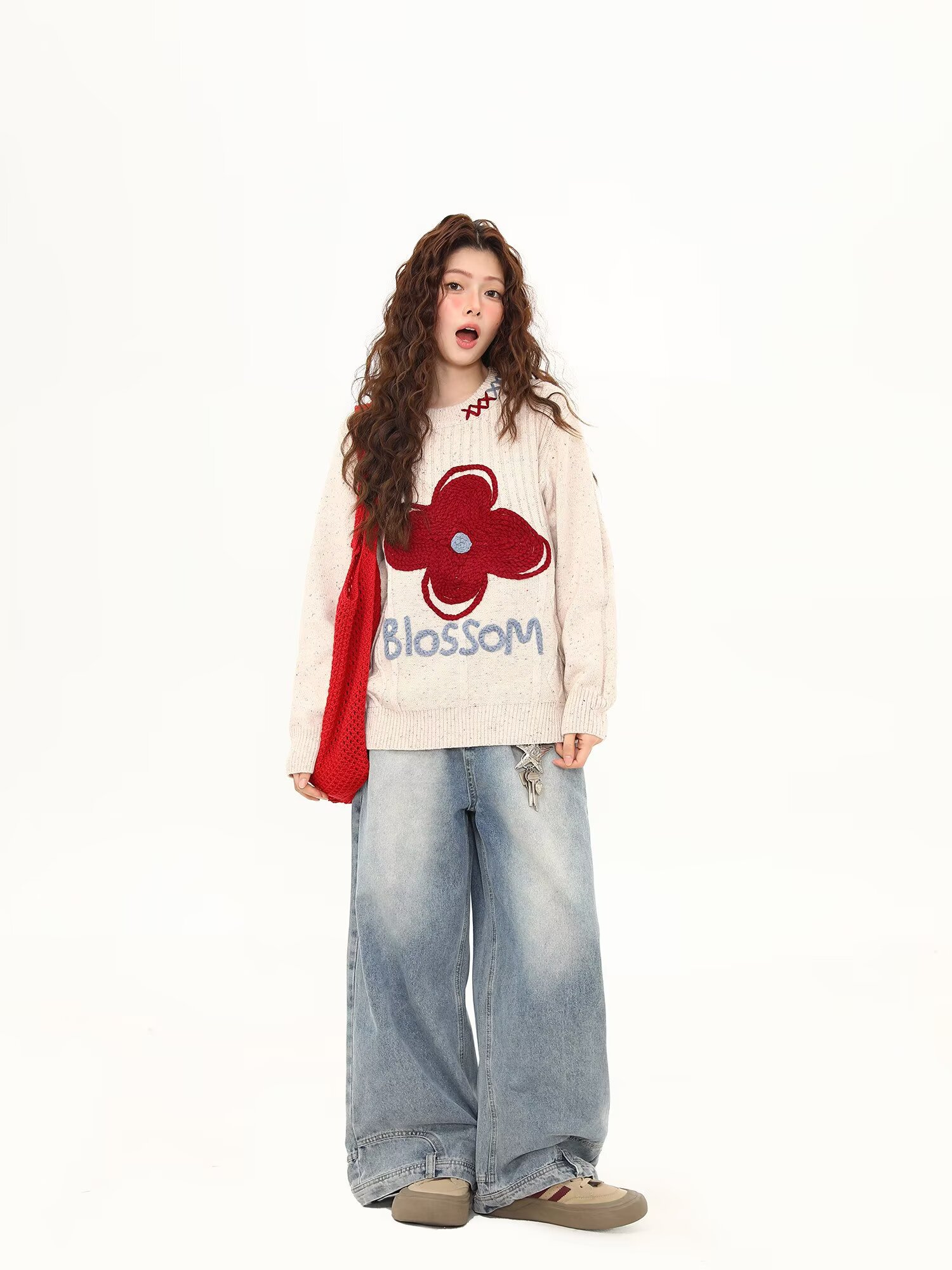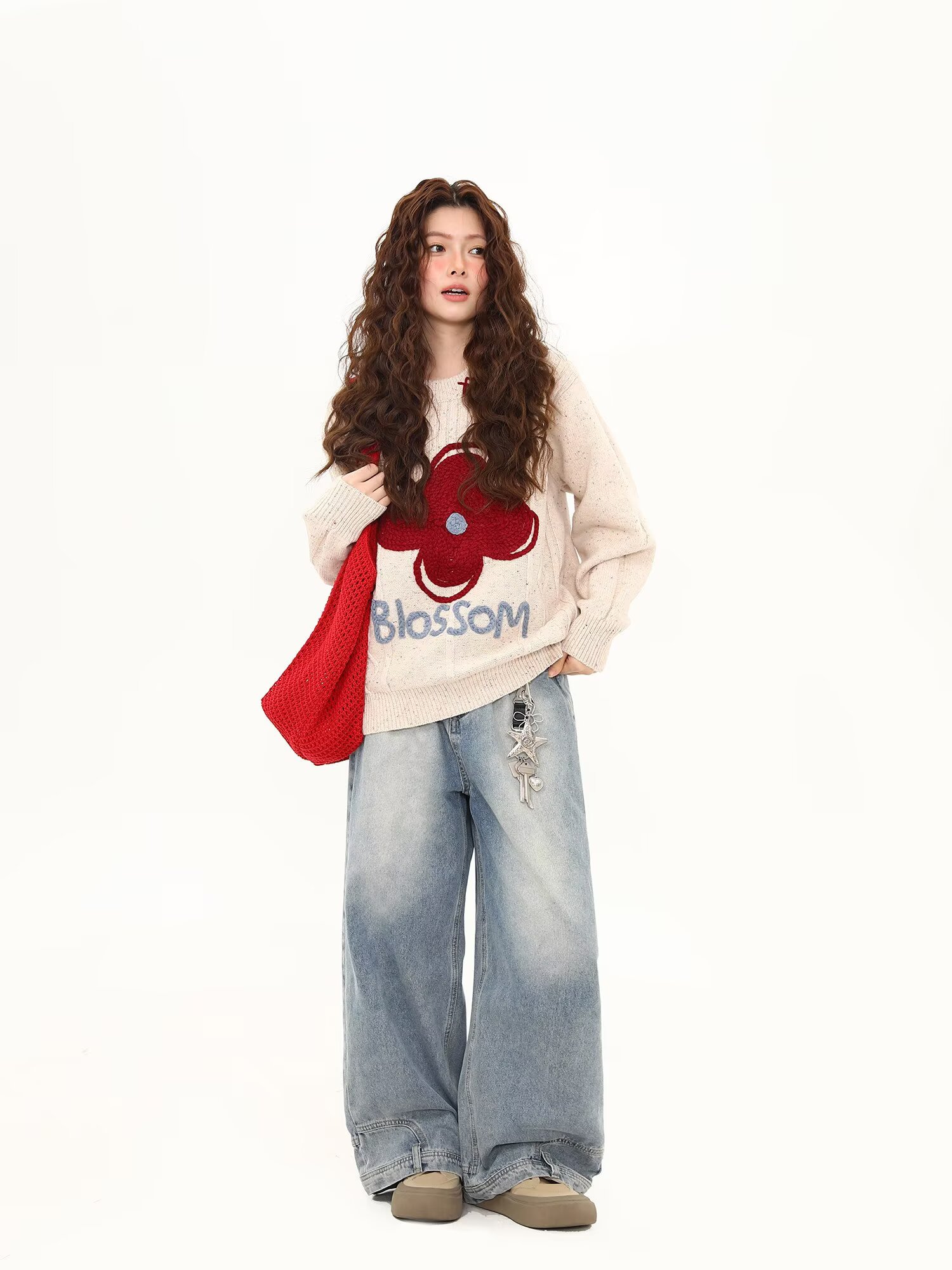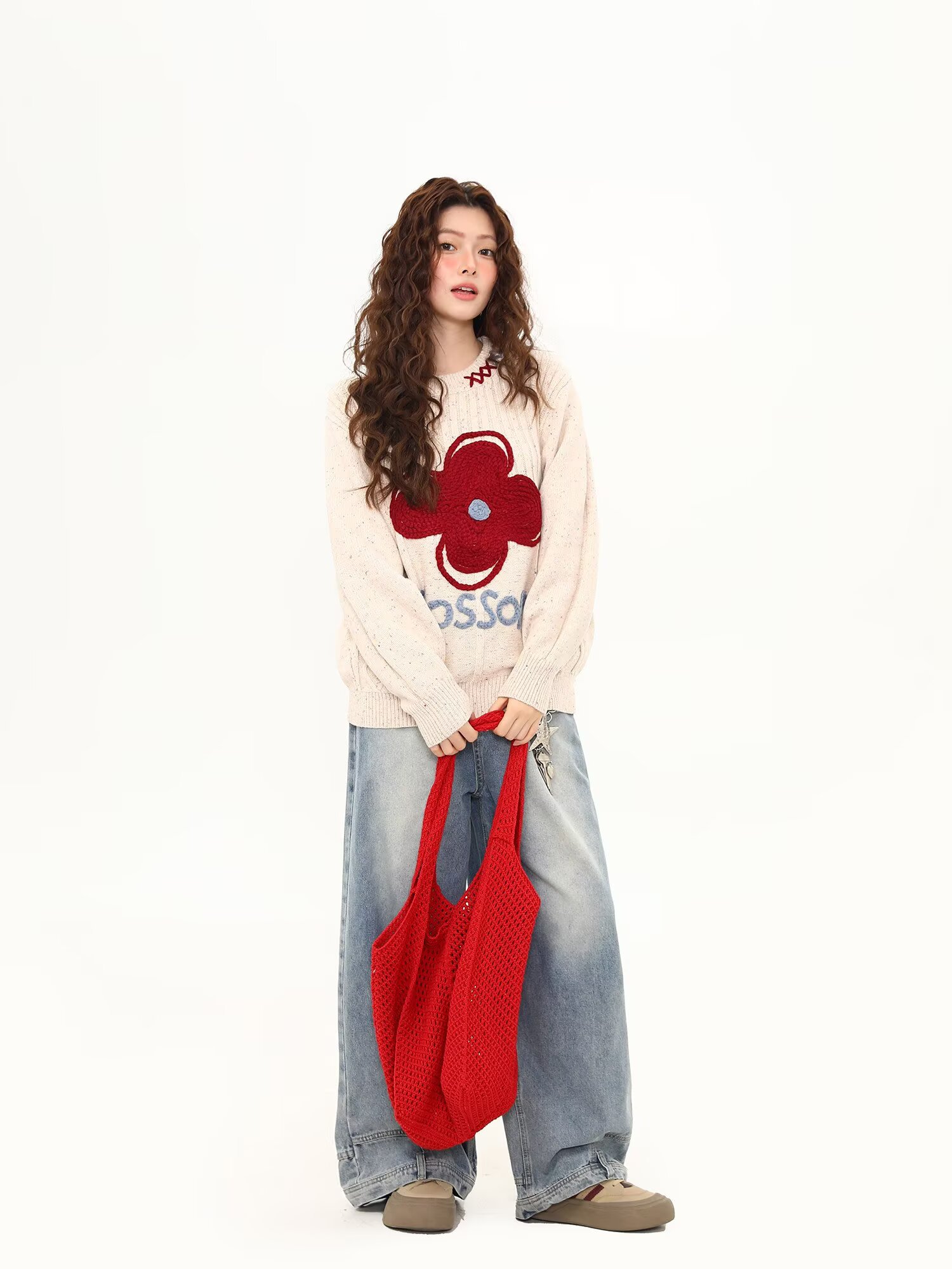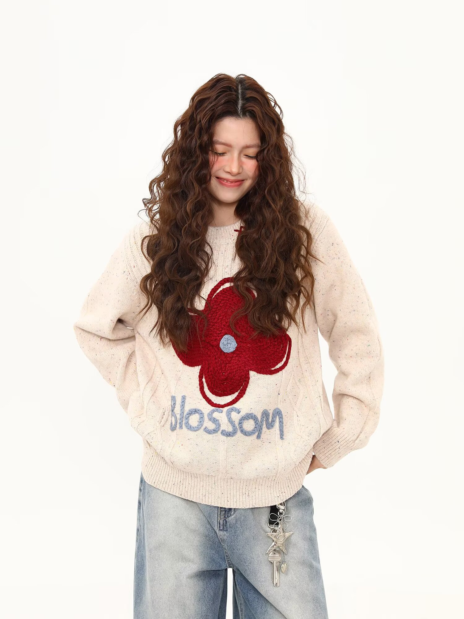 65涤纶35聚丙烯腈纤维刺绣彩点正色毛衣女2026春情侣针织衫上衣