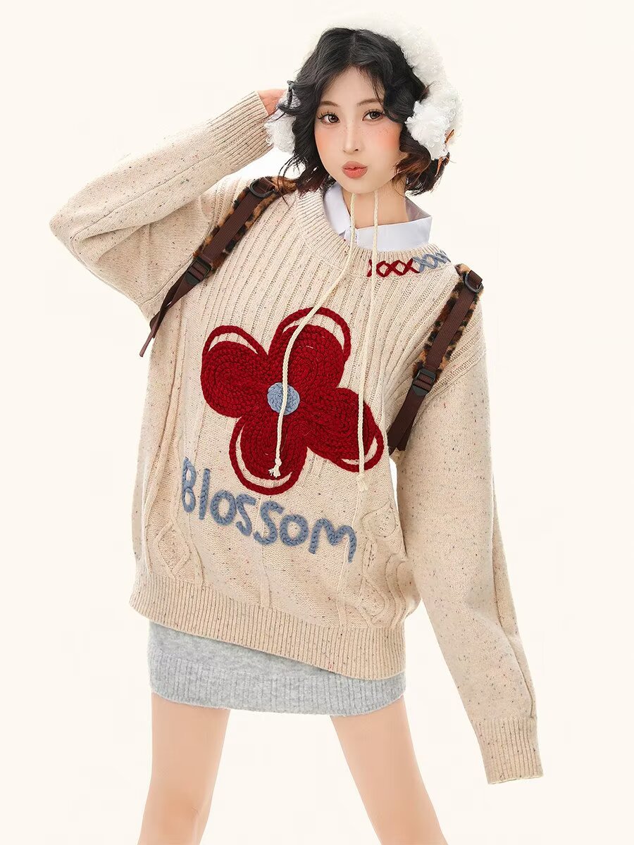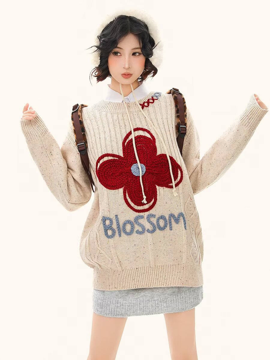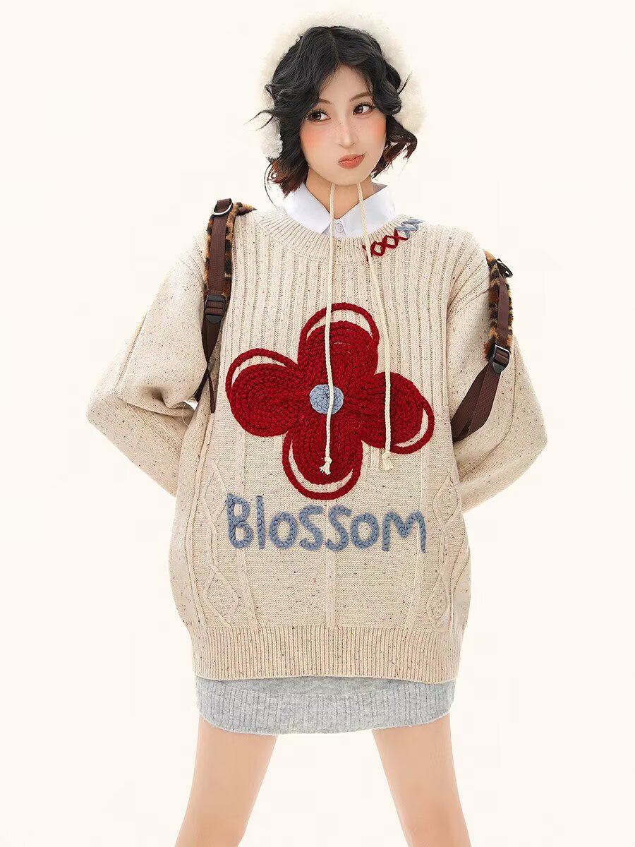 65涤纶35聚丙烯腈纤维刺绣彩点正色毛衣女2026春情侣针织衫上衣