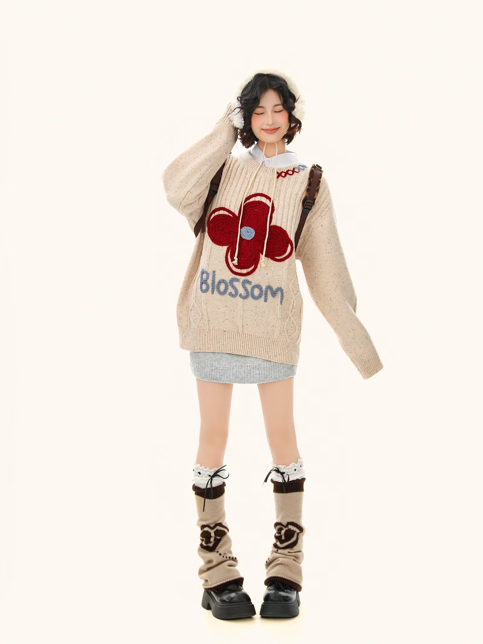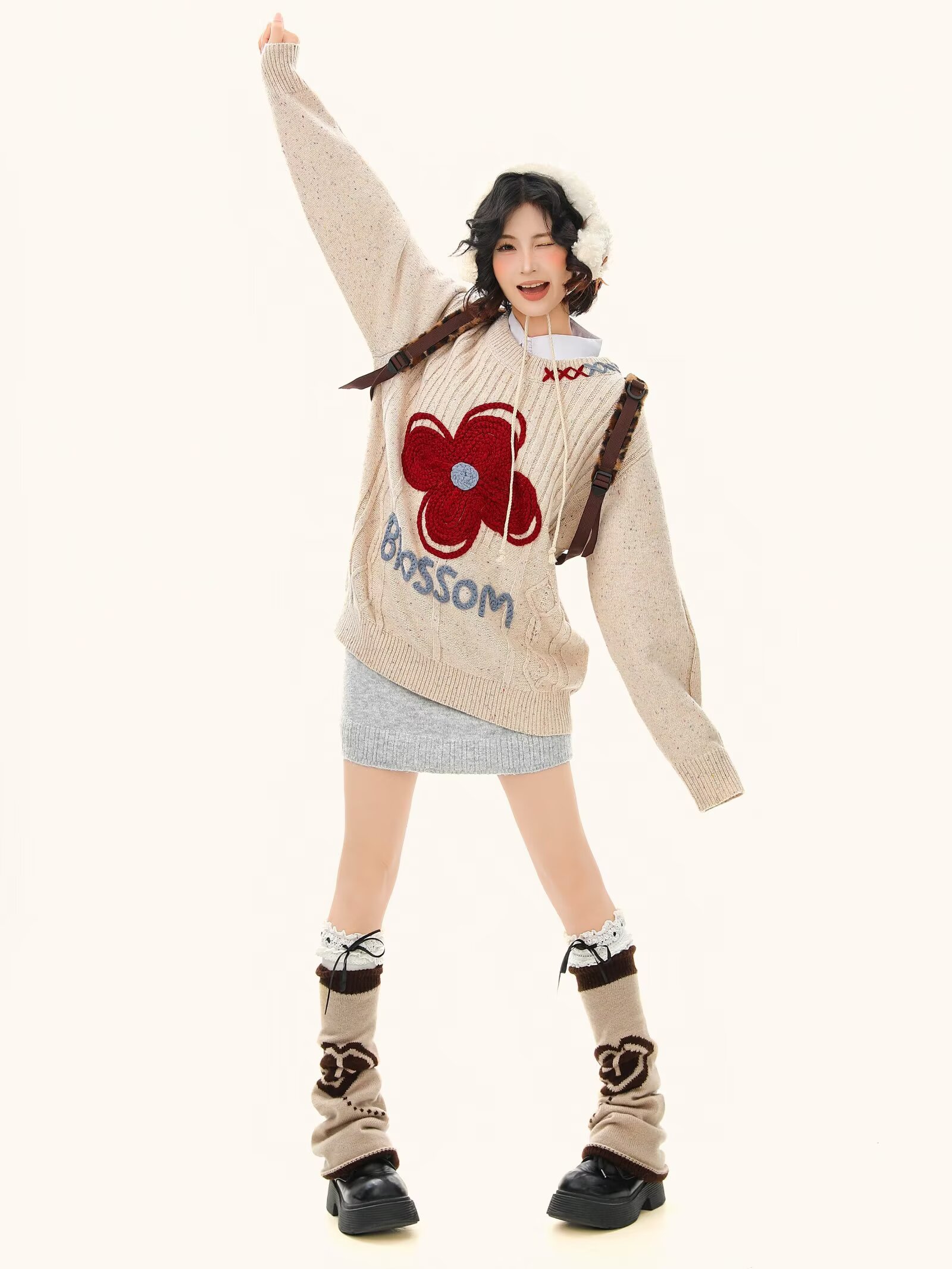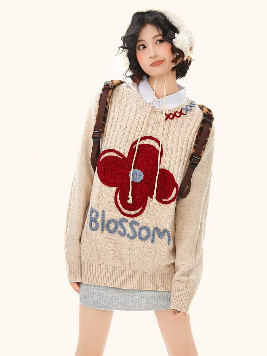 65涤纶35聚丙烯腈纤维刺绣彩点正色毛衣女2026春情侣针织衫上衣