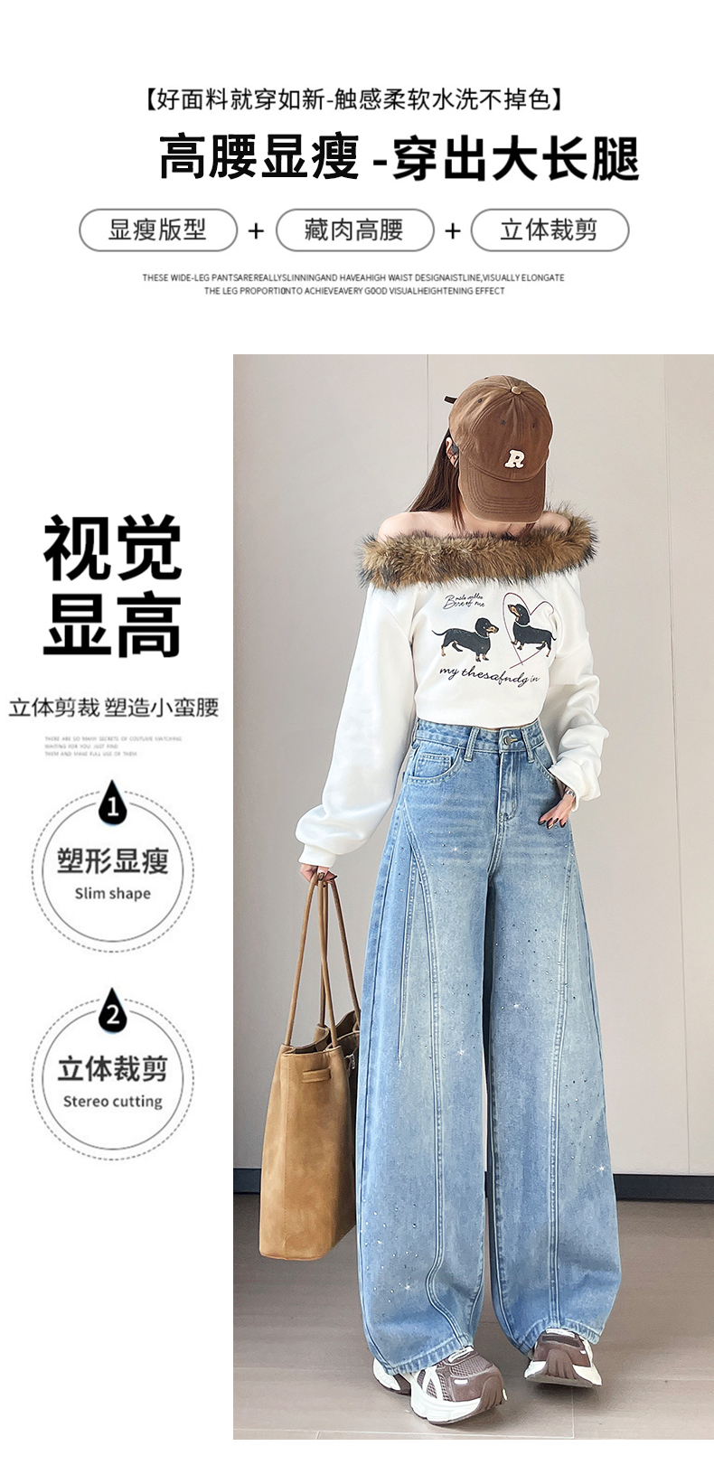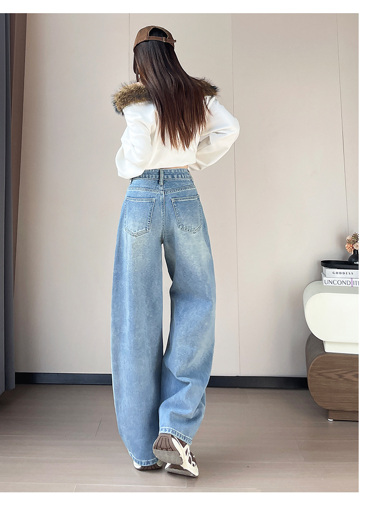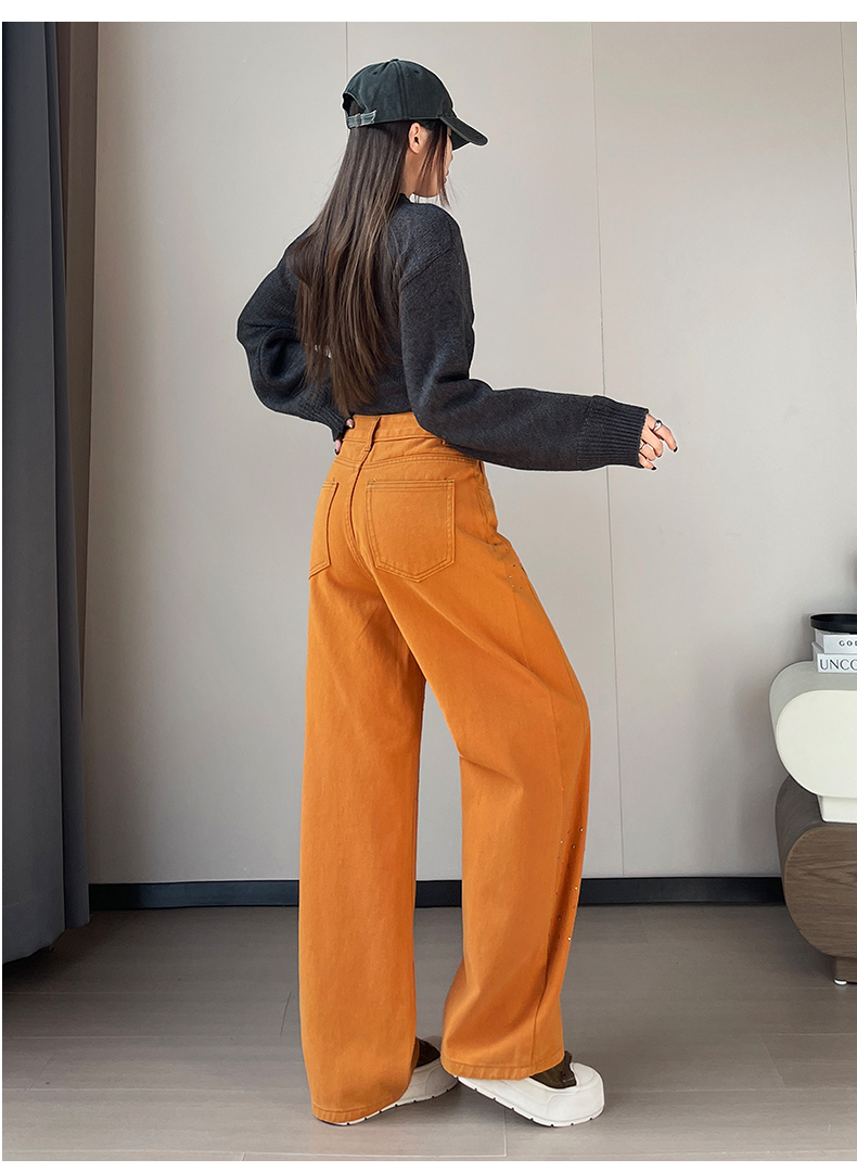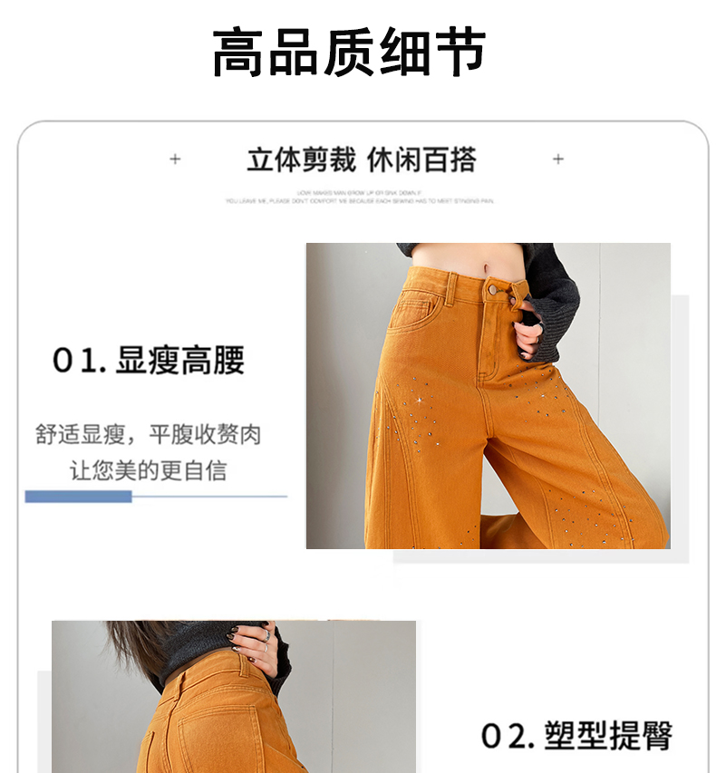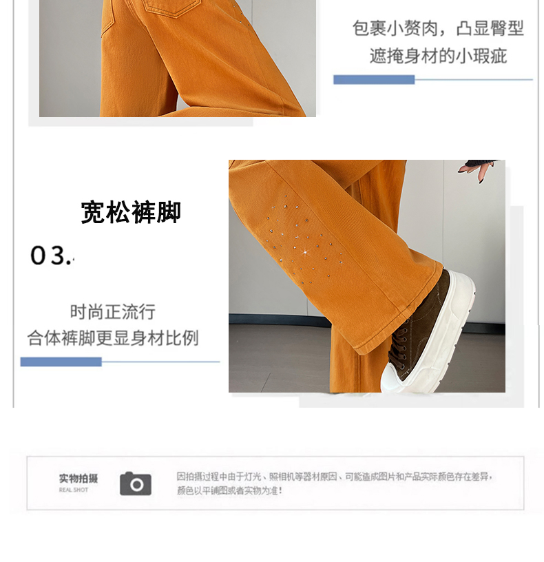 设计感闪闪烫钻直筒牛仔裤女装春秋美式高腰宽松显瘦阔腿弯刀裤子
