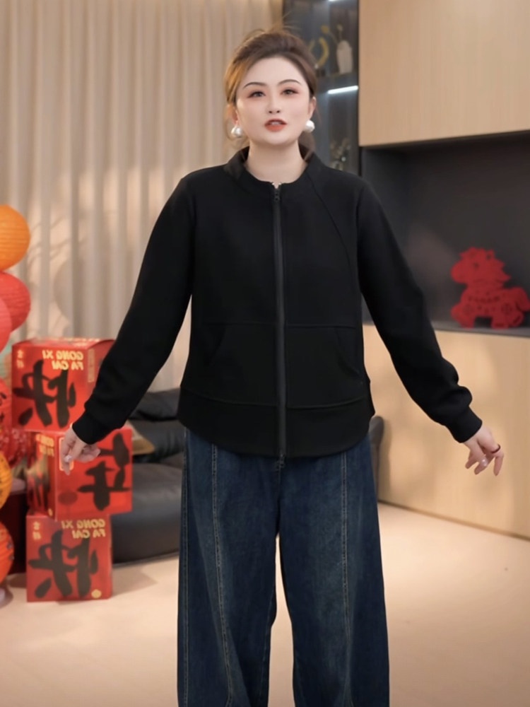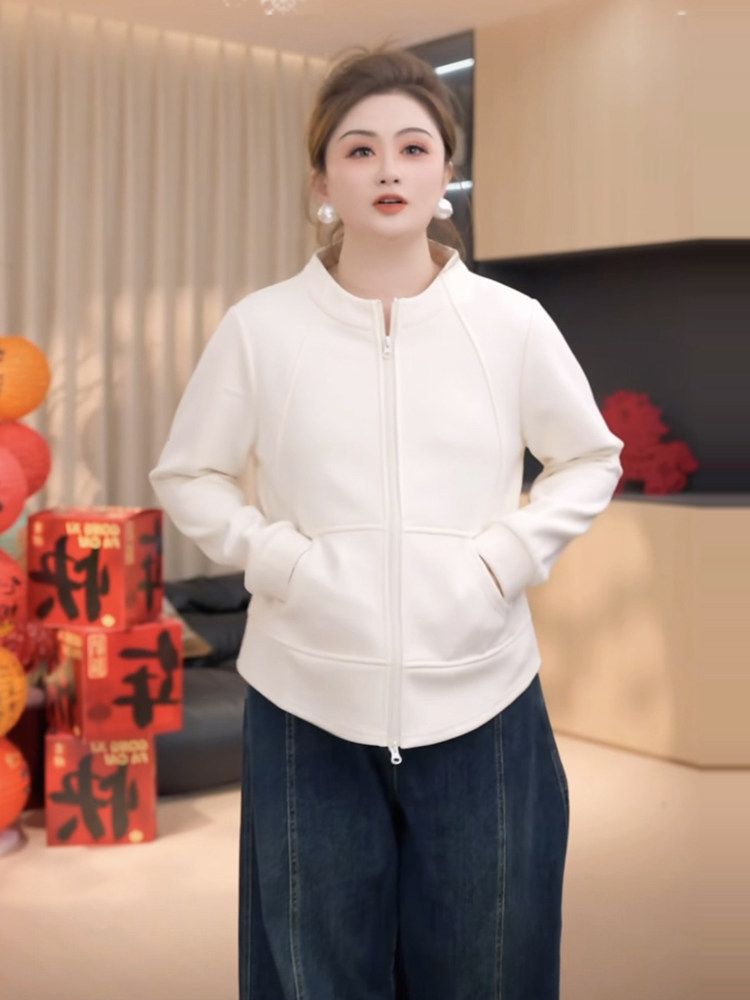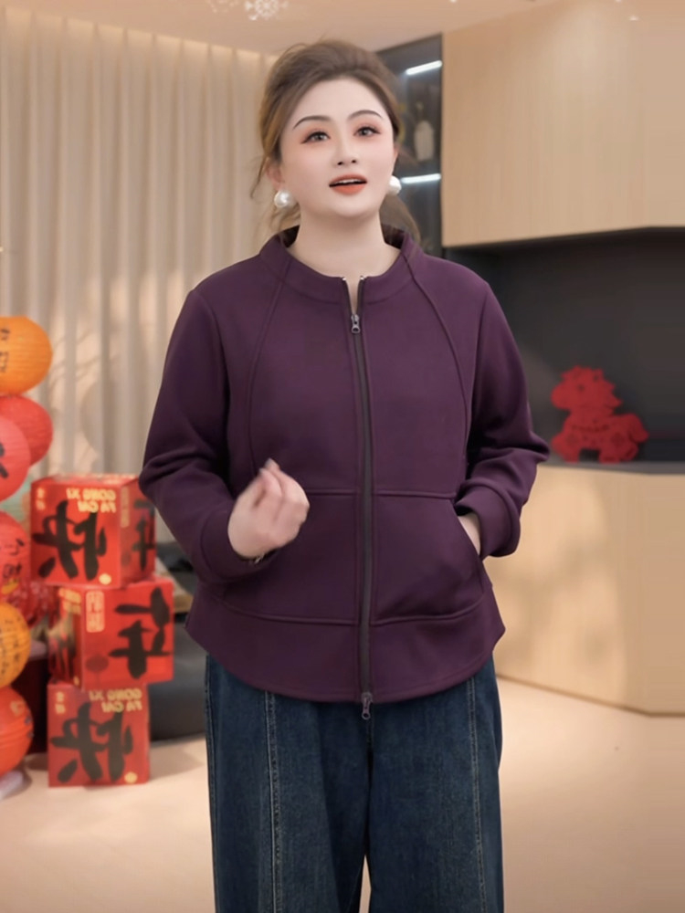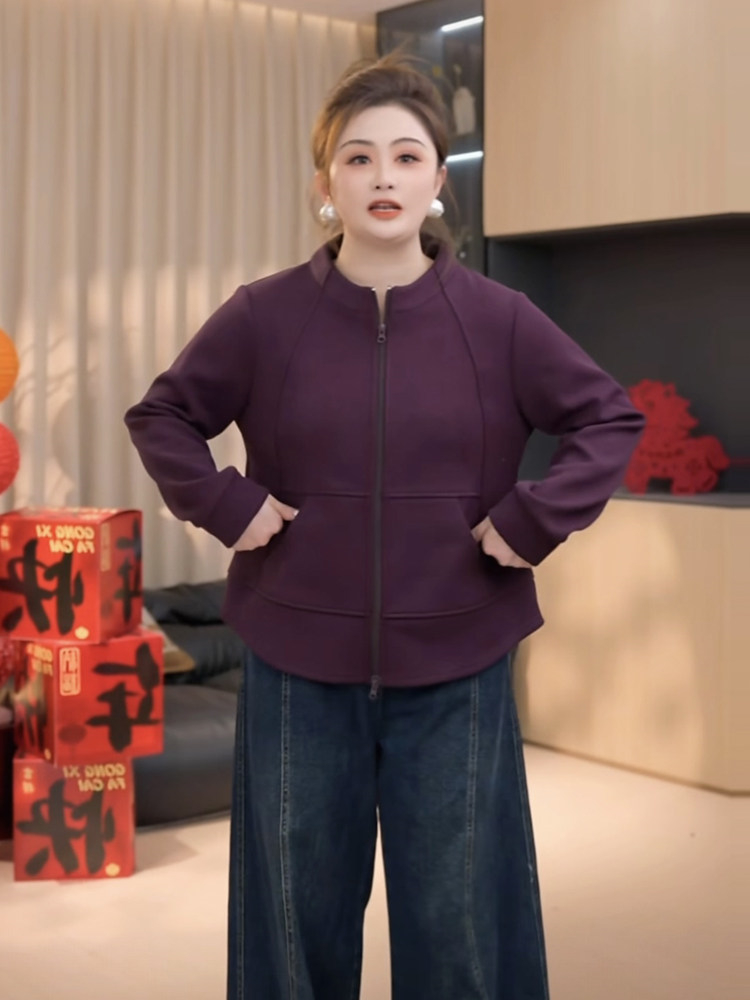 胖小佳佳大码女装加绒保暖拉链卫衣外套显瘦百搭立领内搭上衣