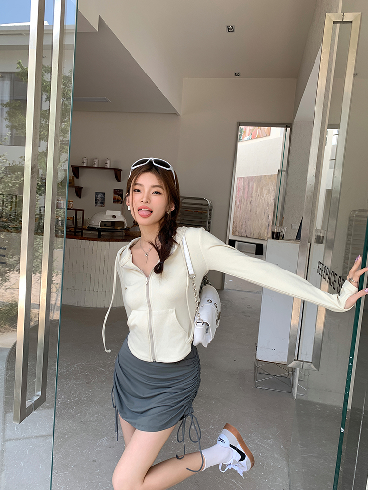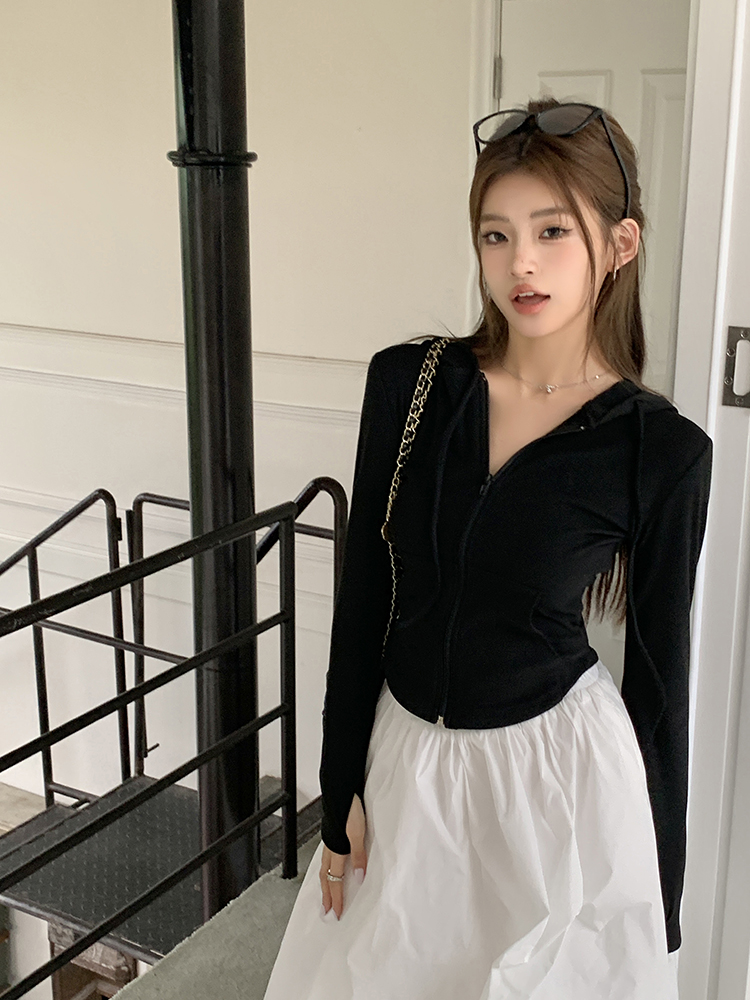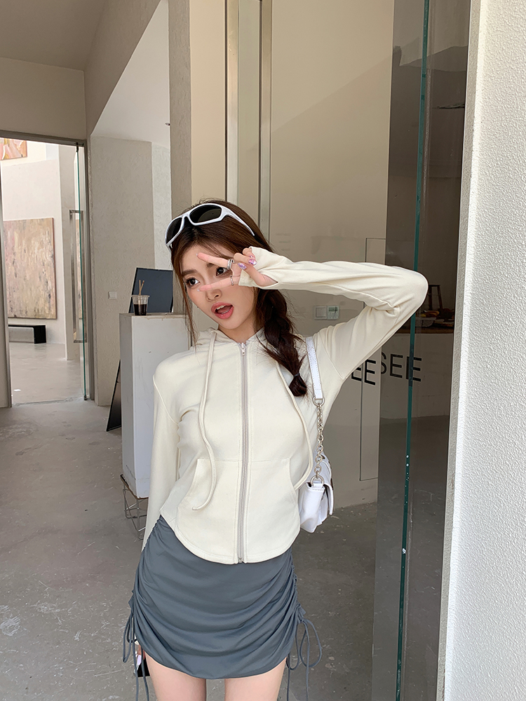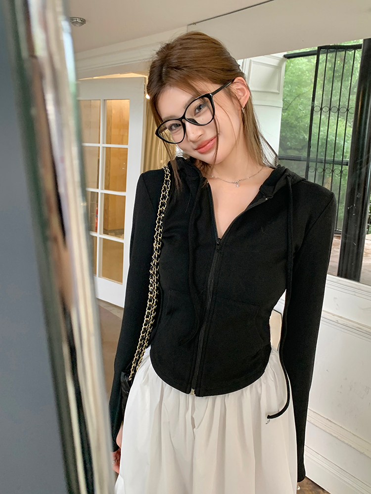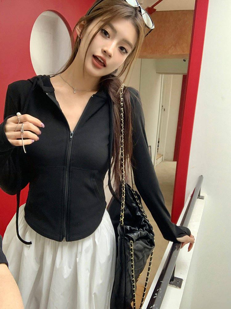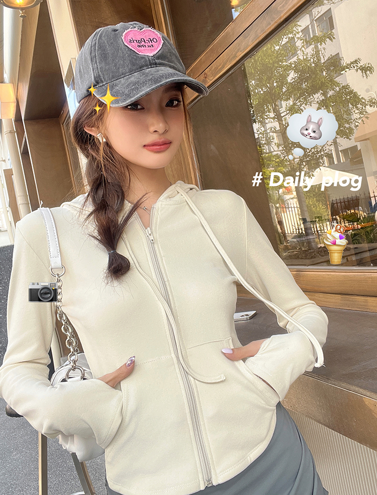 实拍2026春装新款百搭青春运动风修身显瘦长袖连帽拉链卫衣帽衫