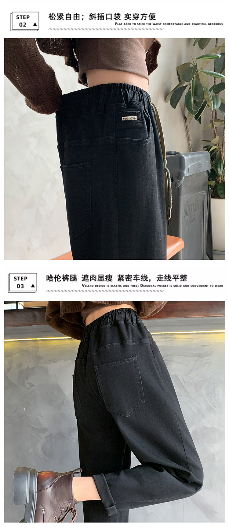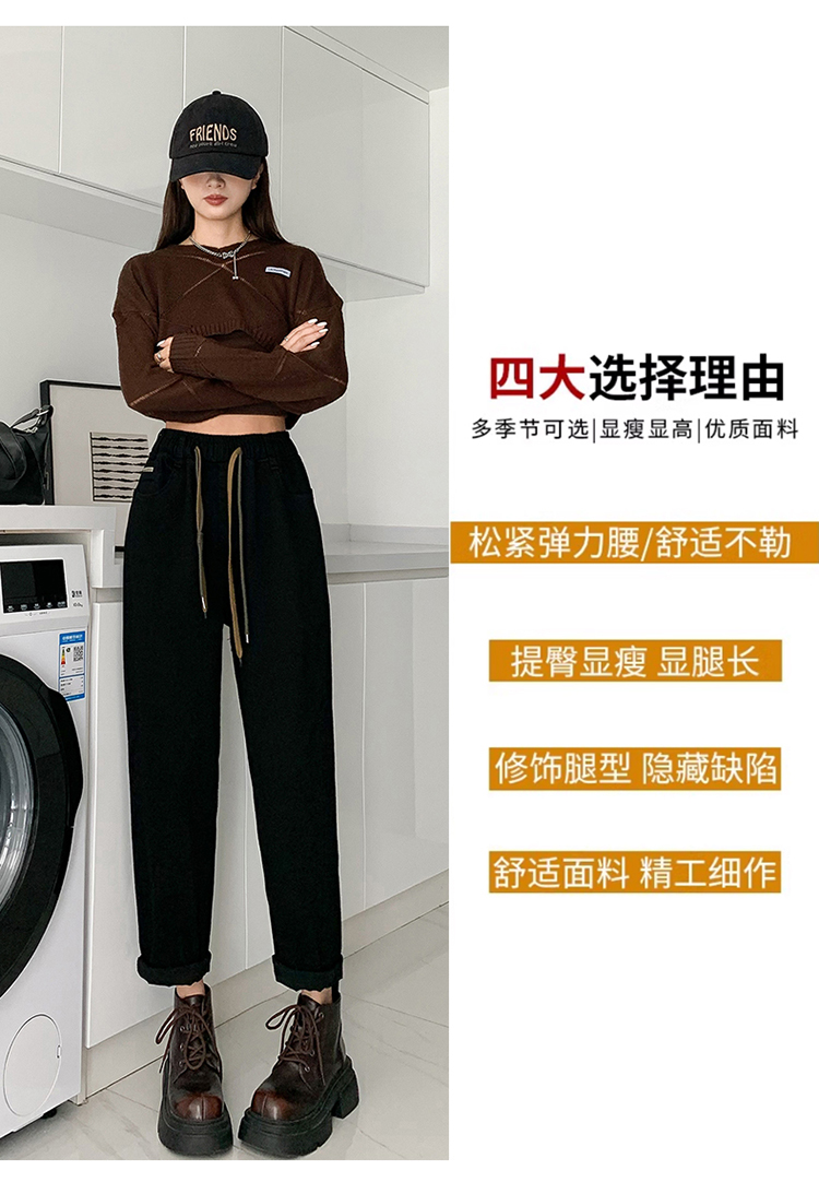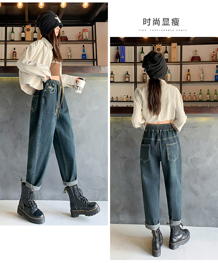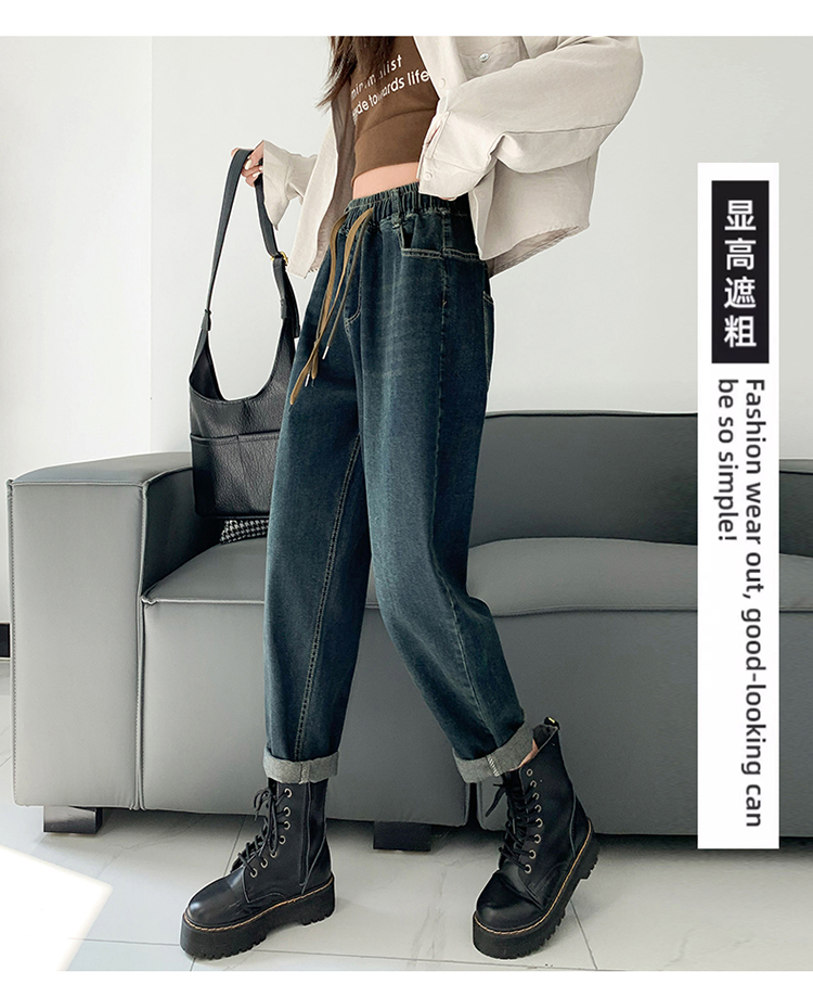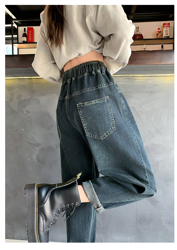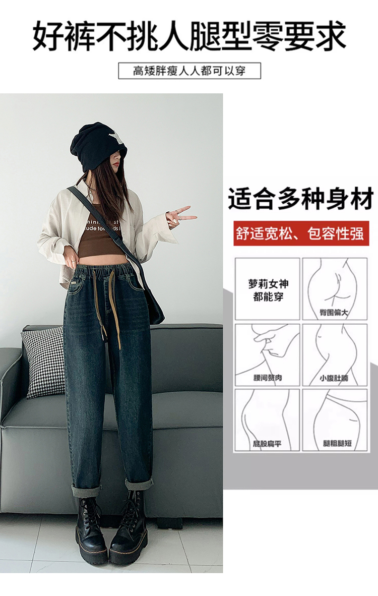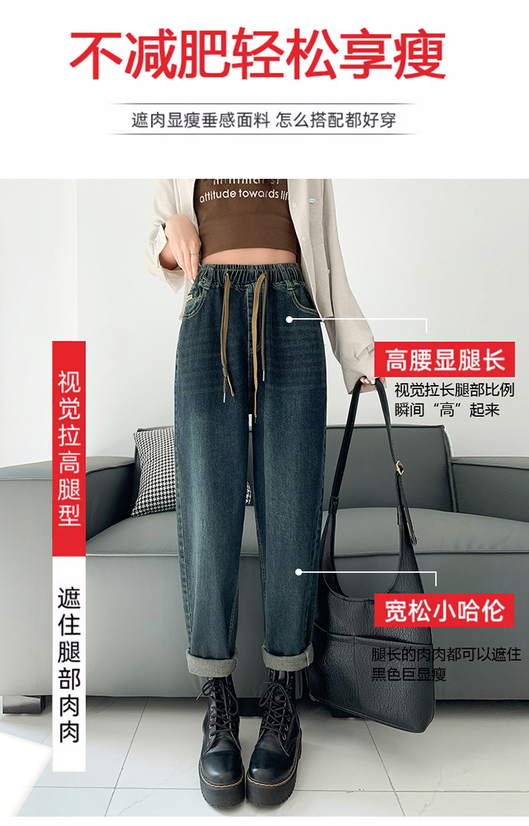 松紧腰哈伦牛仔裤女宽松2026春季新款大码胖mm显瘦高腰弹力老爹裤