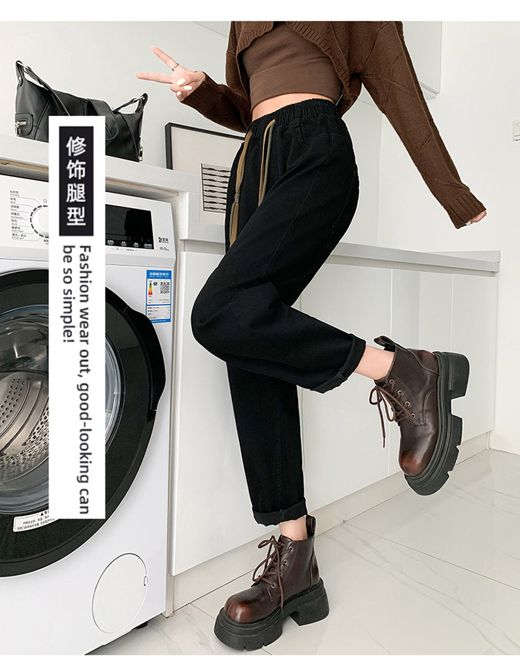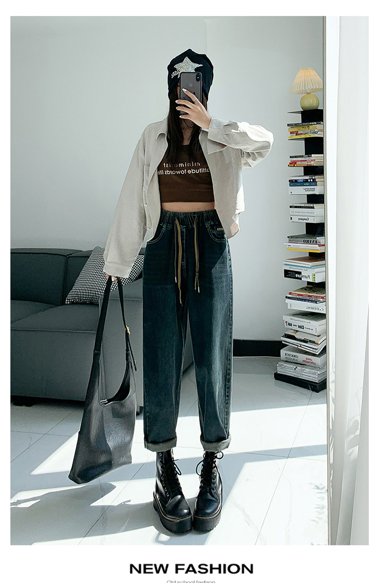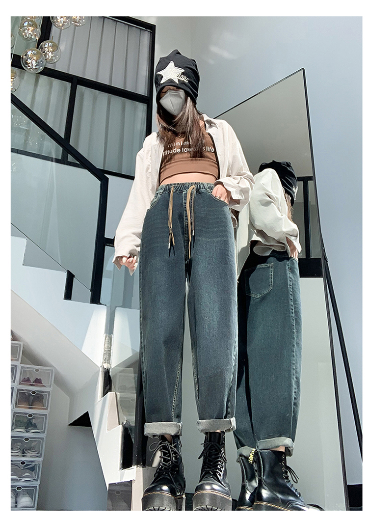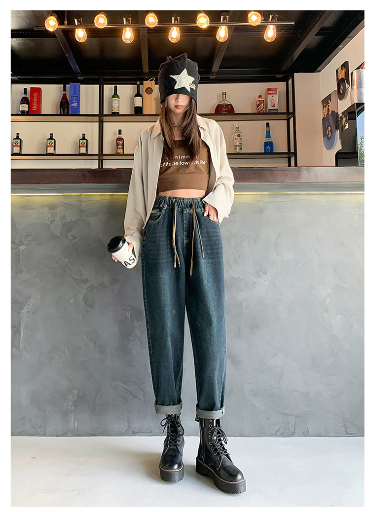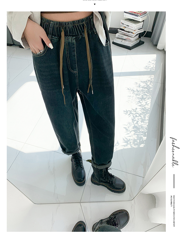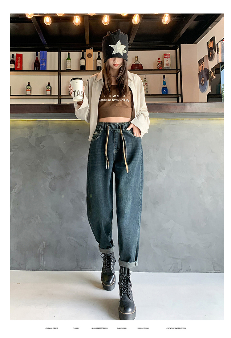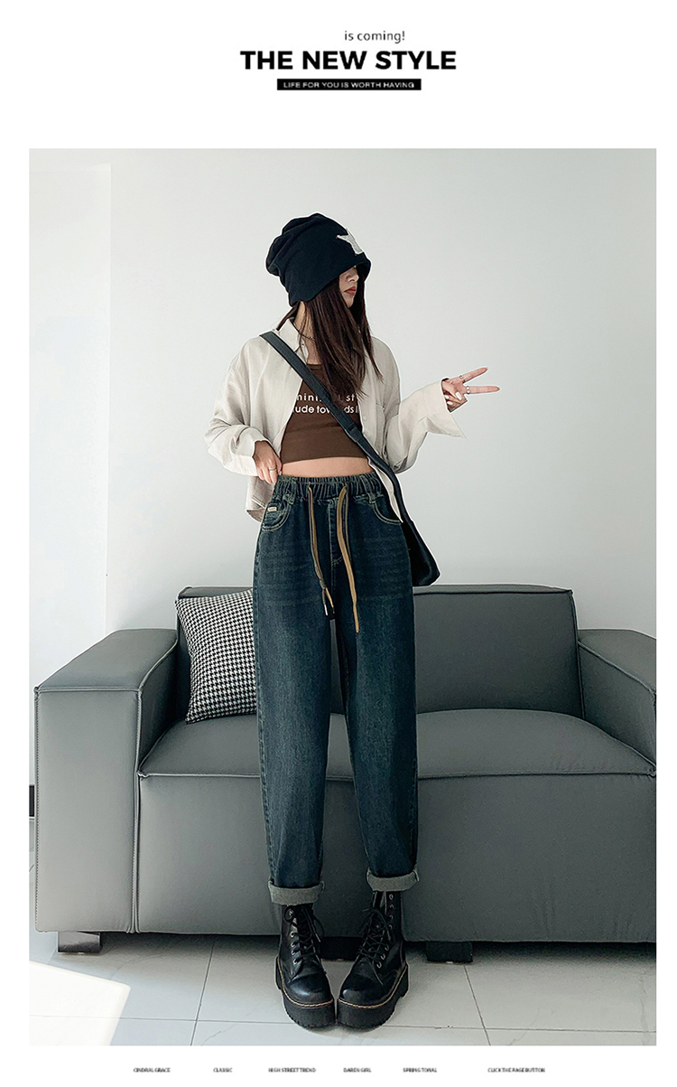 松紧腰哈伦牛仔裤女宽松2026春季新款大码胖mm显瘦高腰弹力老爹裤