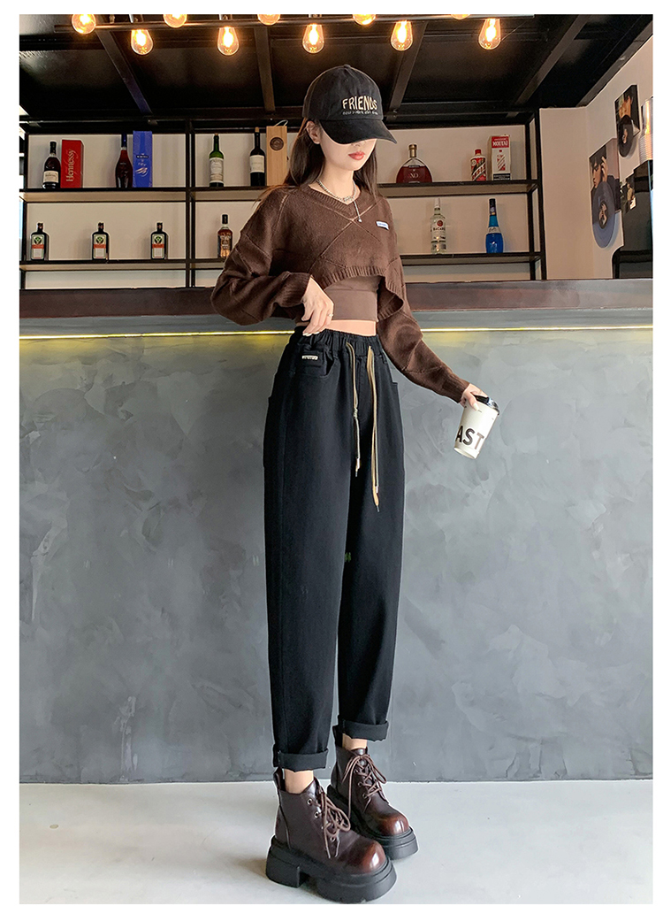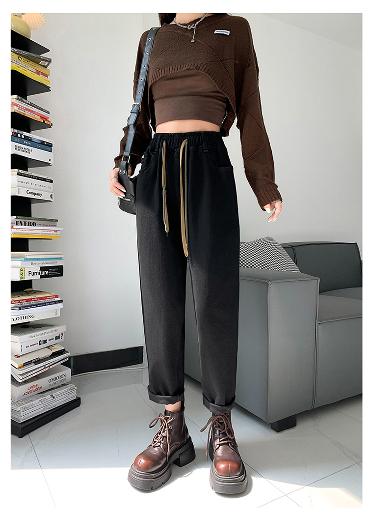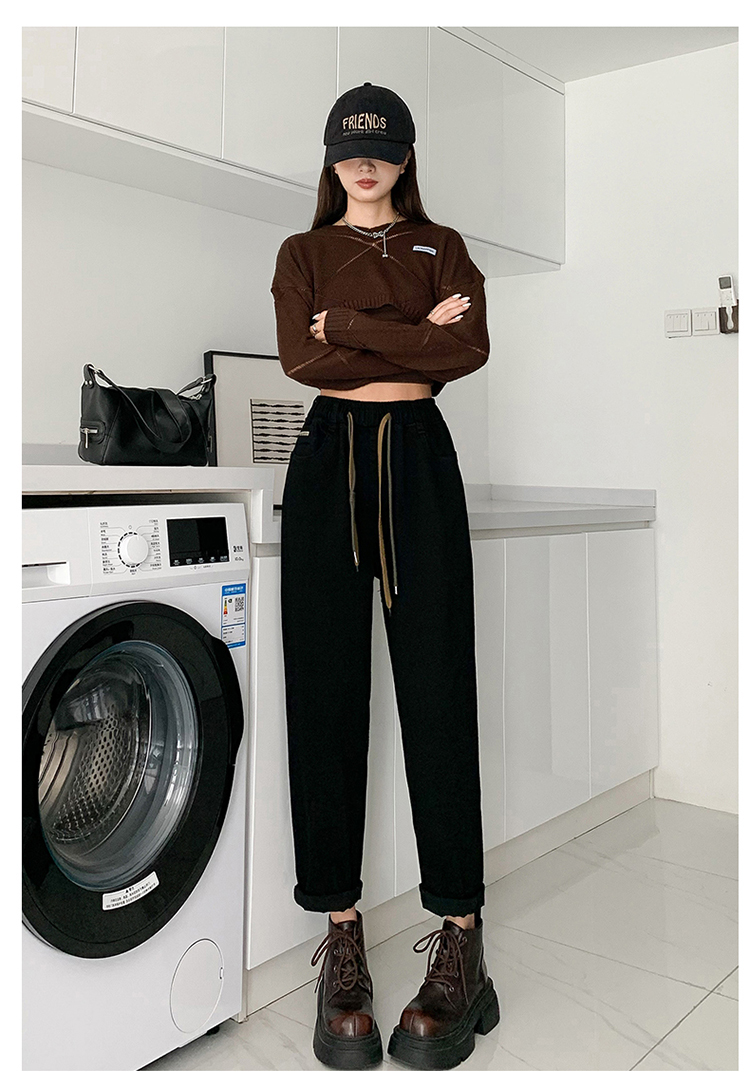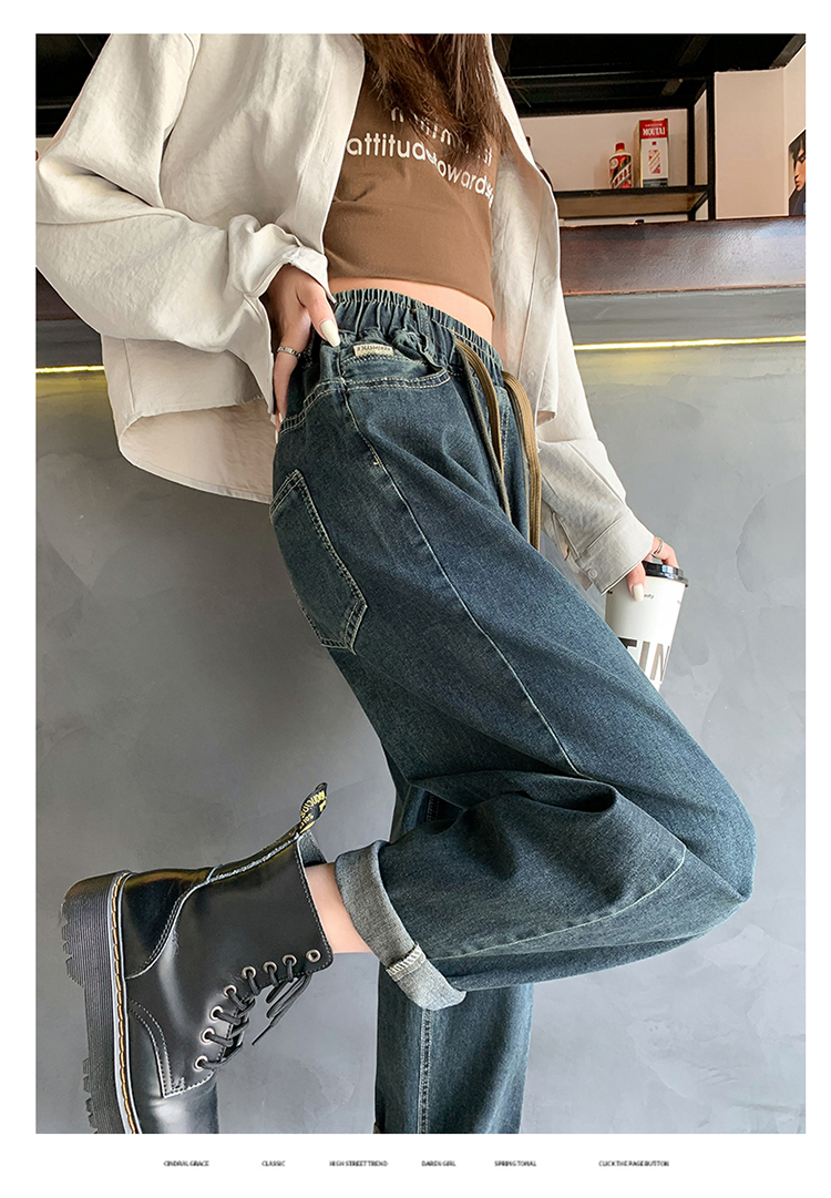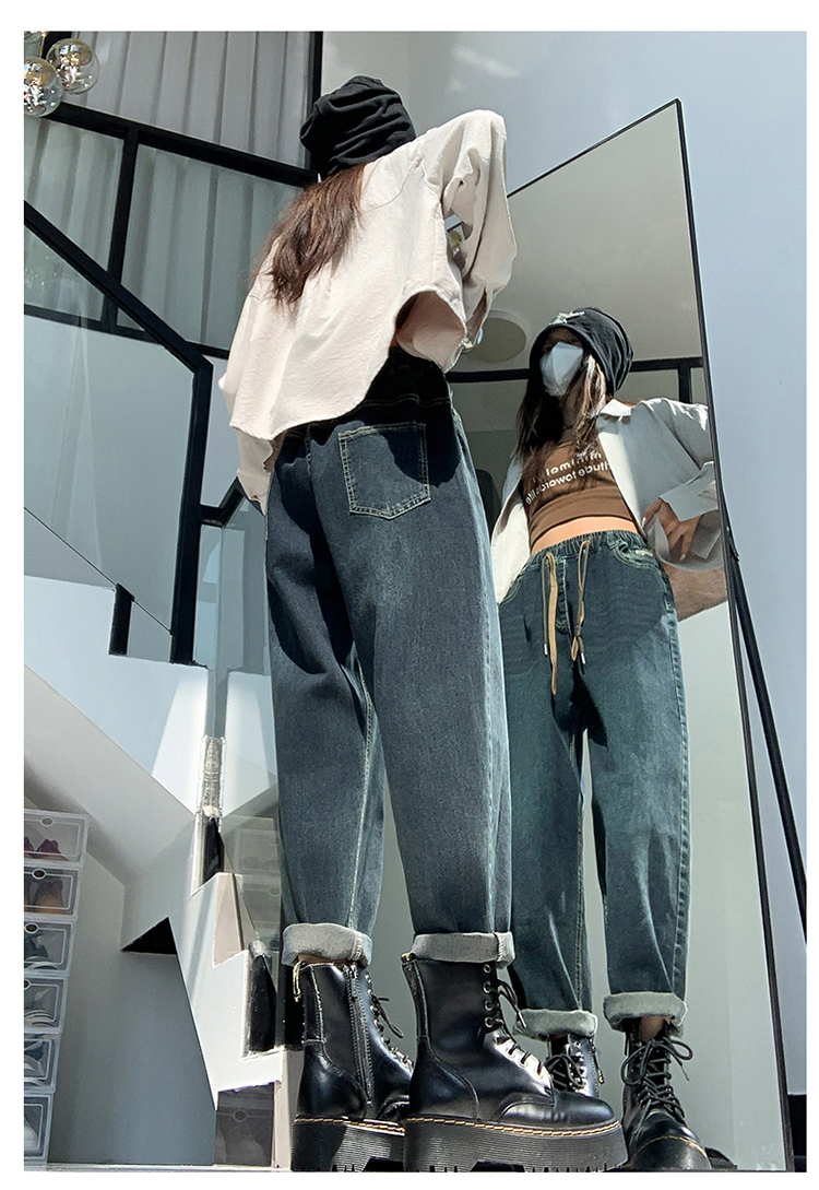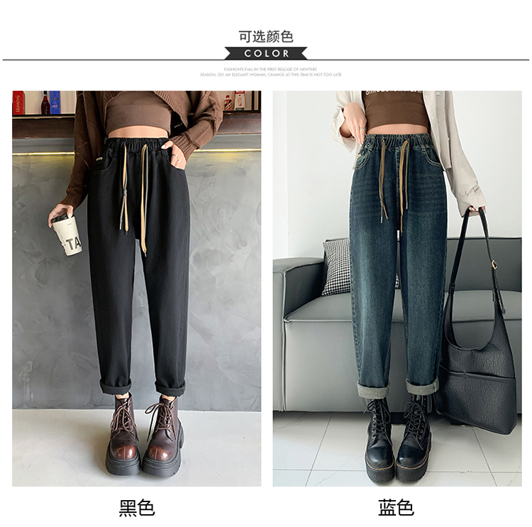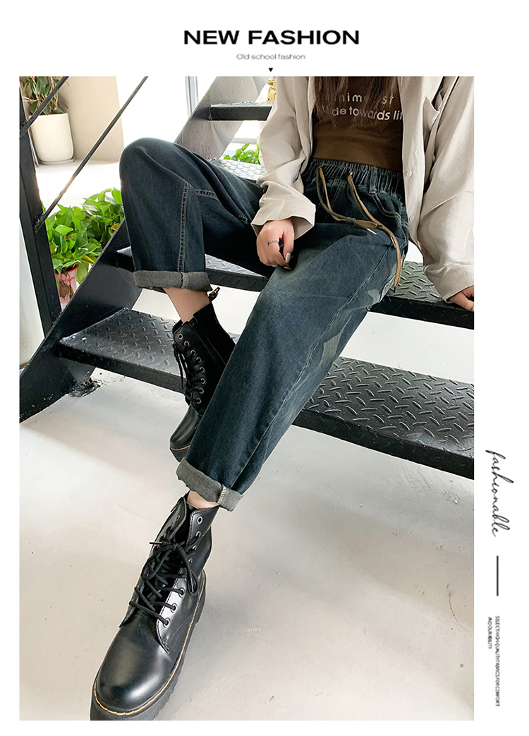松紧腰哈伦牛仔裤女宽松2026春季新款大码胖mm显瘦高腰弹力老爹裤