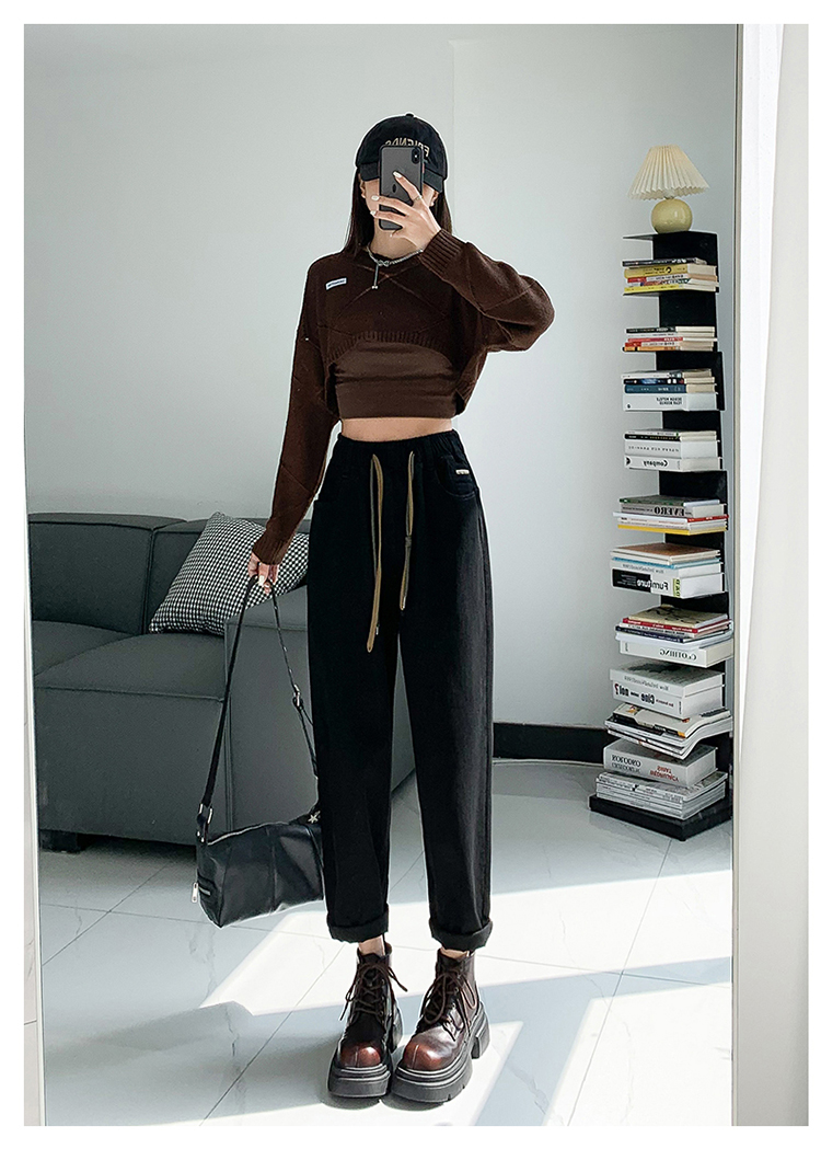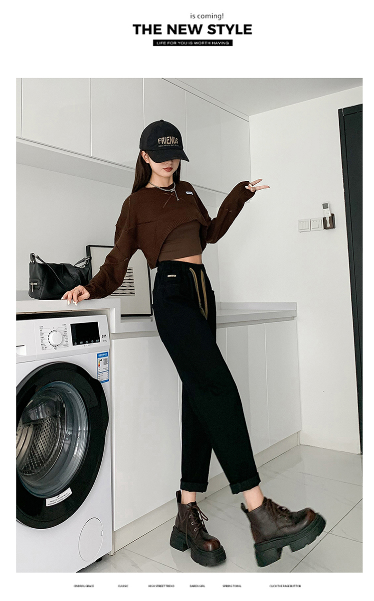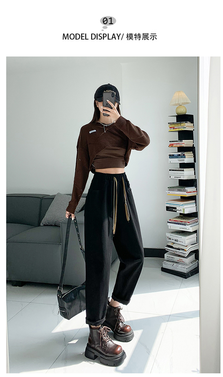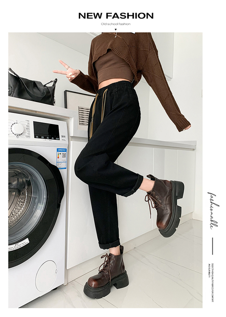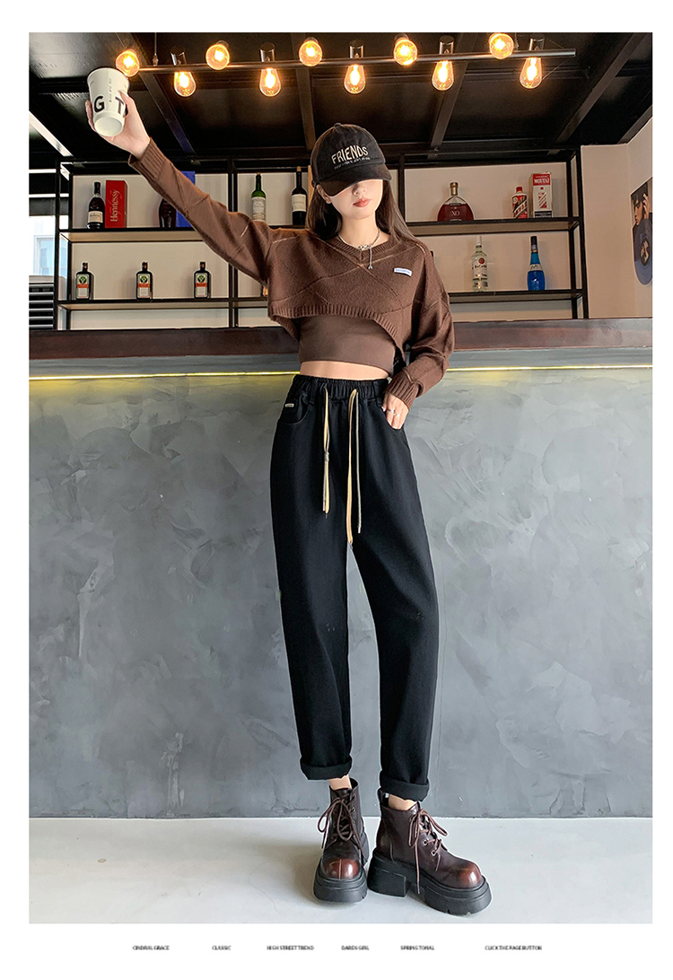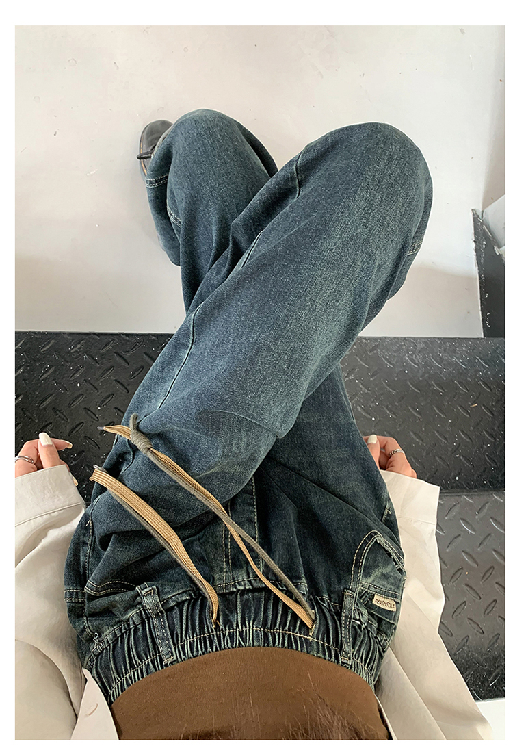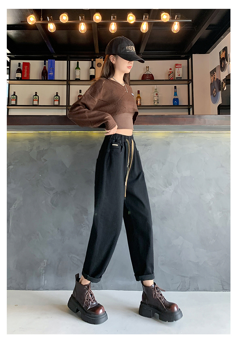 松紧腰哈伦牛仔裤女宽松2026春季新款大码胖mm显瘦高腰弹力老爹裤