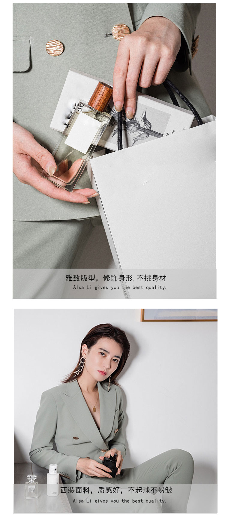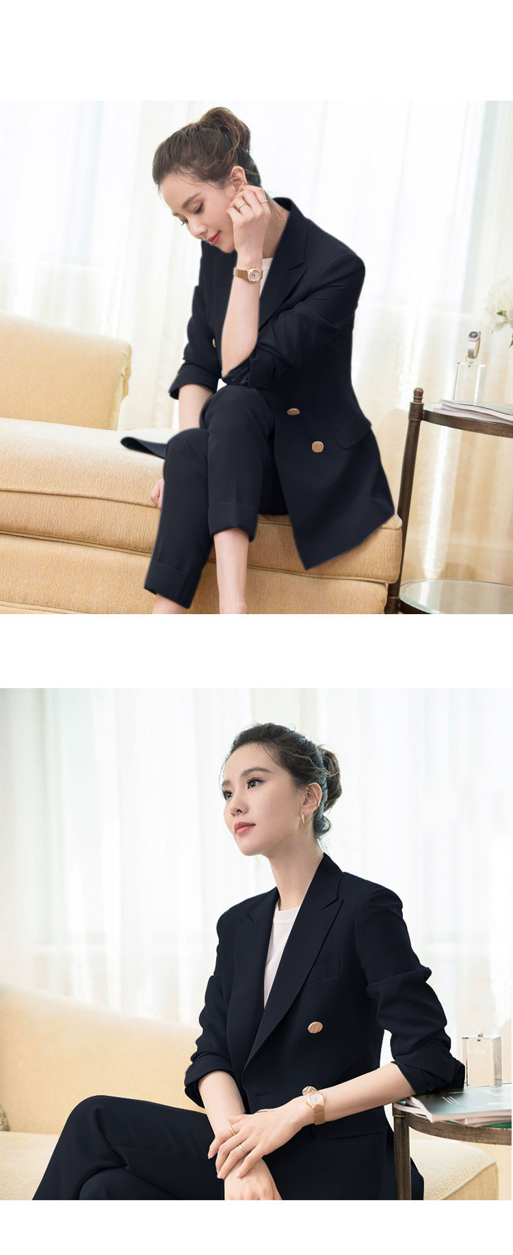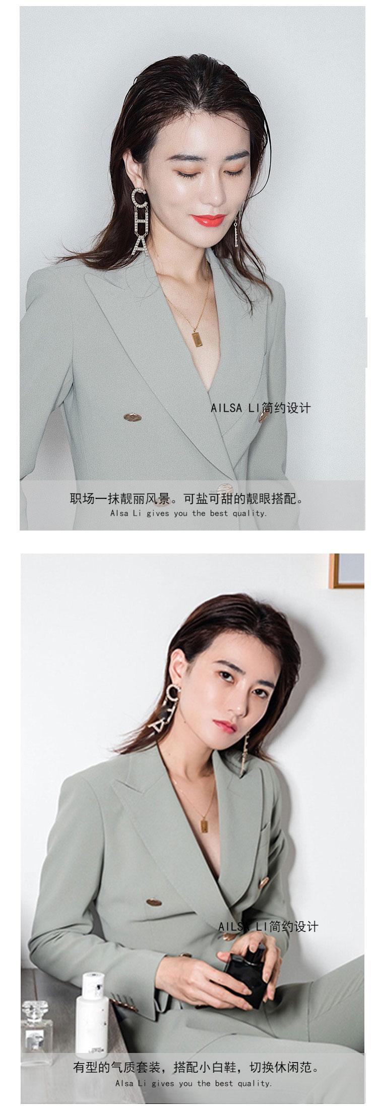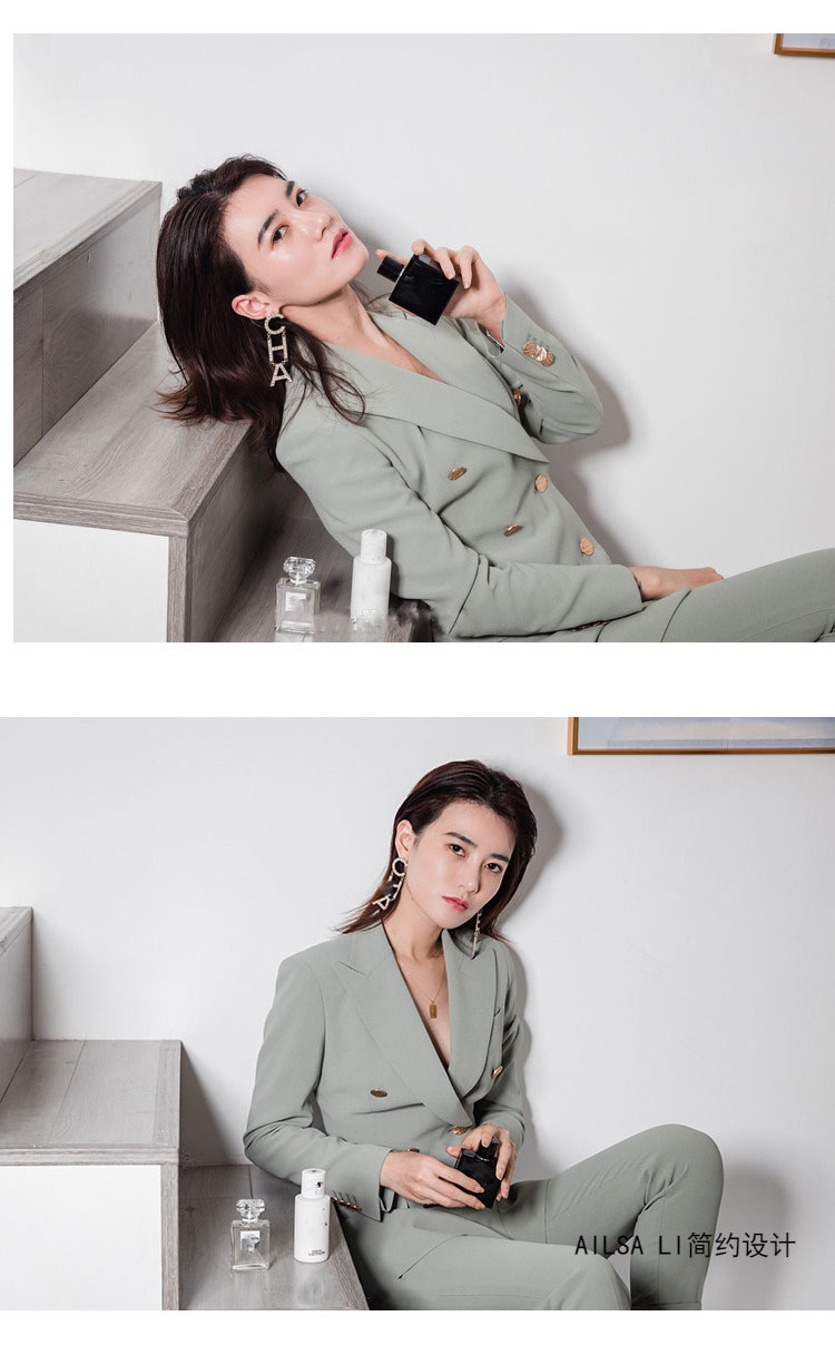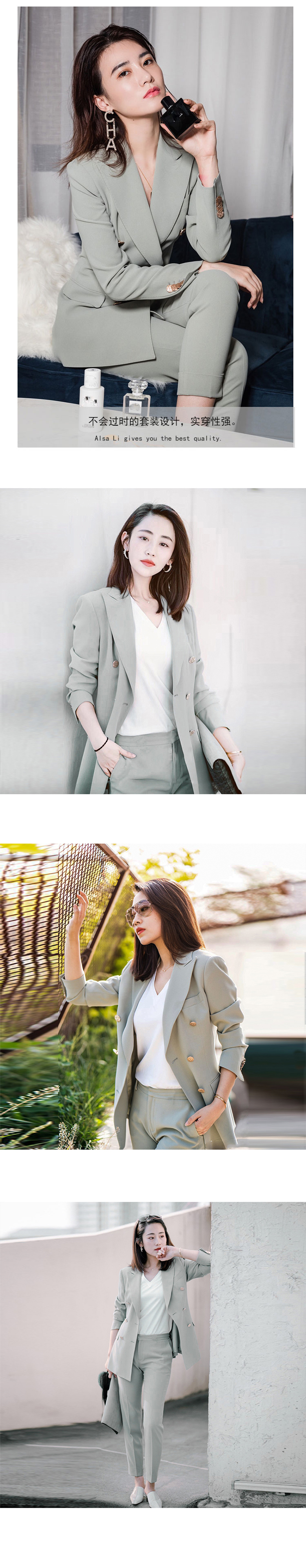 韩版双排扣西装套装2026春秋季新款职业小西服外套两件套