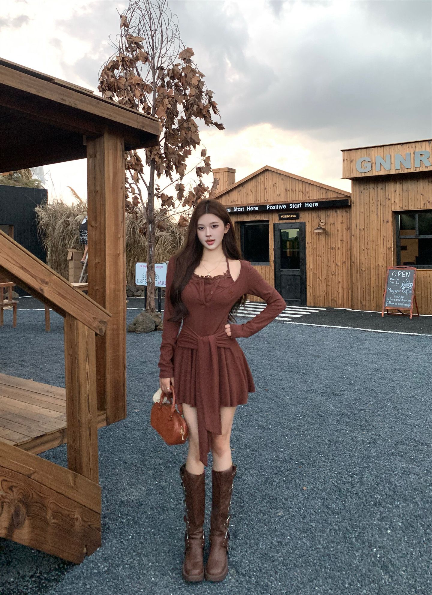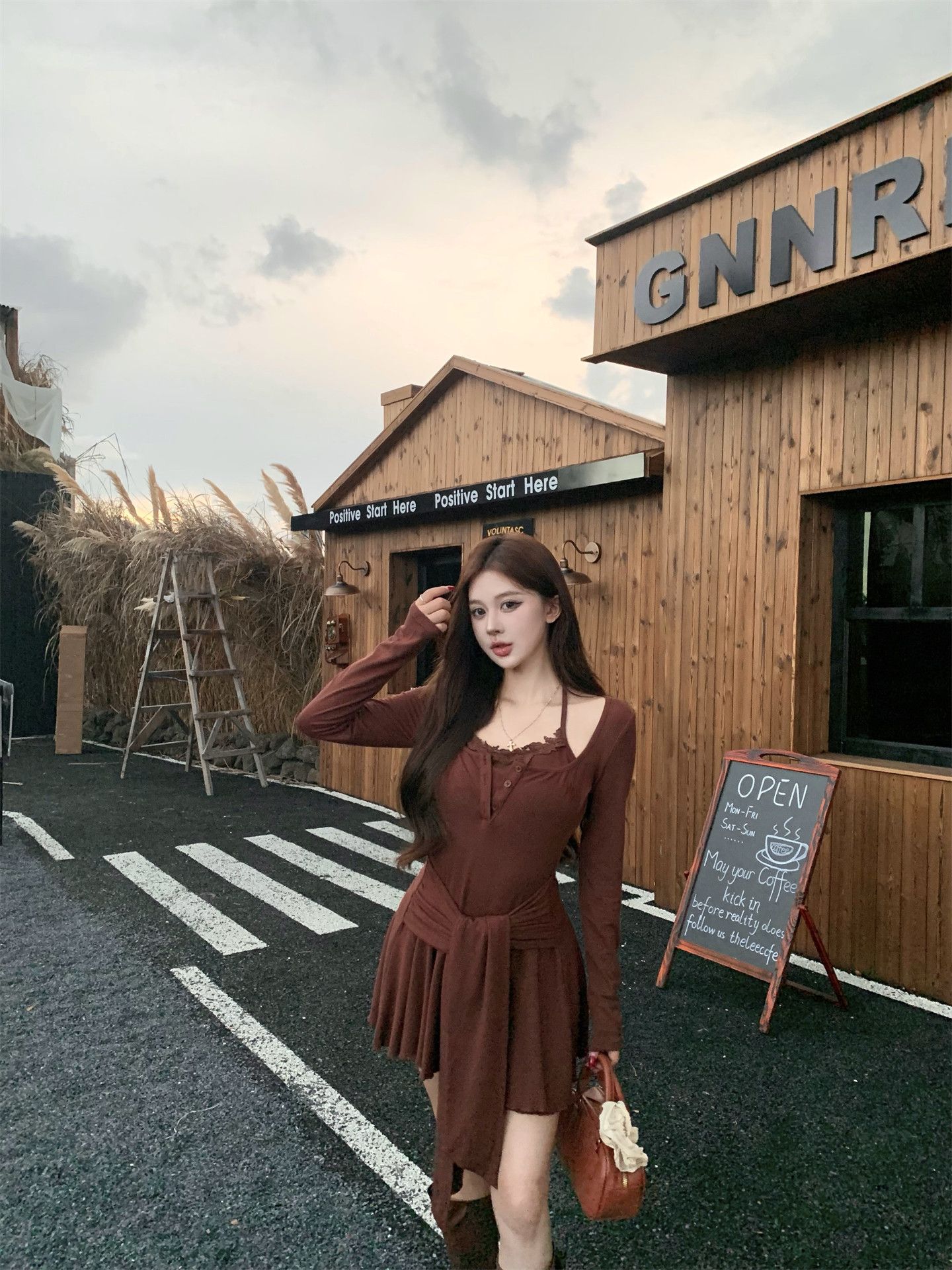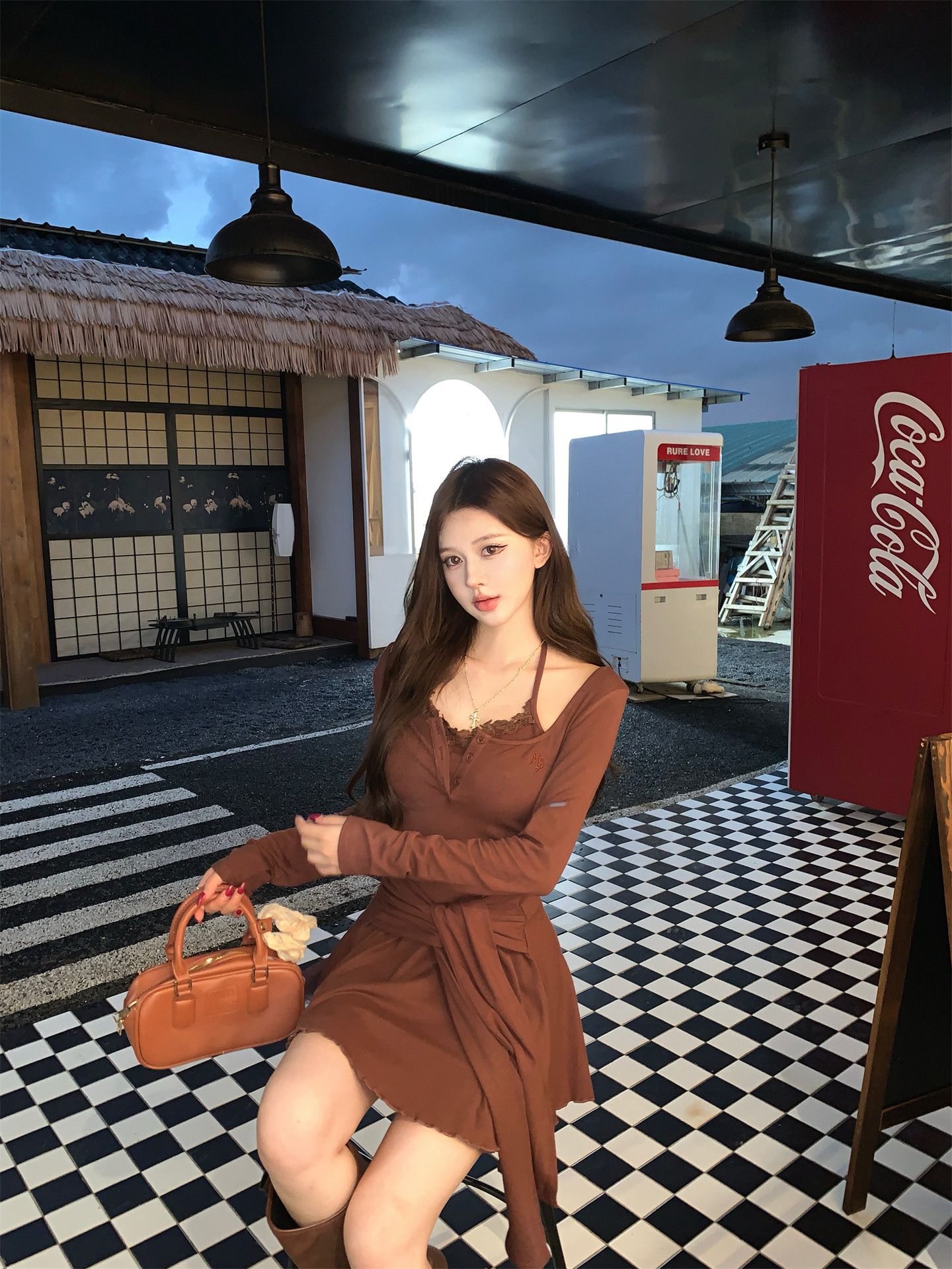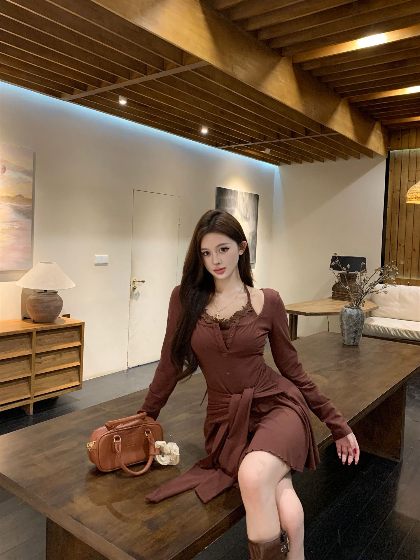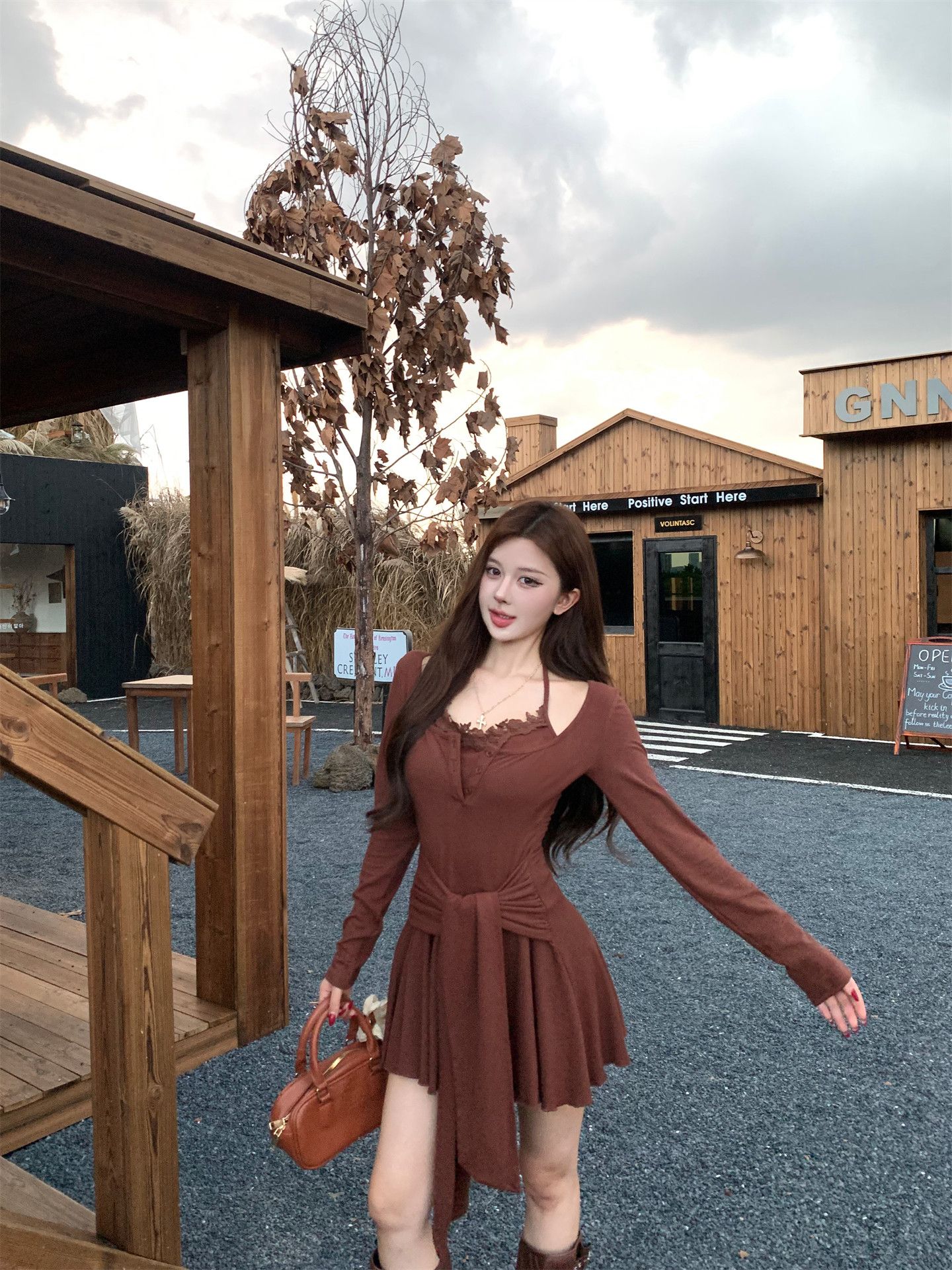 出大货 蕾丝吊带假两件长袖连衣裙2026秋独特漂亮气质a字短裙