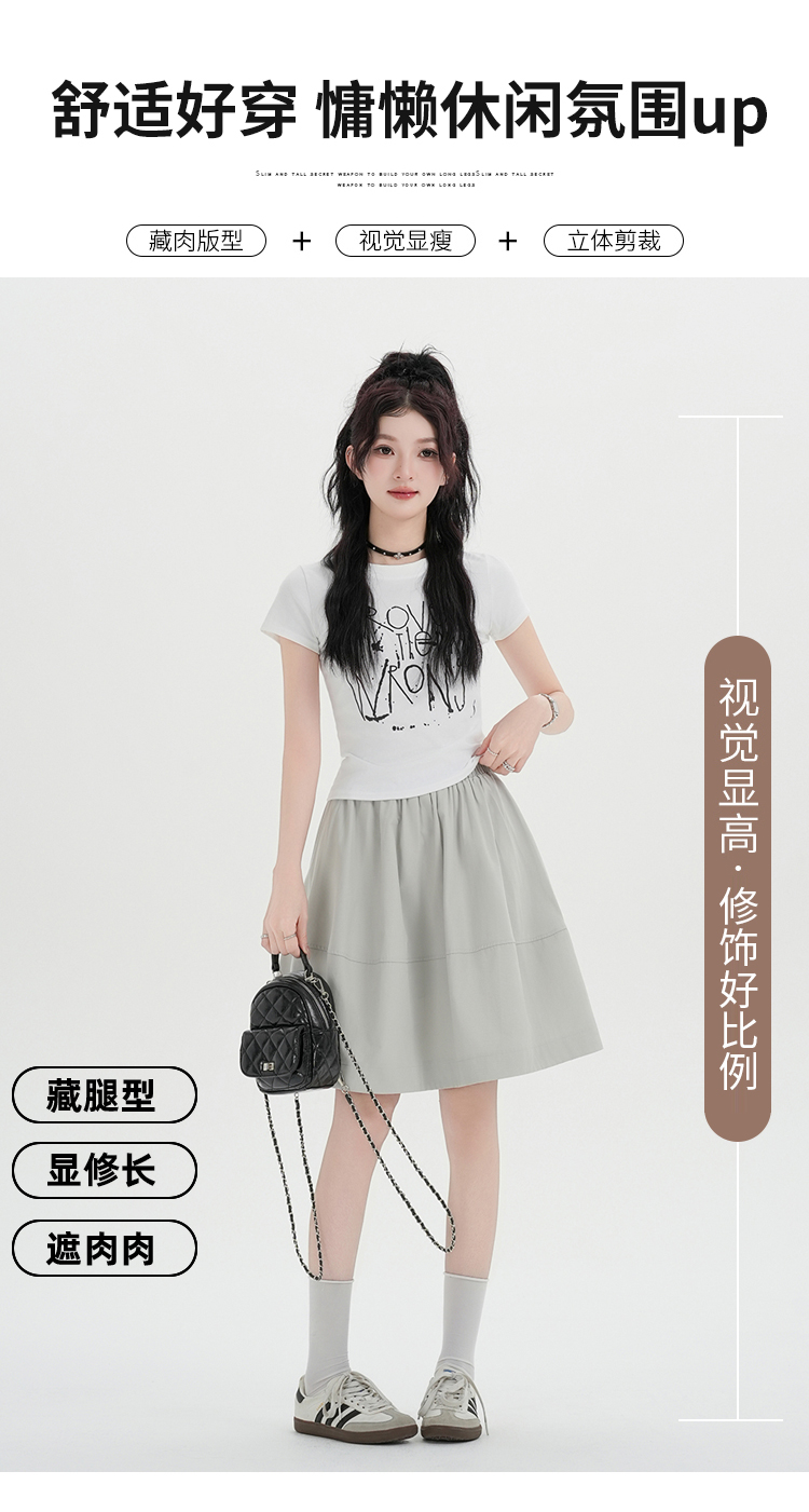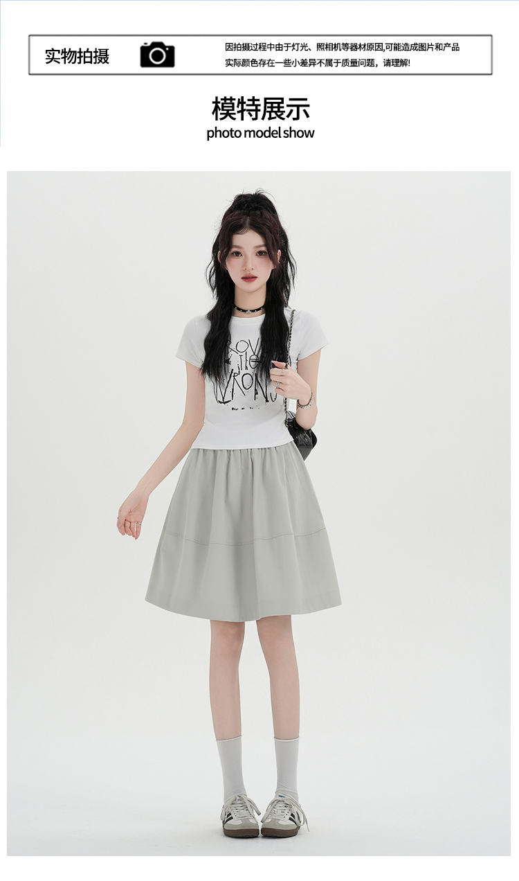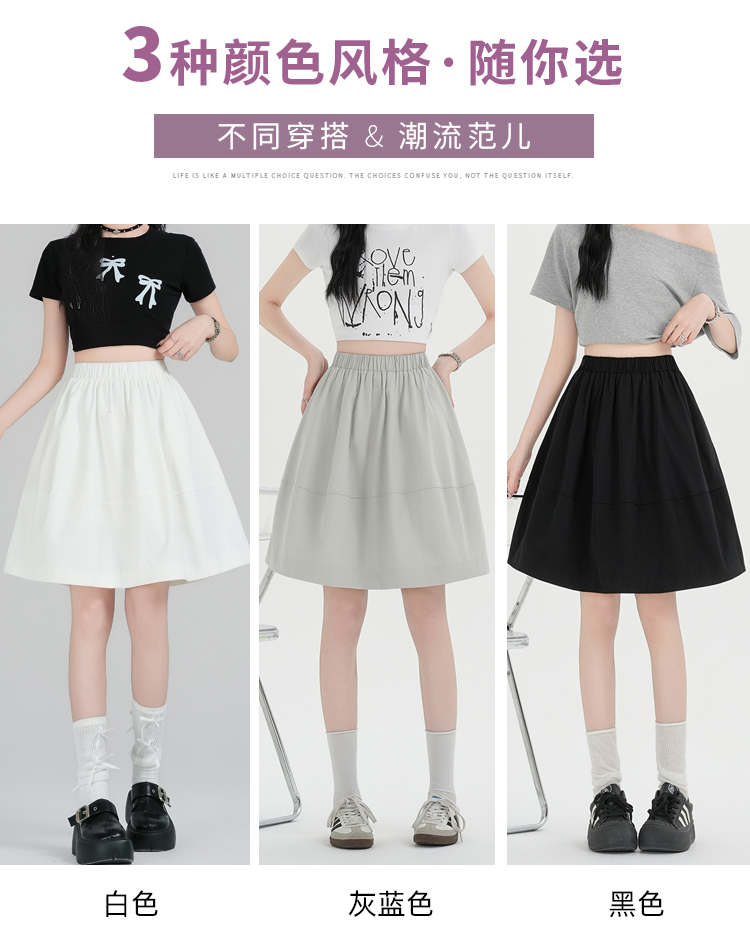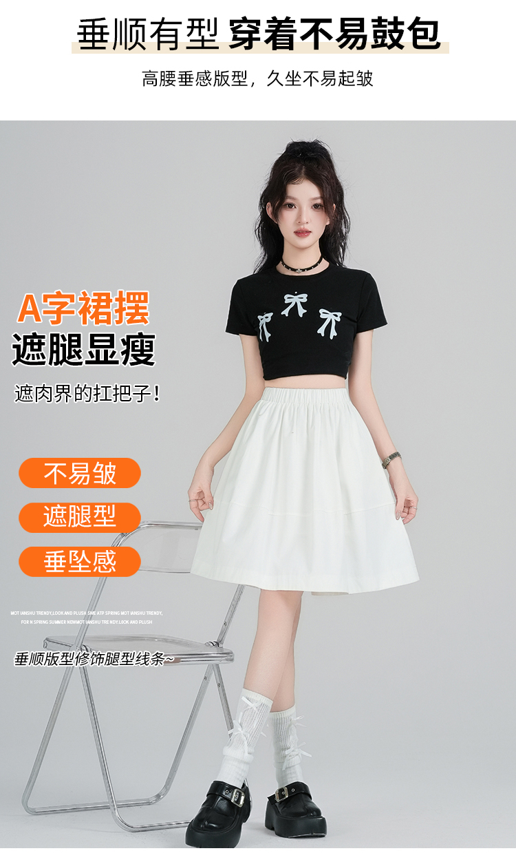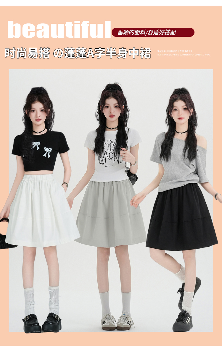 实拍2026春夏新款韩系花苞半身裙短裙女高腰显瘦蓬蓬裙松紧腰中裙
