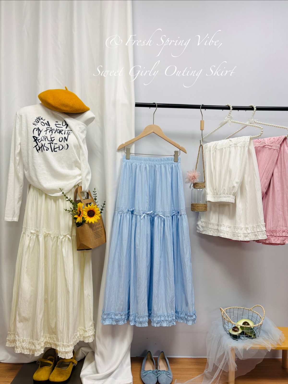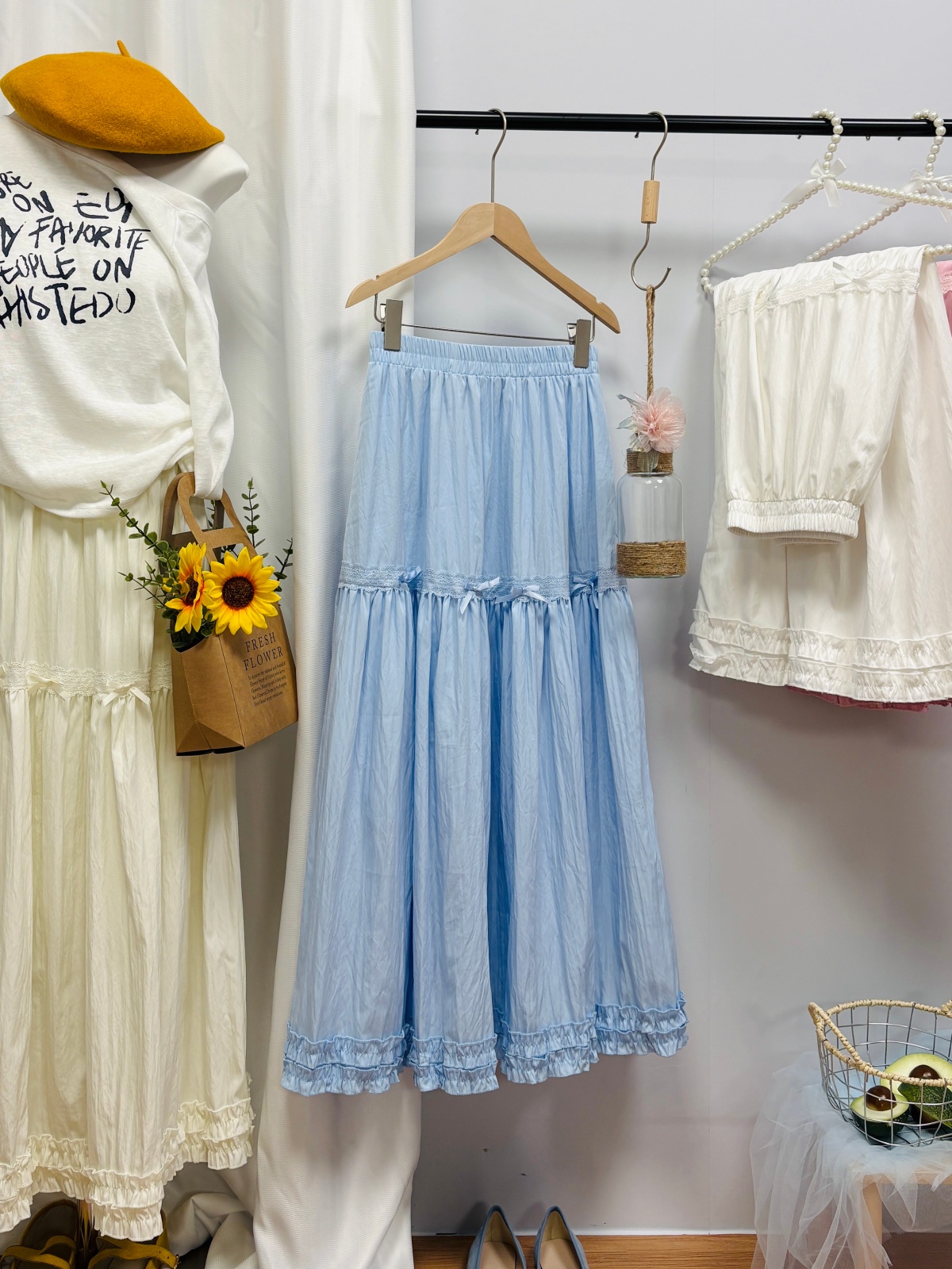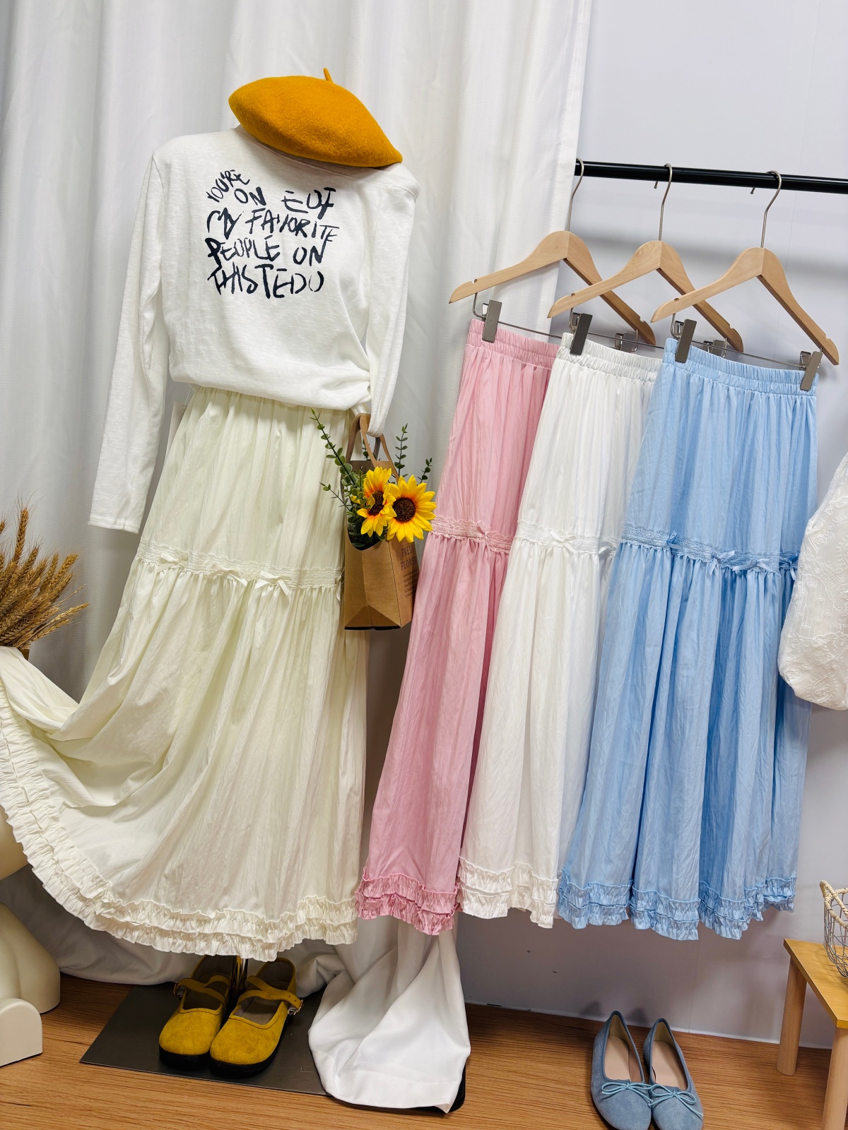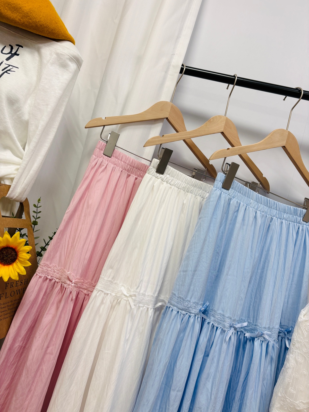 实拍 夏季新款韩系蕾丝花边蝴蝶结拼接蛋糕裙甜美木耳裙边半身裙