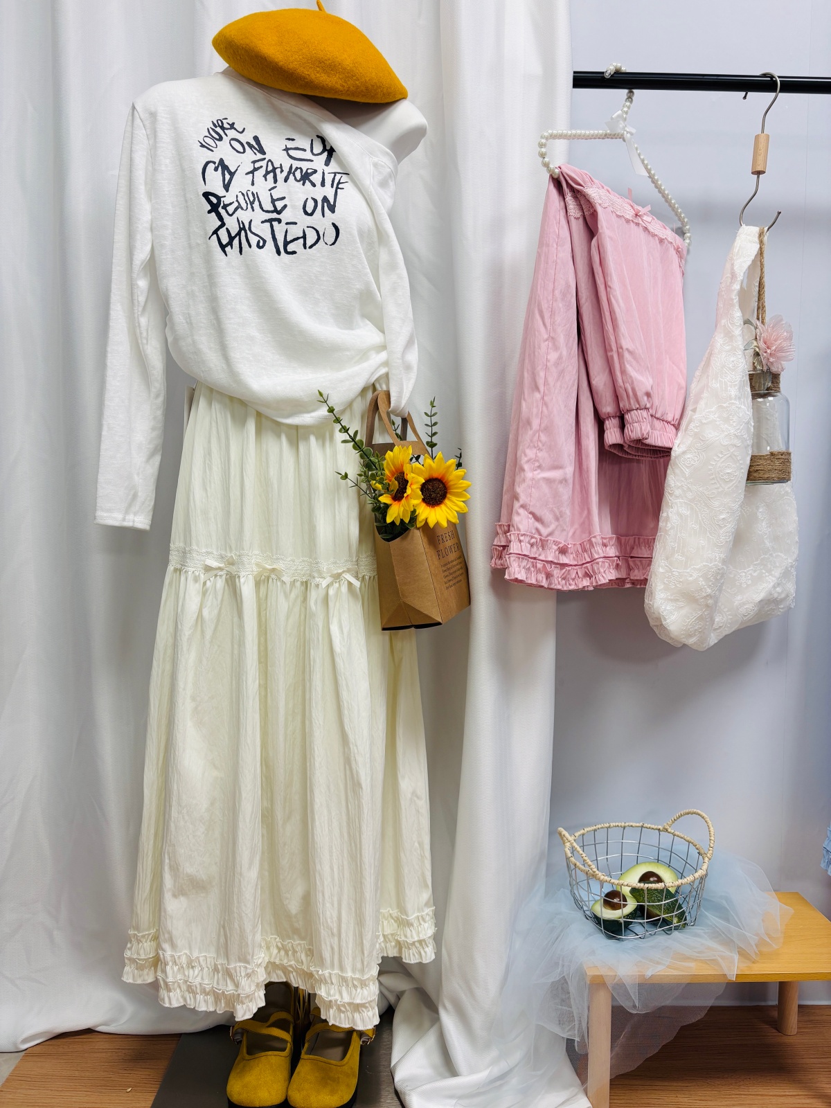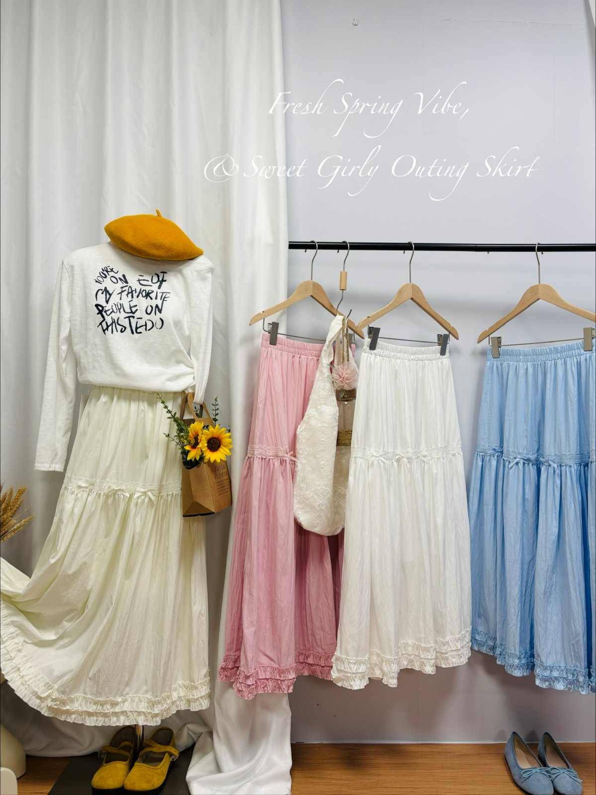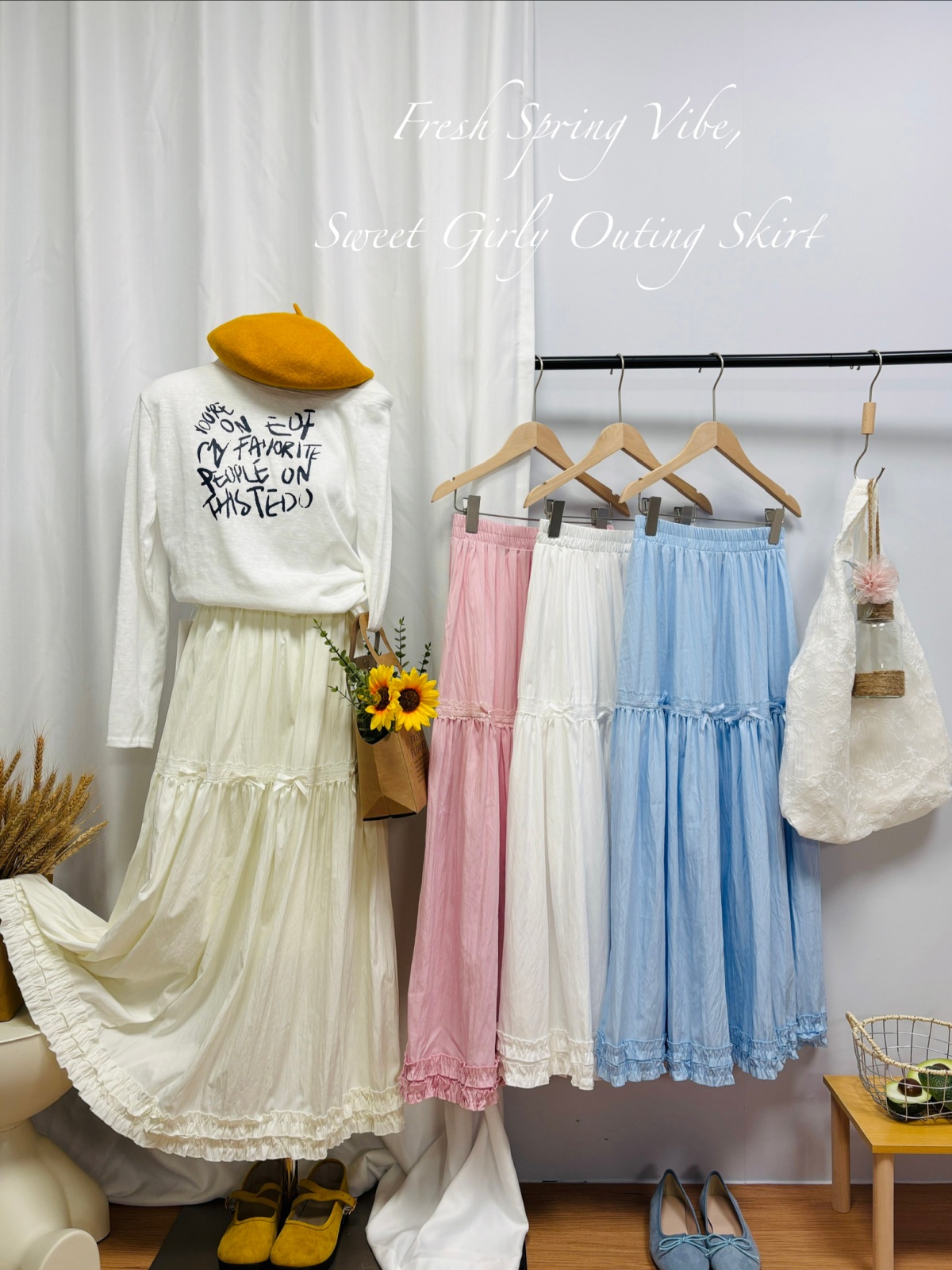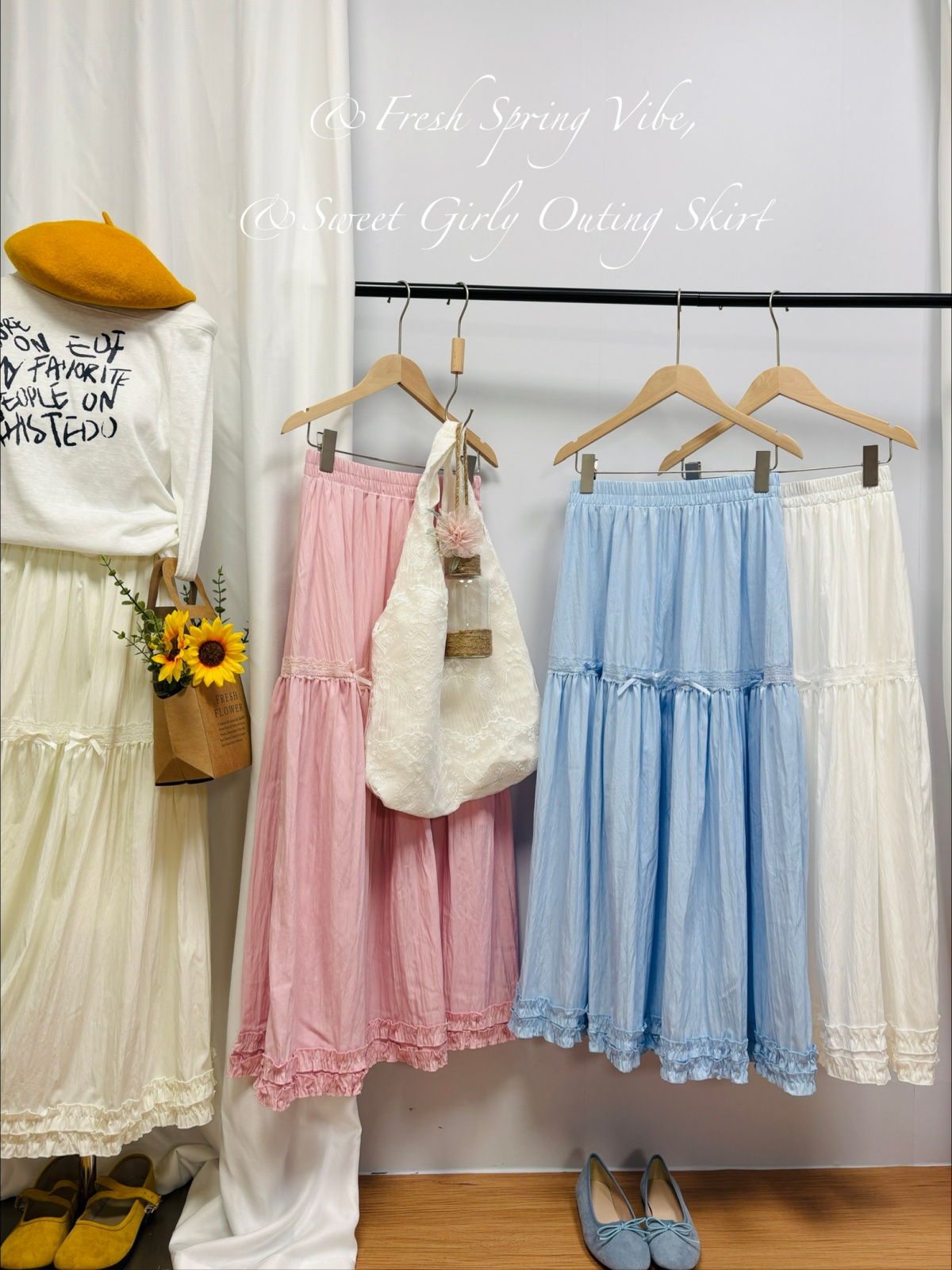 实拍 夏季新款韩系蕾丝花边蝴蝶结拼接蛋糕裙甜美木耳裙边半身裙