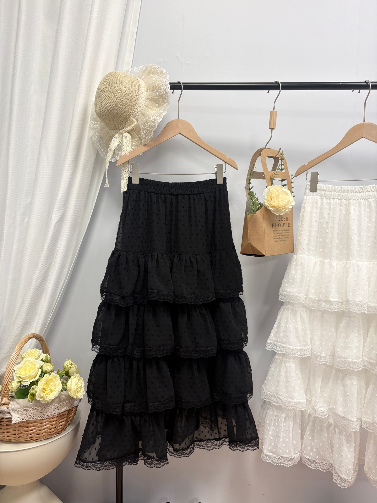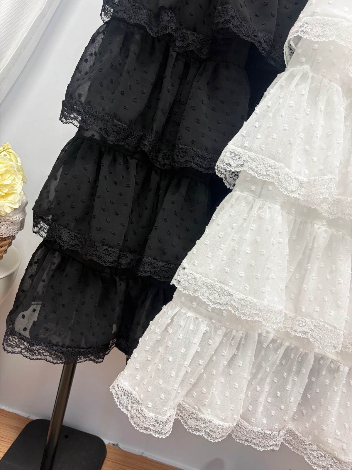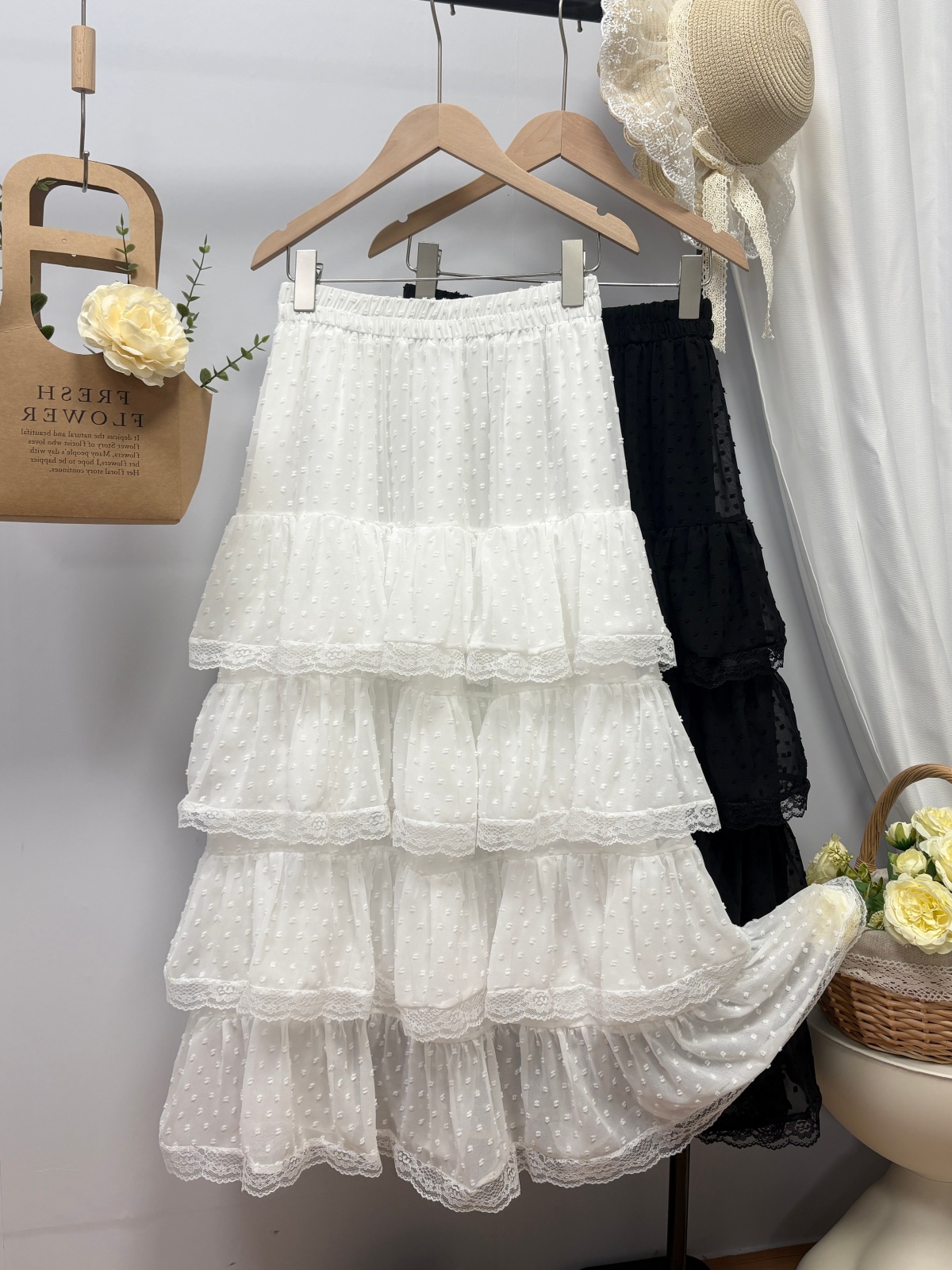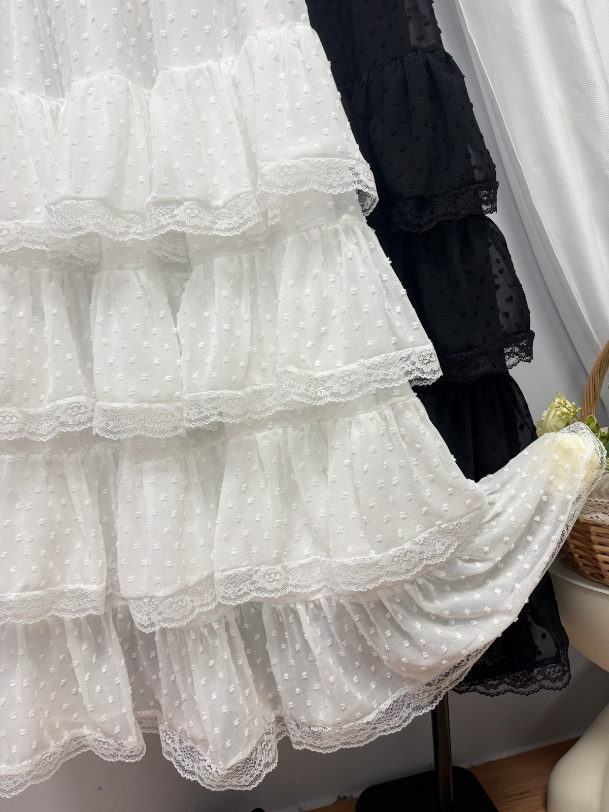 实拍 春夏新款2026韩系chic蕾丝花边波点蛋糕裙超仙绝美半身裙女
