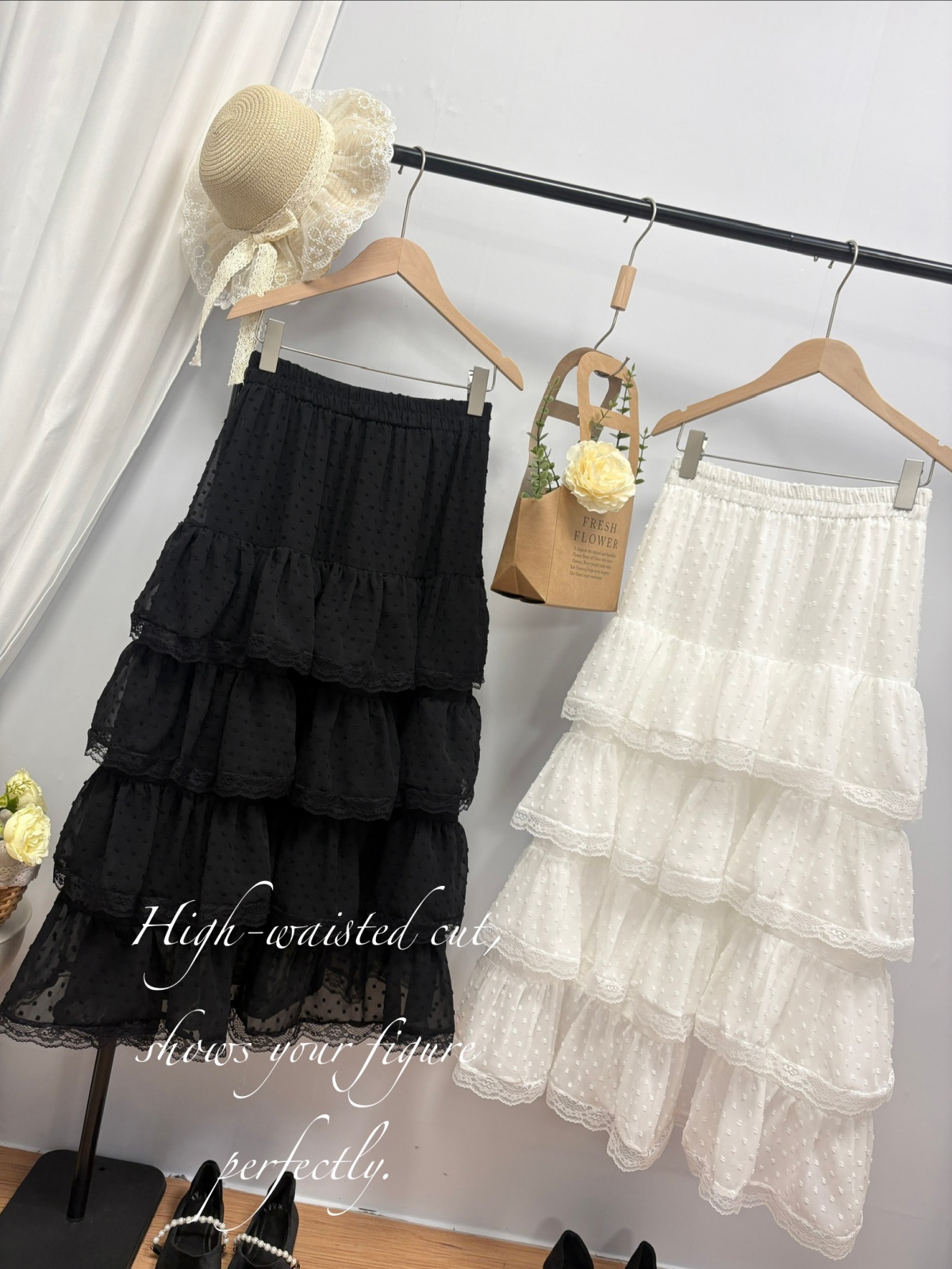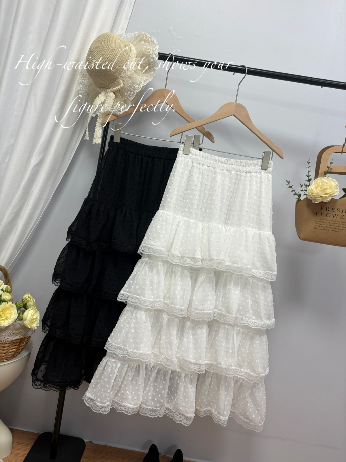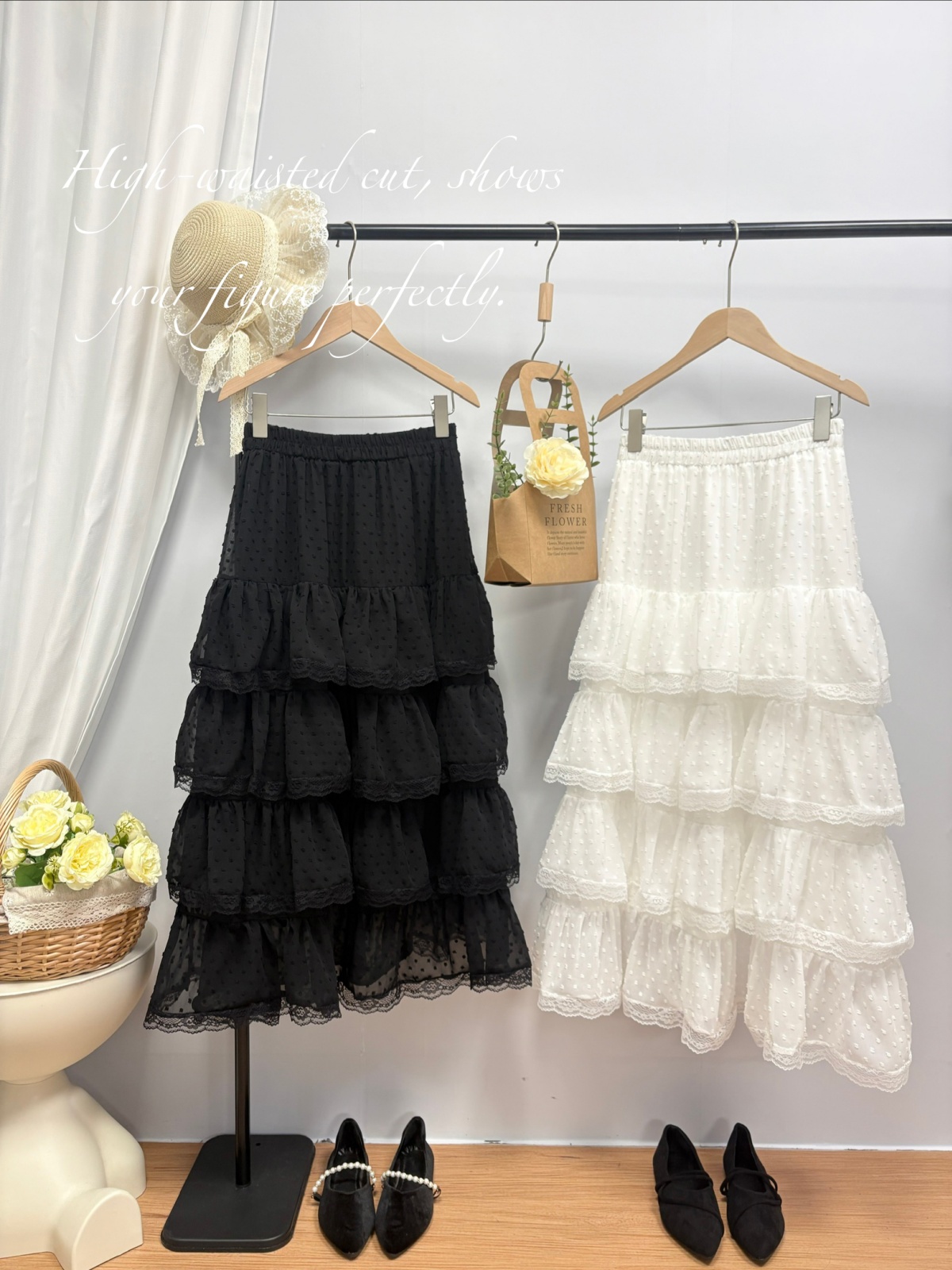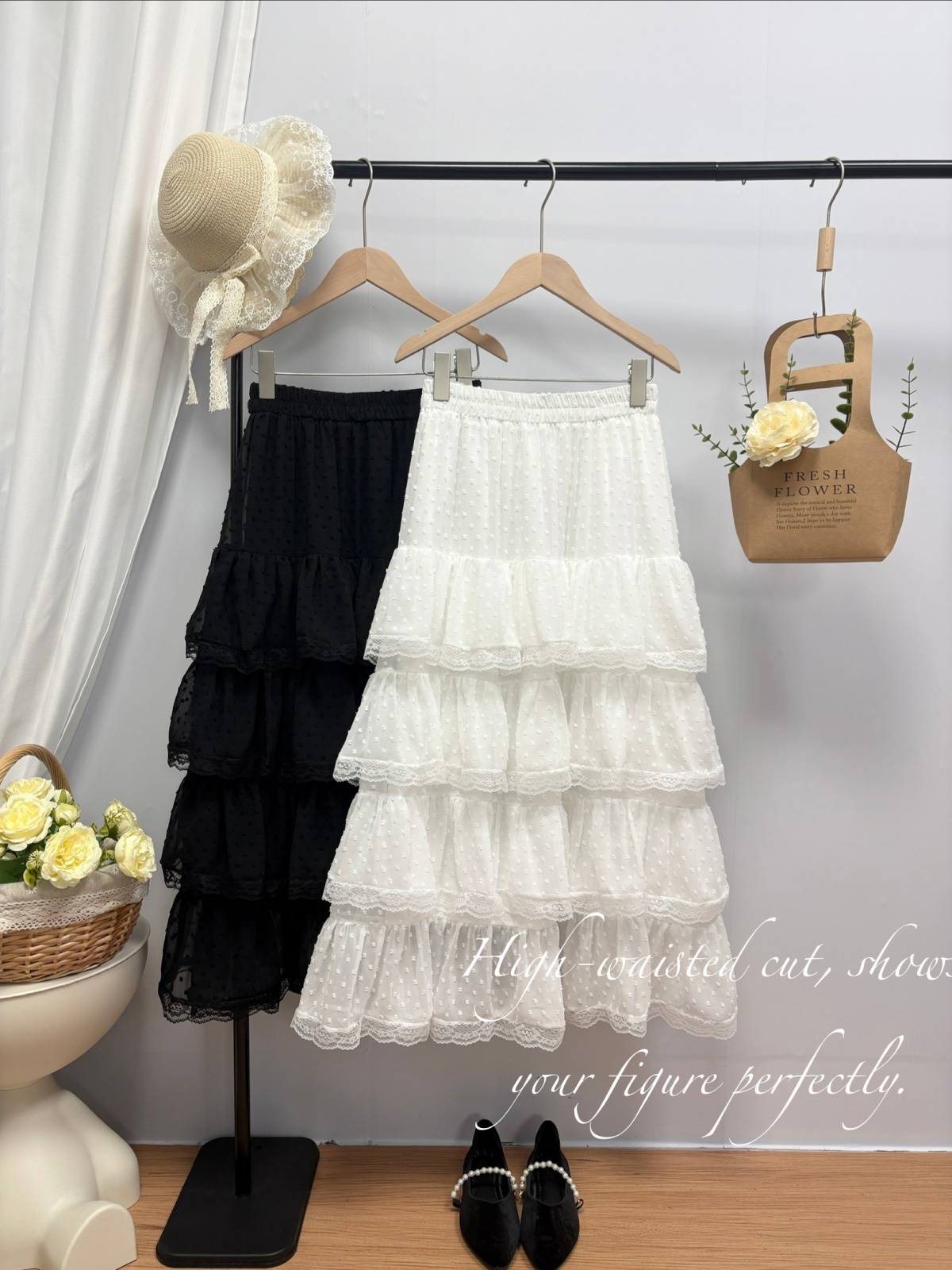 实拍 春夏新款2026韩系chic蕾丝花边波点蛋糕裙超仙绝美半身裙女