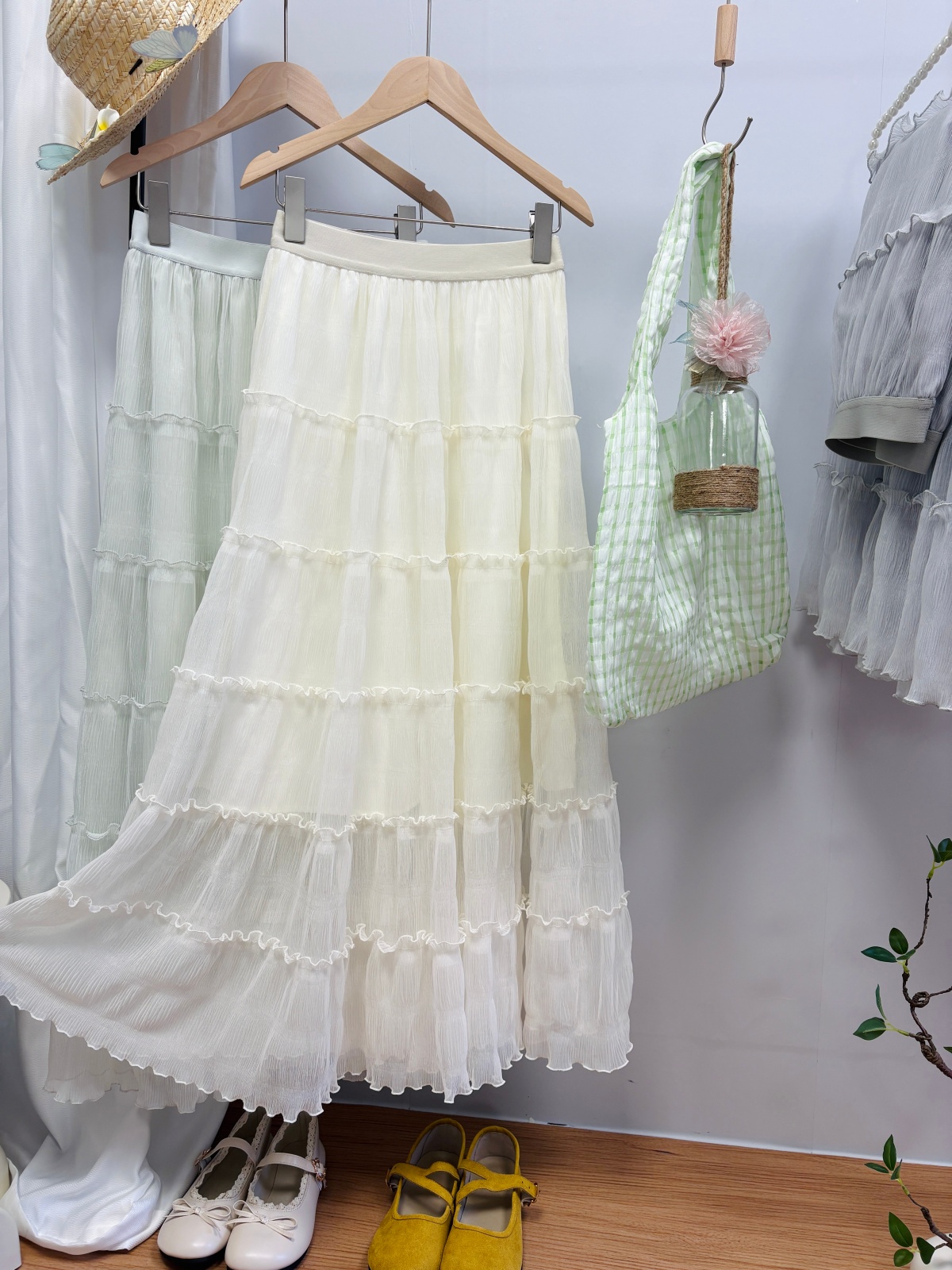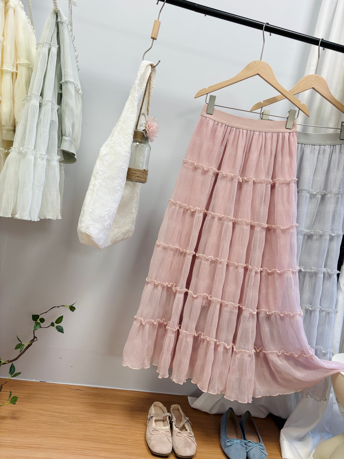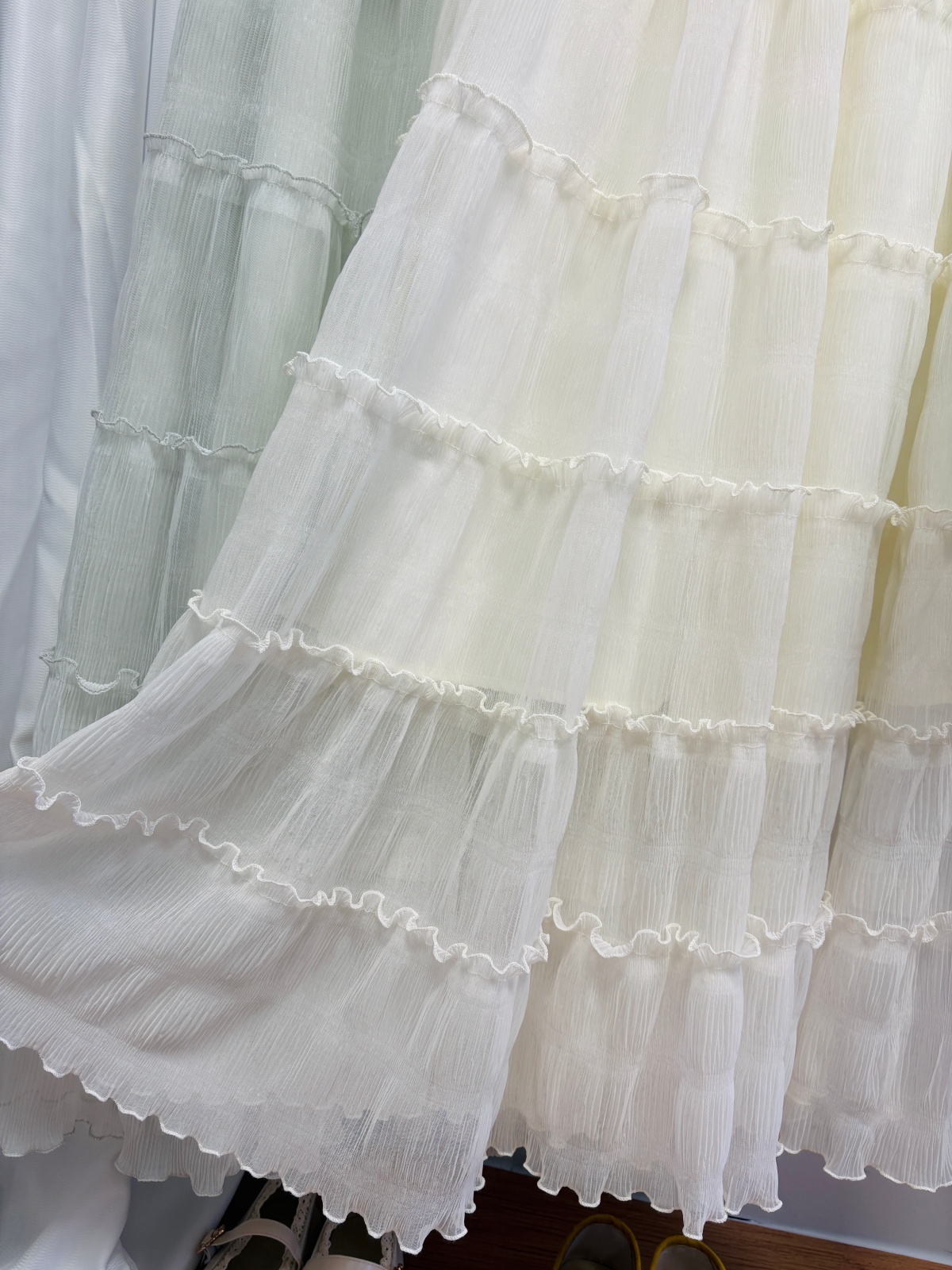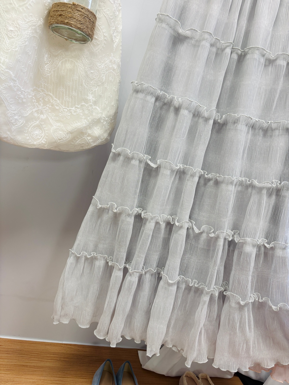 实拍春夏新款2026法式浪漫垂坠感长款半身裙木耳边多层超仙蛋糕裙