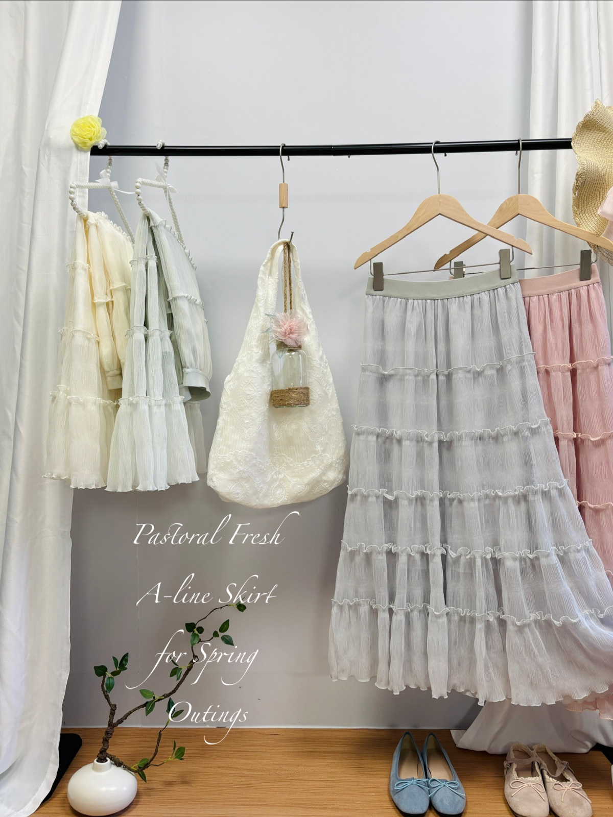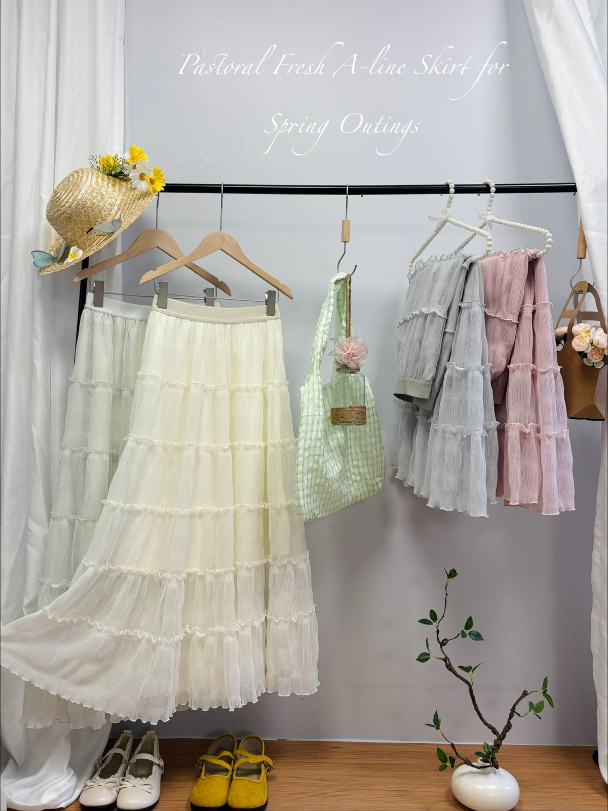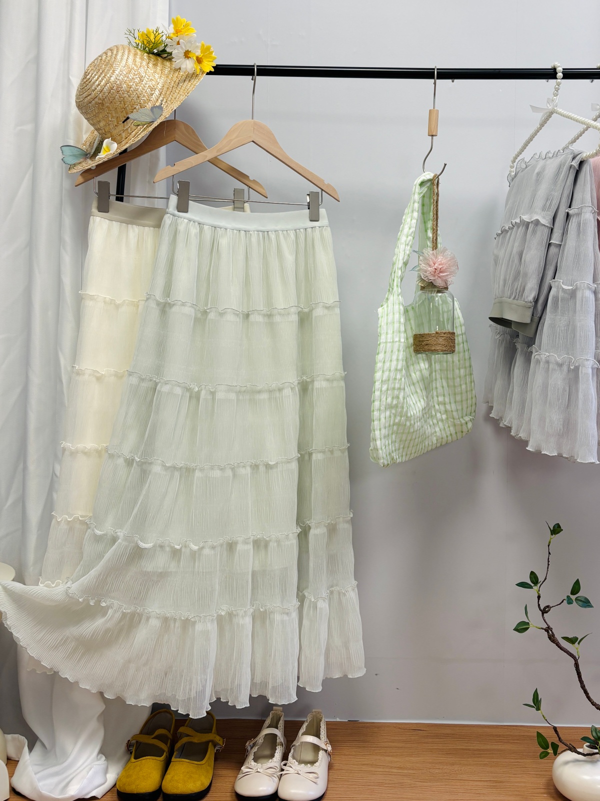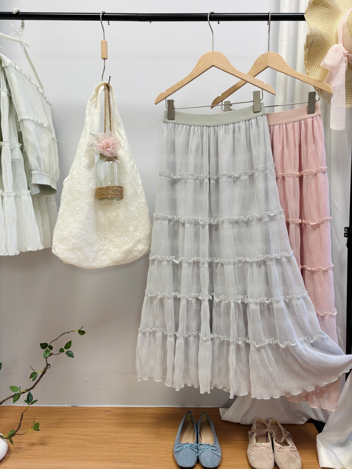 实拍春夏新款2026法式浪漫垂坠感长款半身裙木耳边多层超仙蛋糕裙