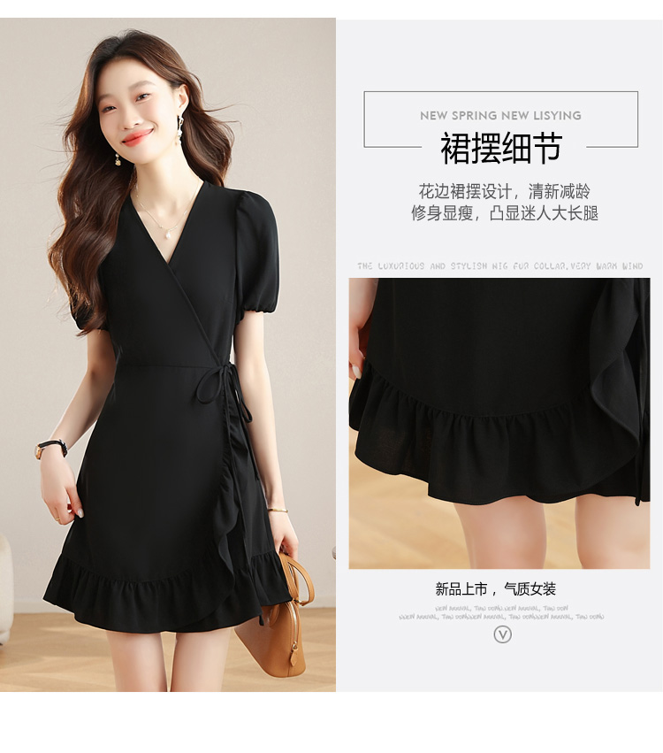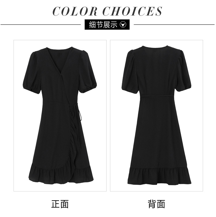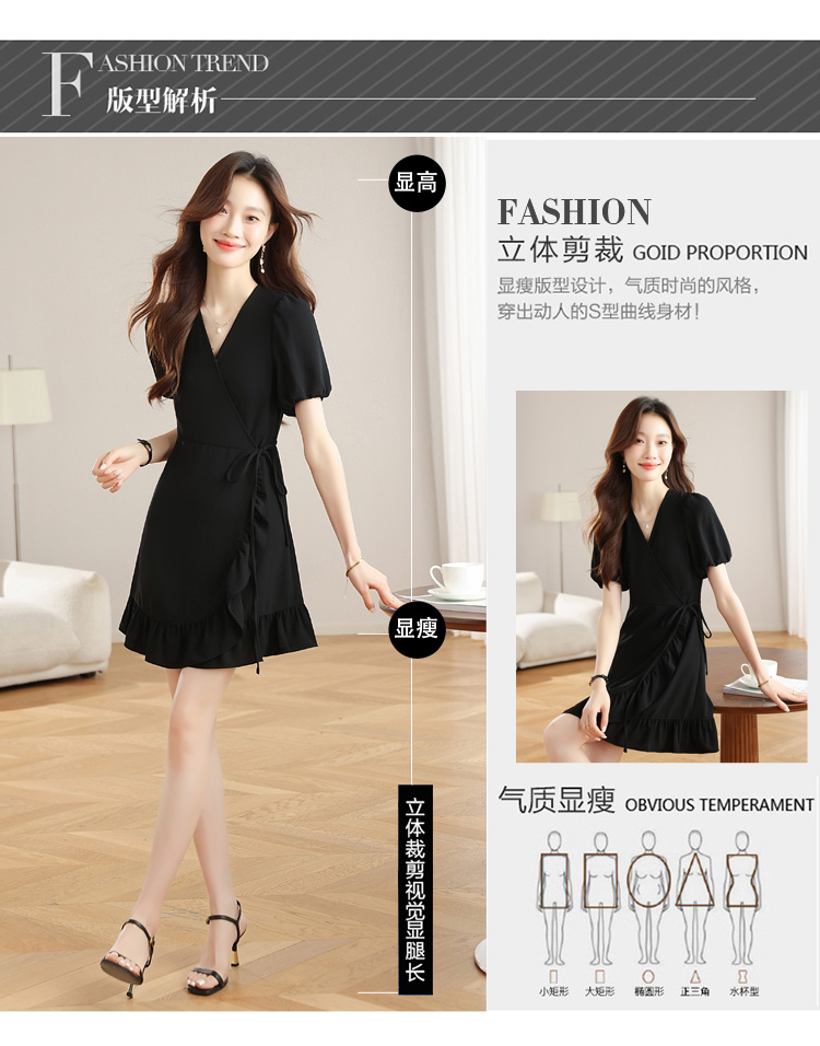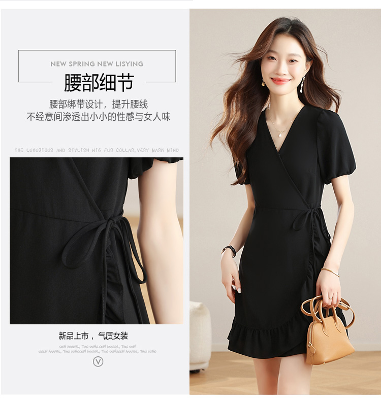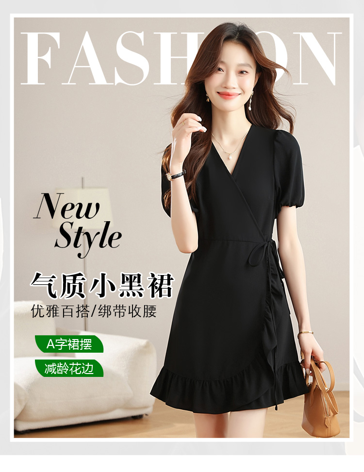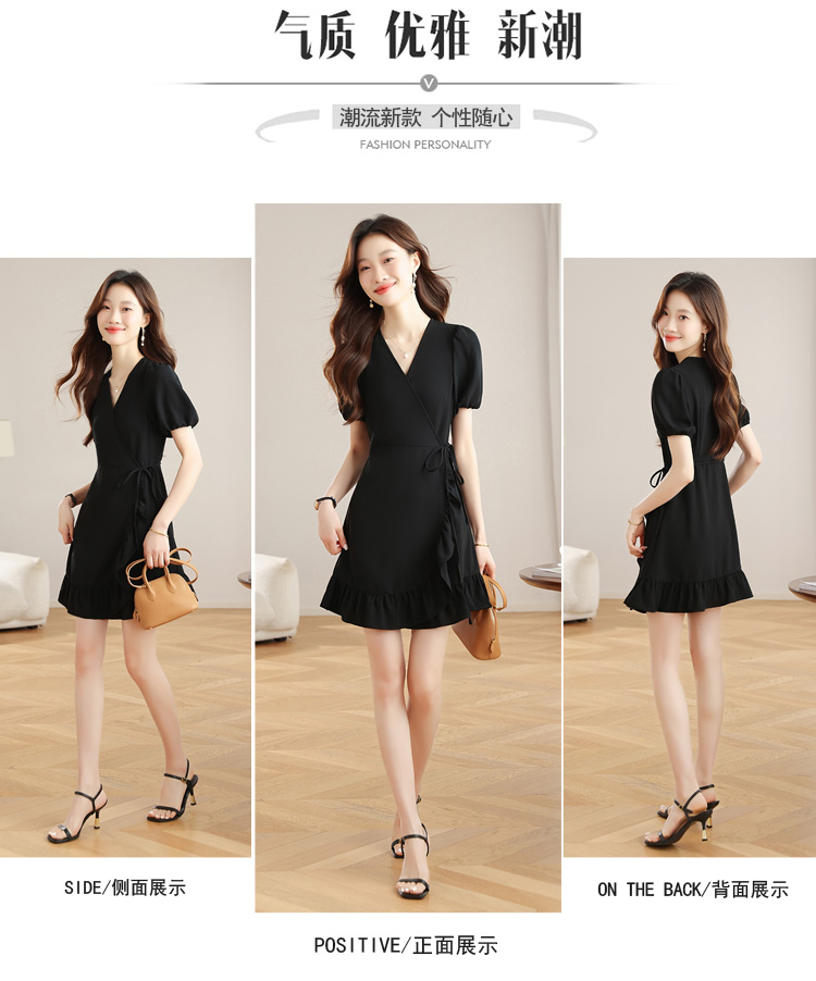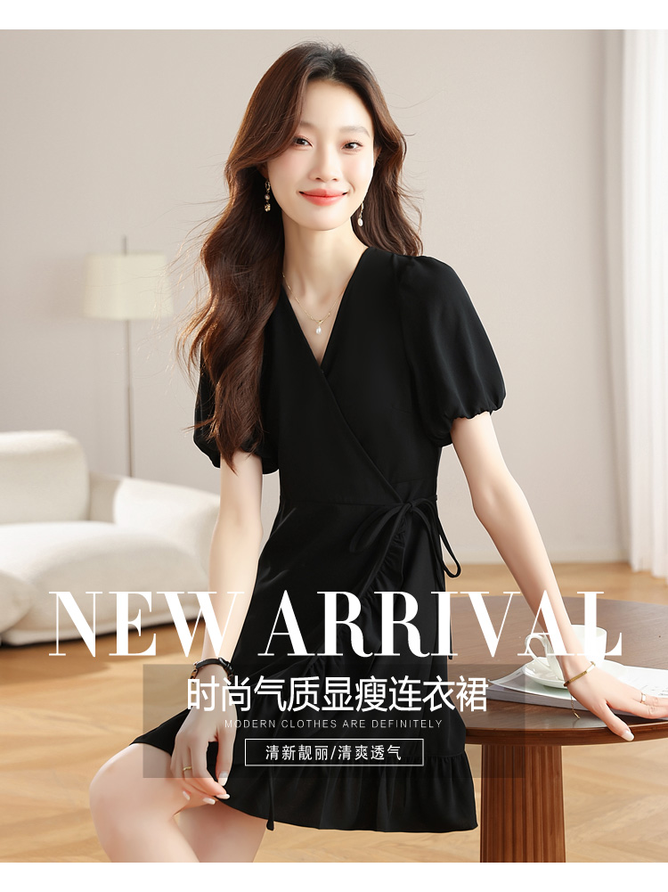 实拍茶歇法式黑色连衣裙女小个子夏季新款赫本风气质显瘦小黑裙短