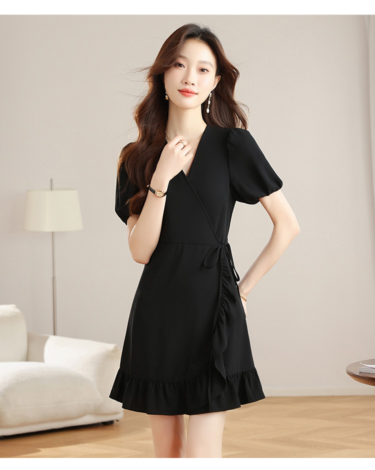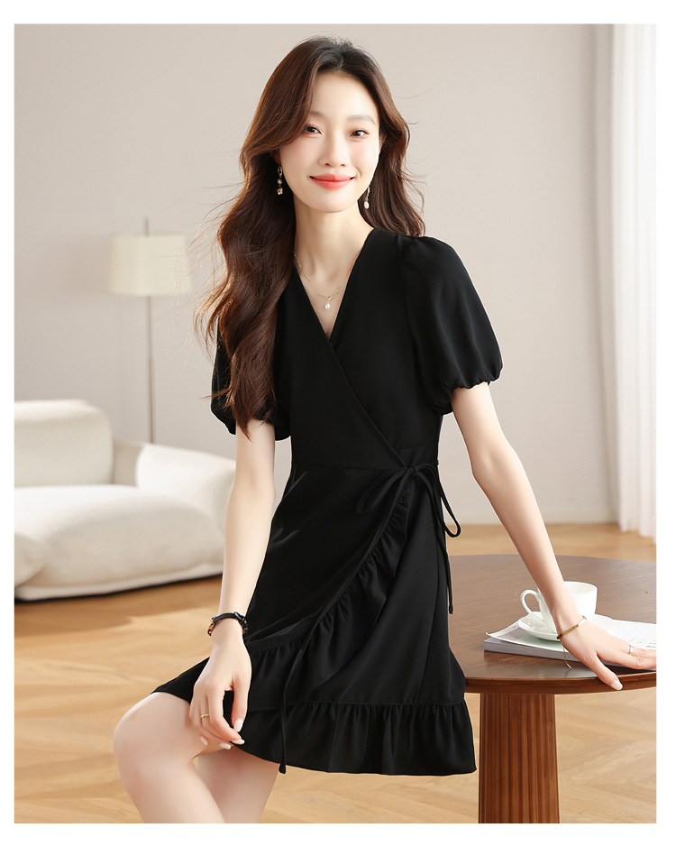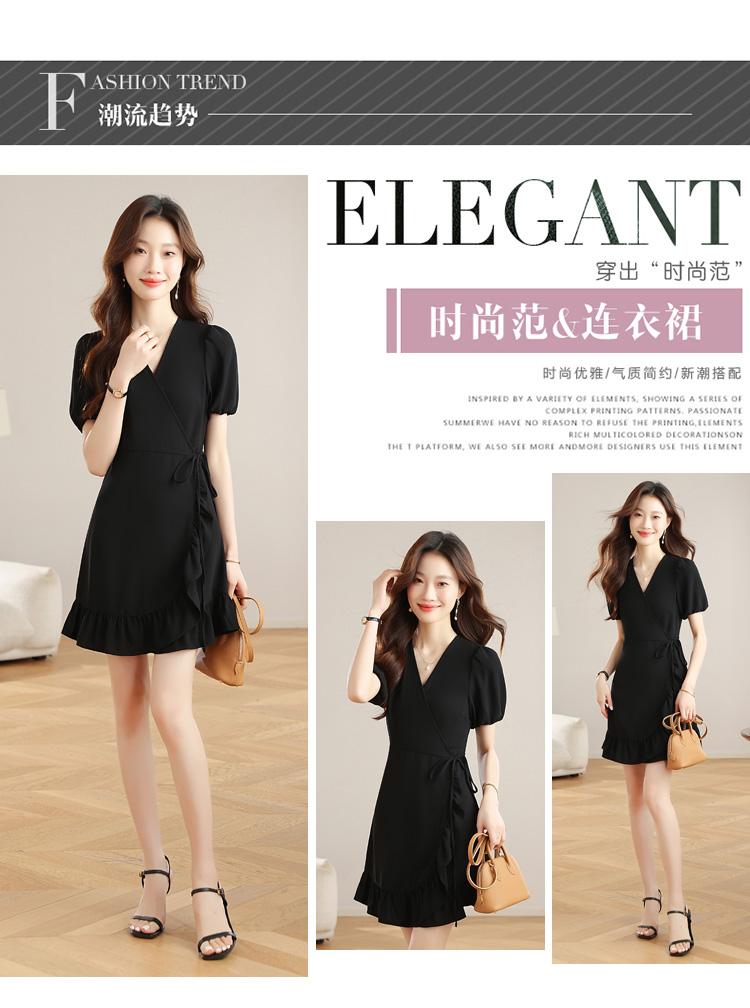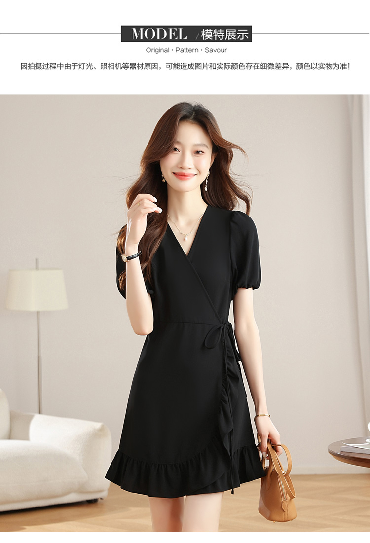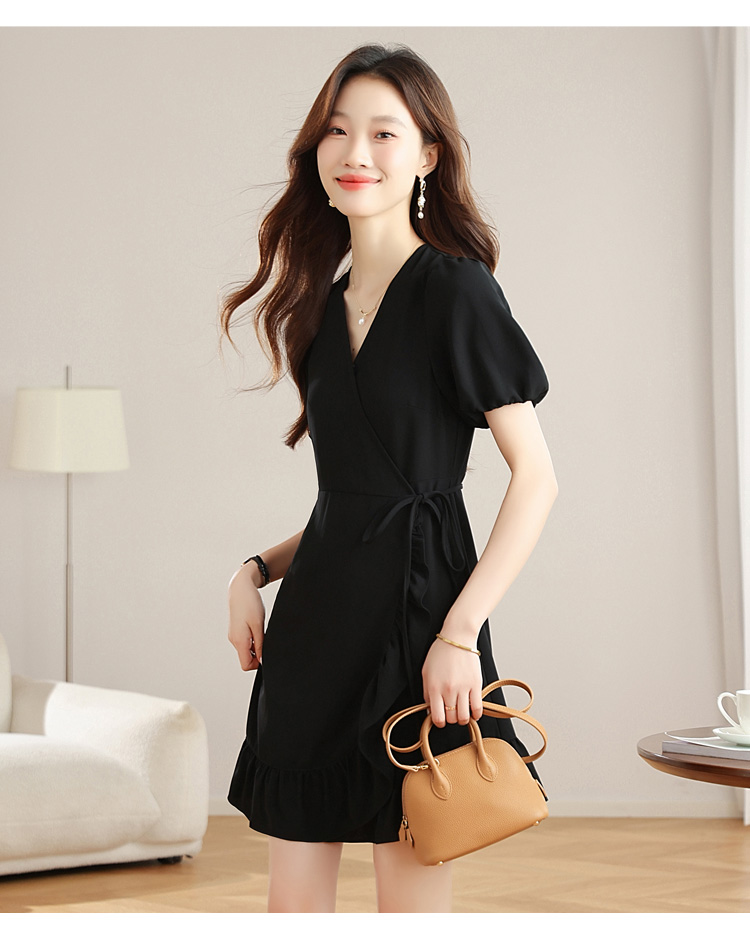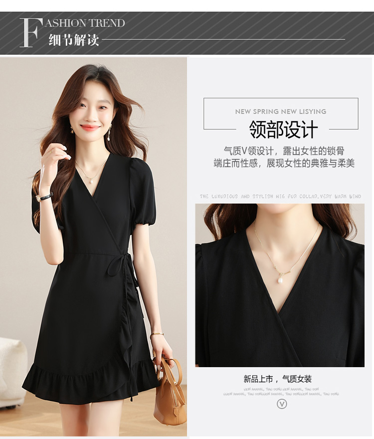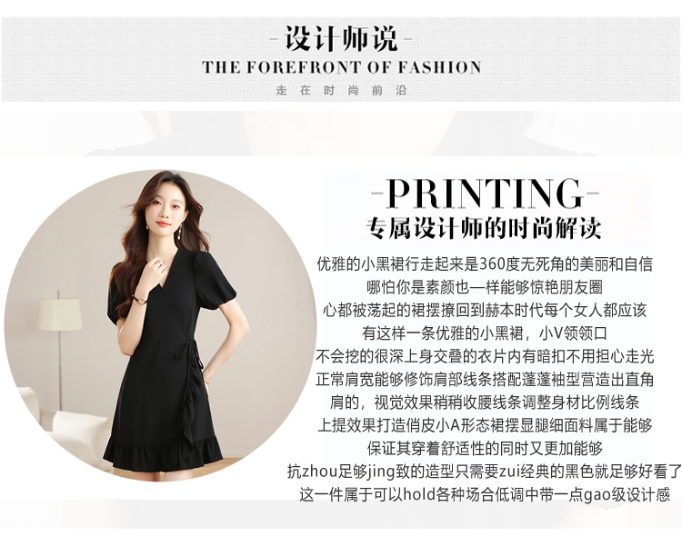 实拍茶歇法式黑色连衣裙女小个子夏季新款赫本风气质显瘦小黑裙短
