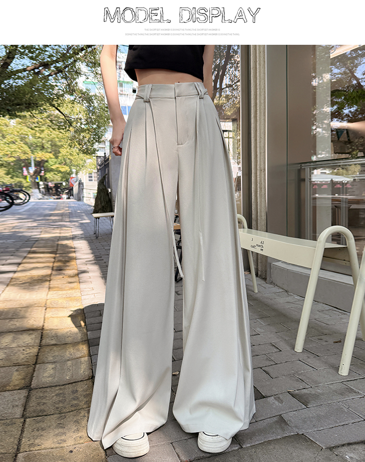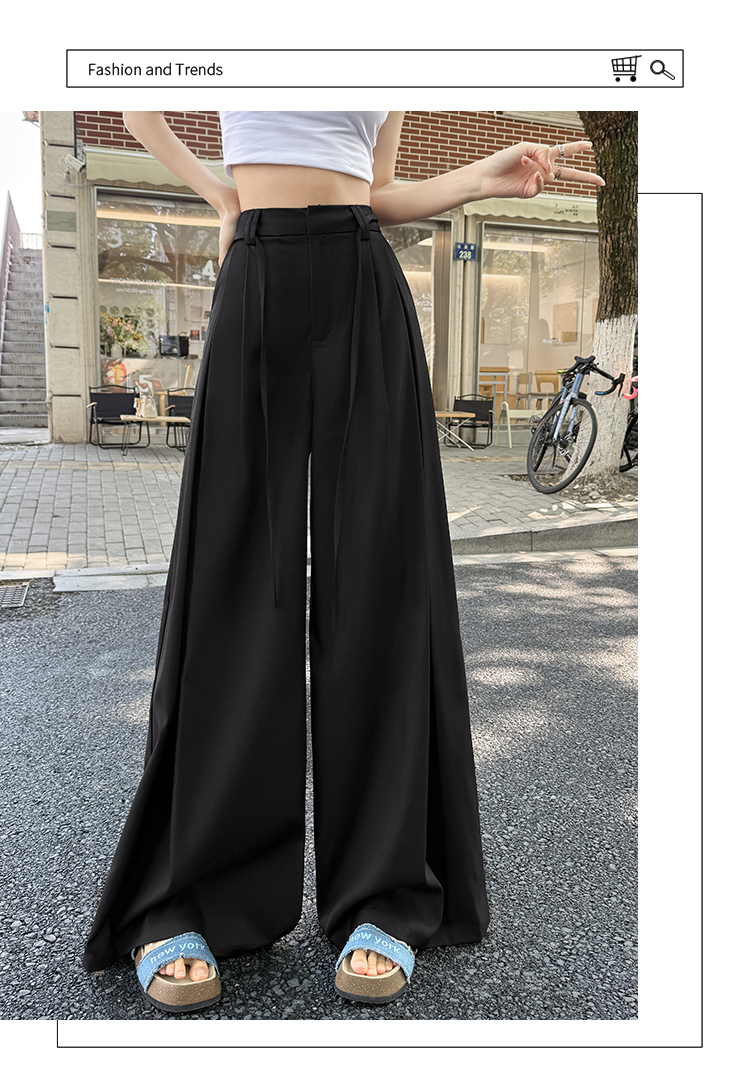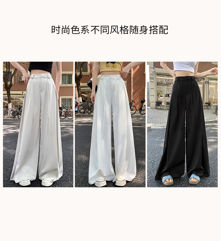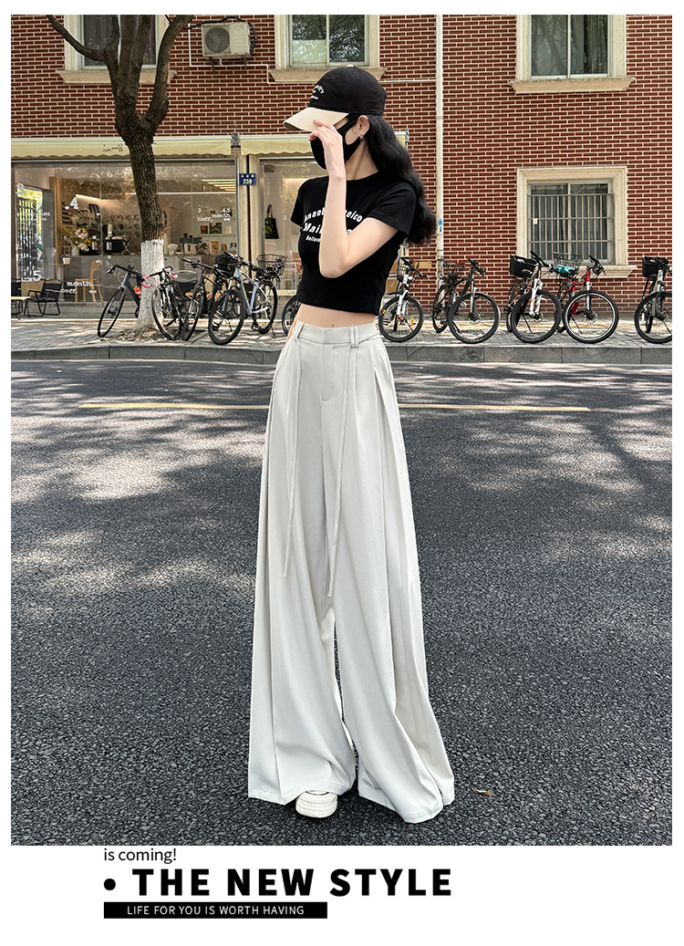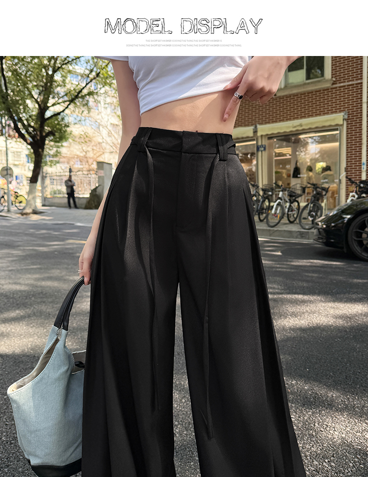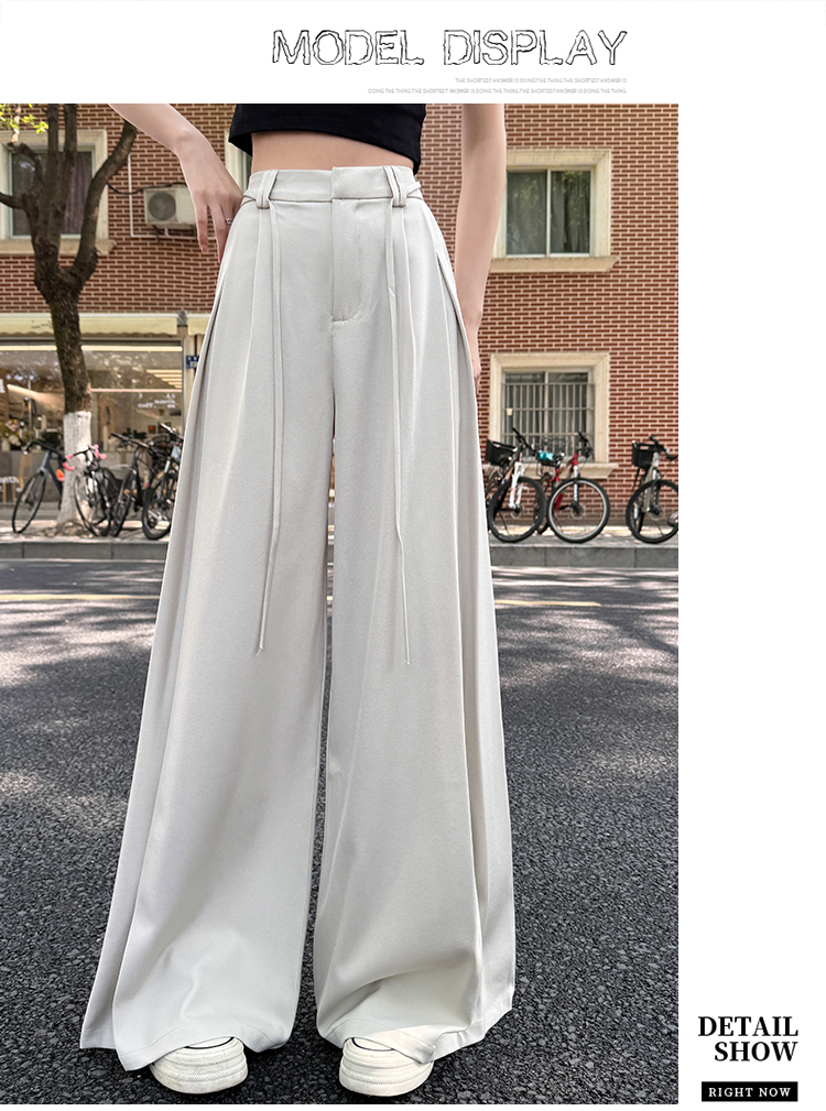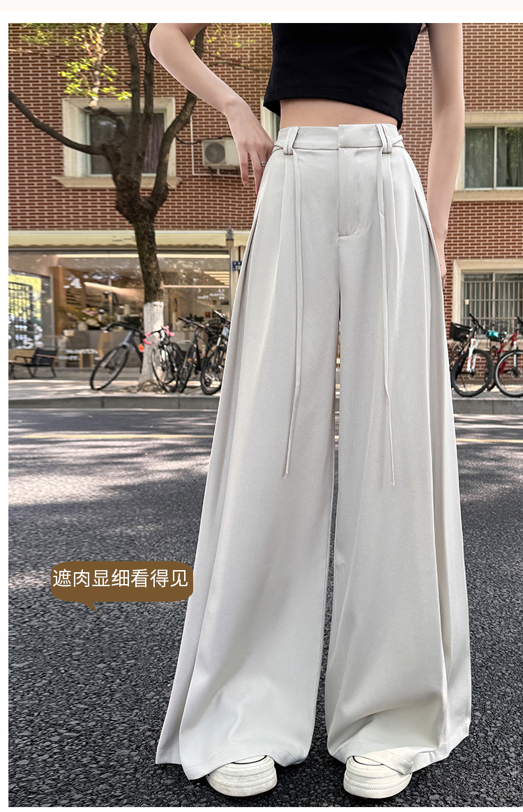 实拍好质量西装阔腿裤女春秋2026设计感抽绳垂感宽松休闲拖地裤裙