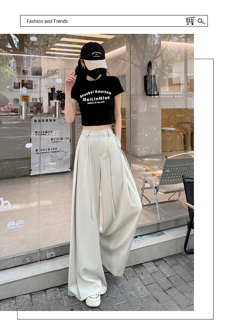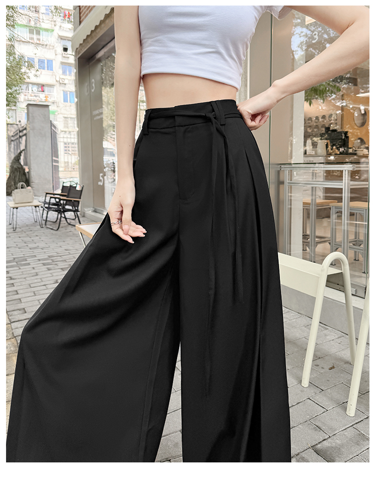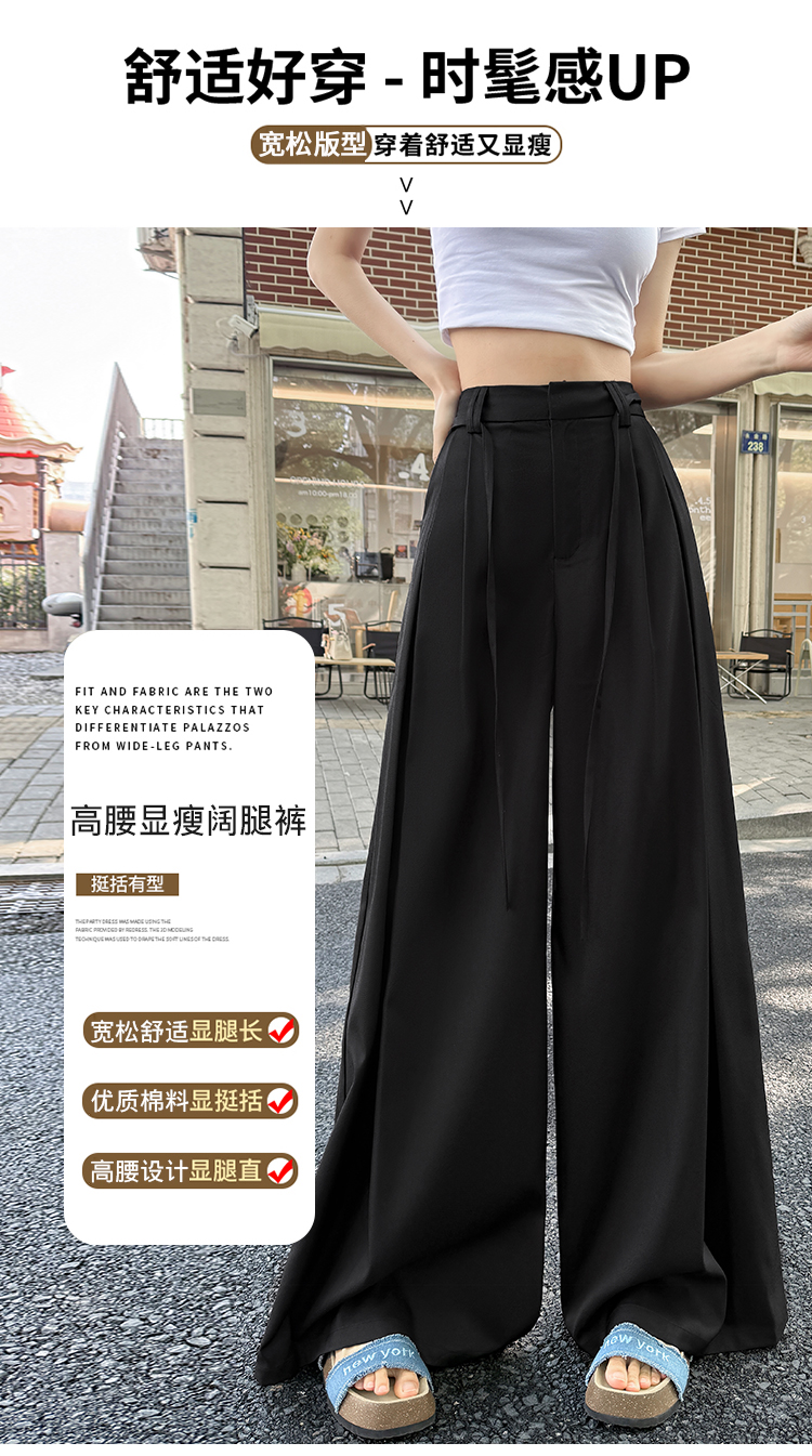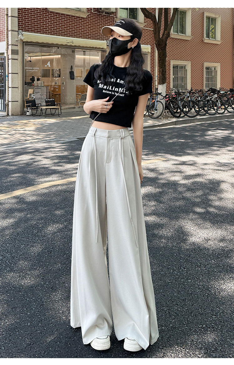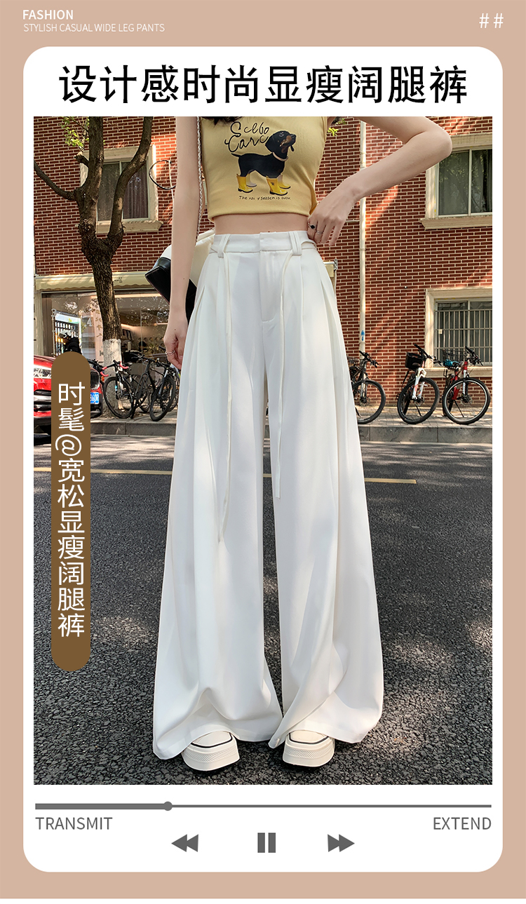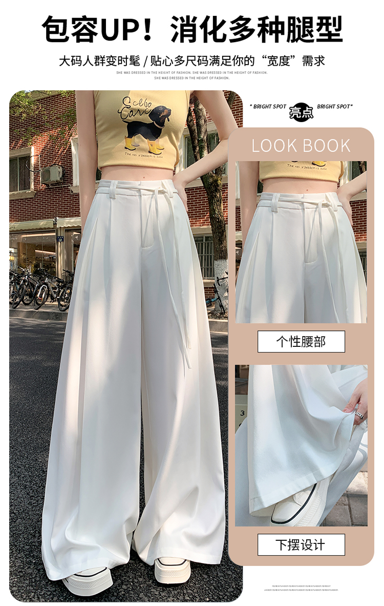 实拍好质量西装阔腿裤女春秋2026设计感抽绳垂感宽松休闲拖地裤裙