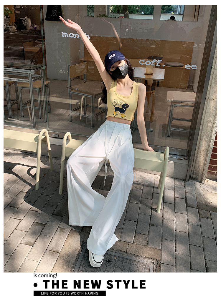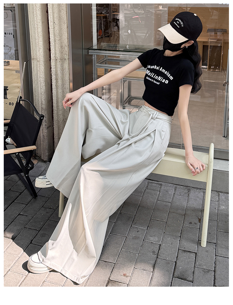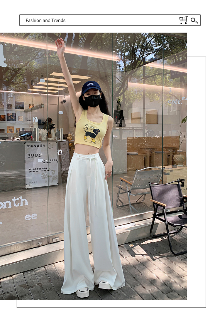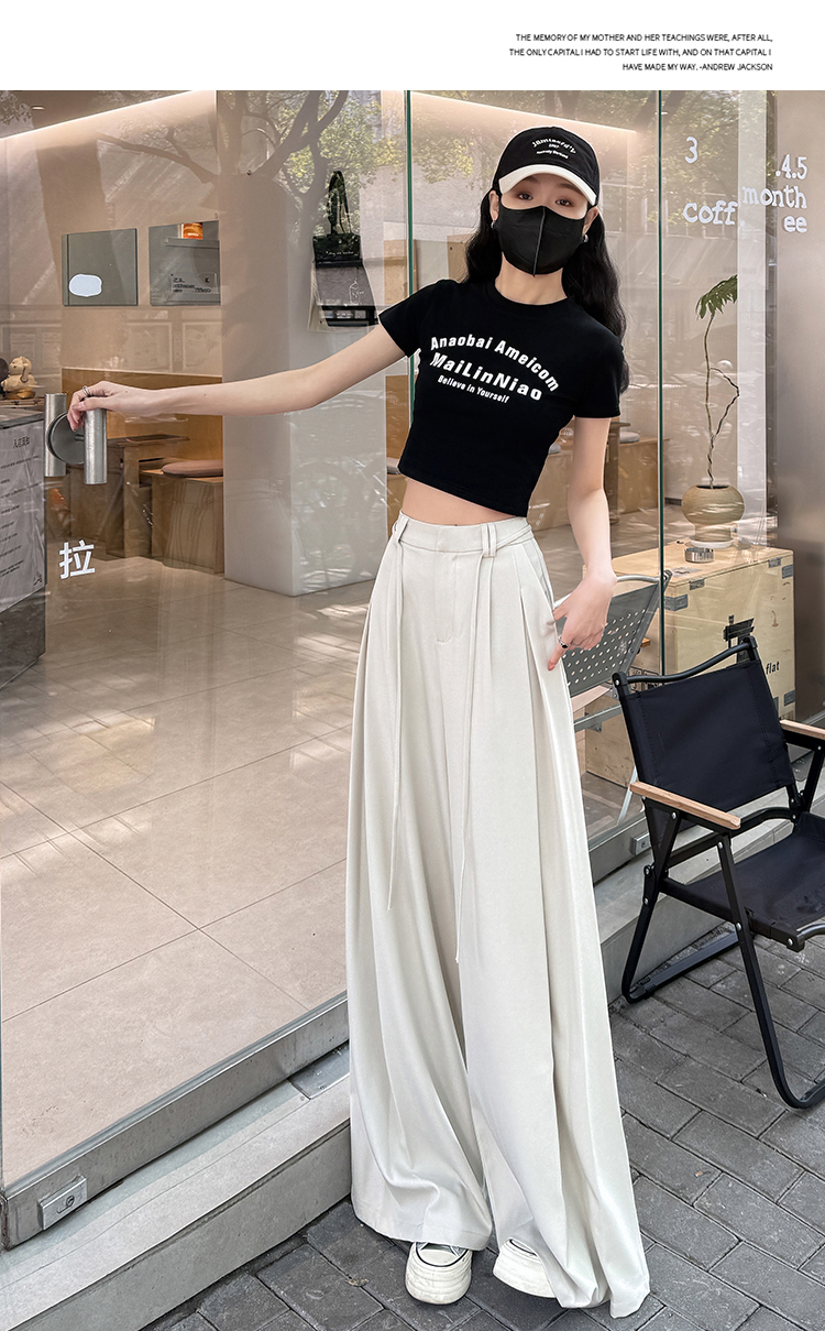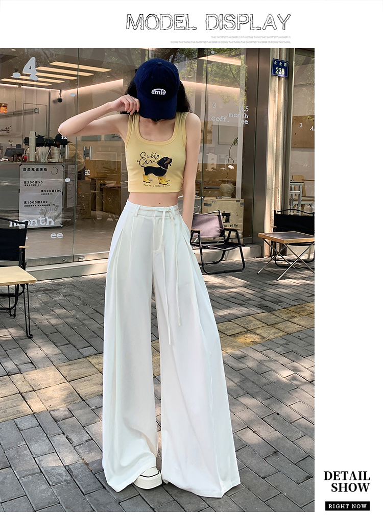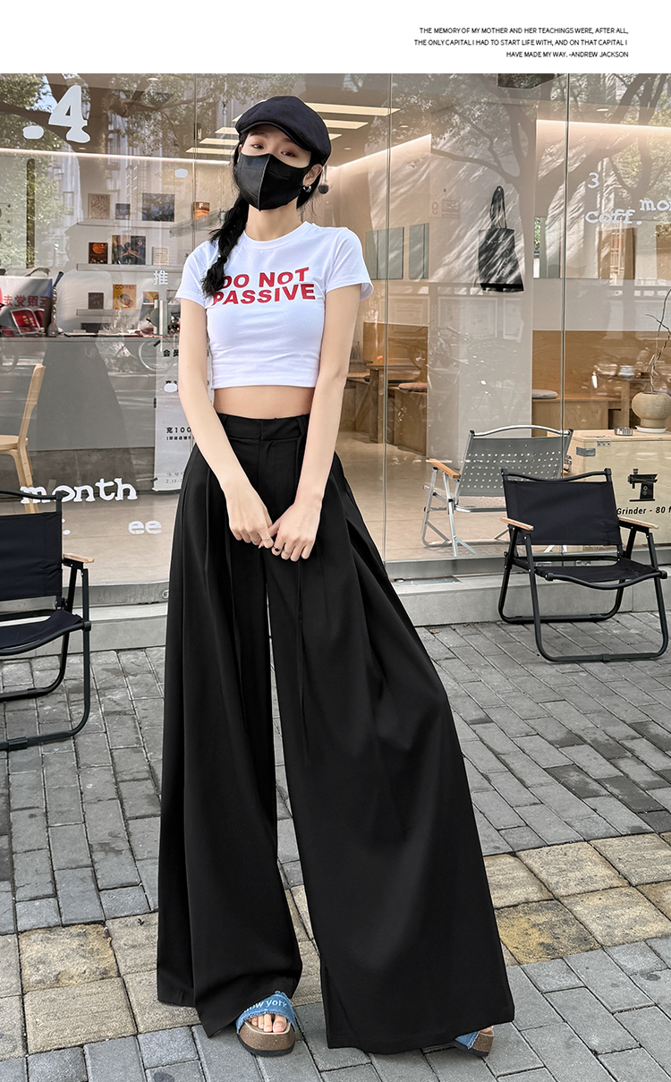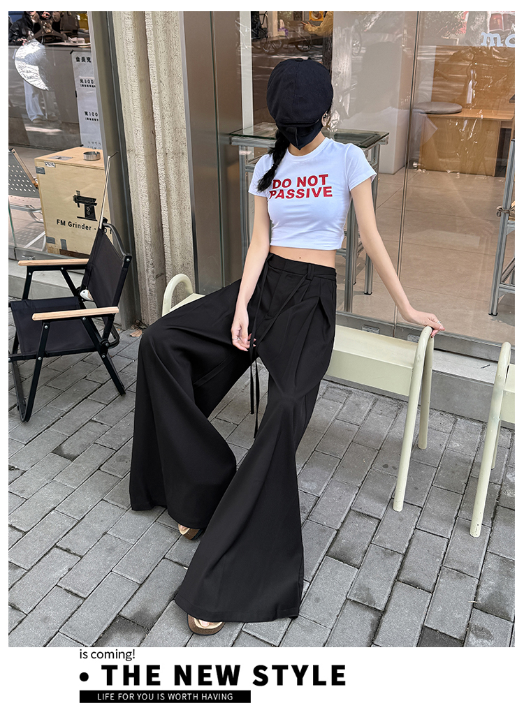 实拍好质量西装阔腿裤女春秋2026设计感抽绳垂感宽松休闲拖地裤裙