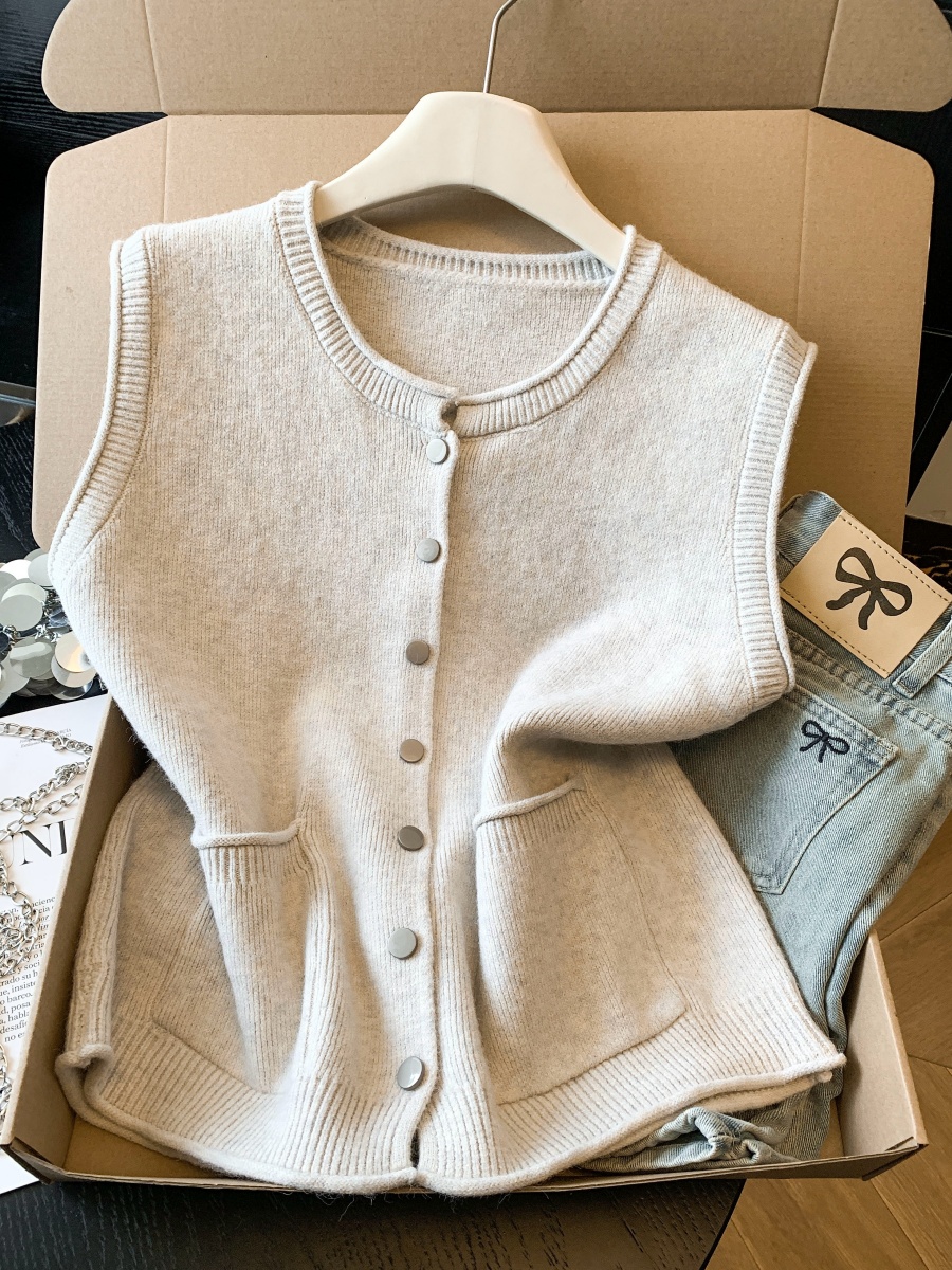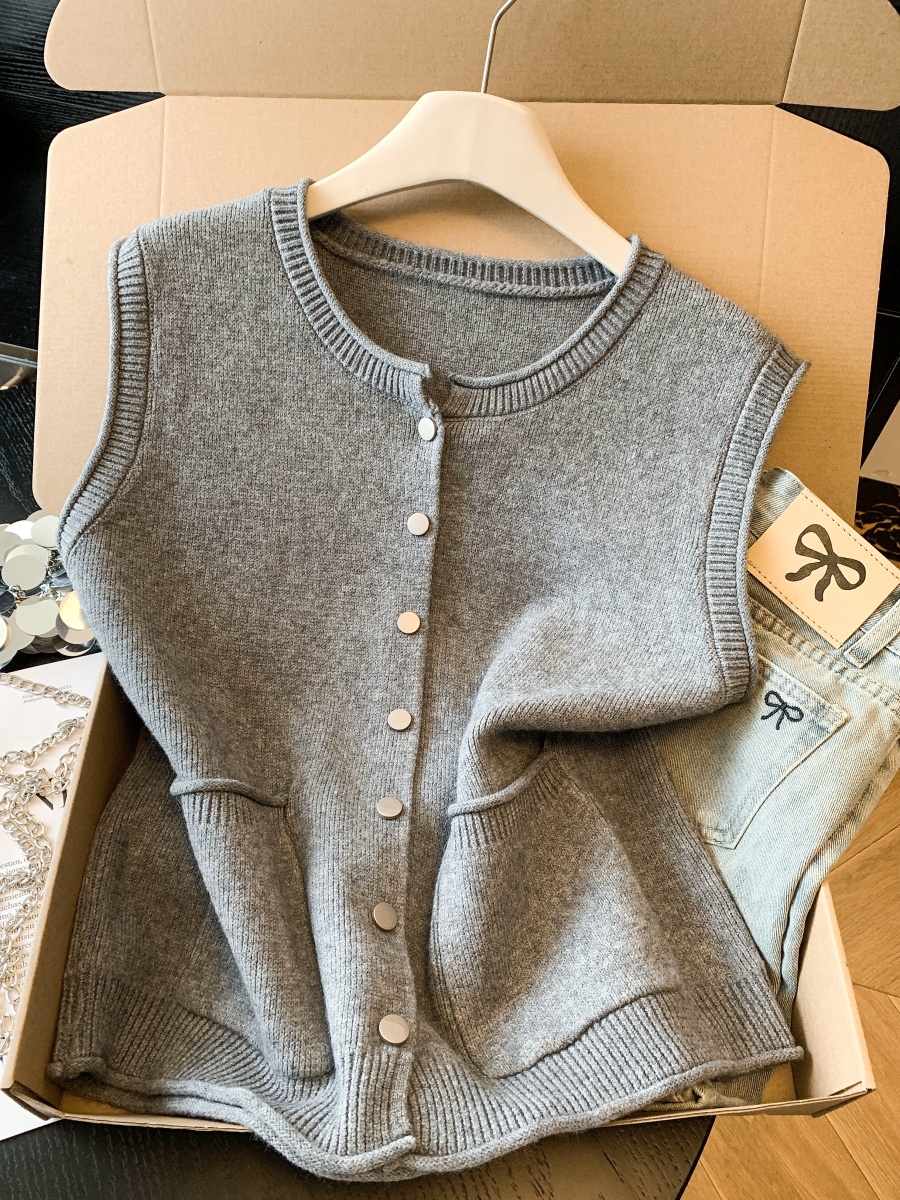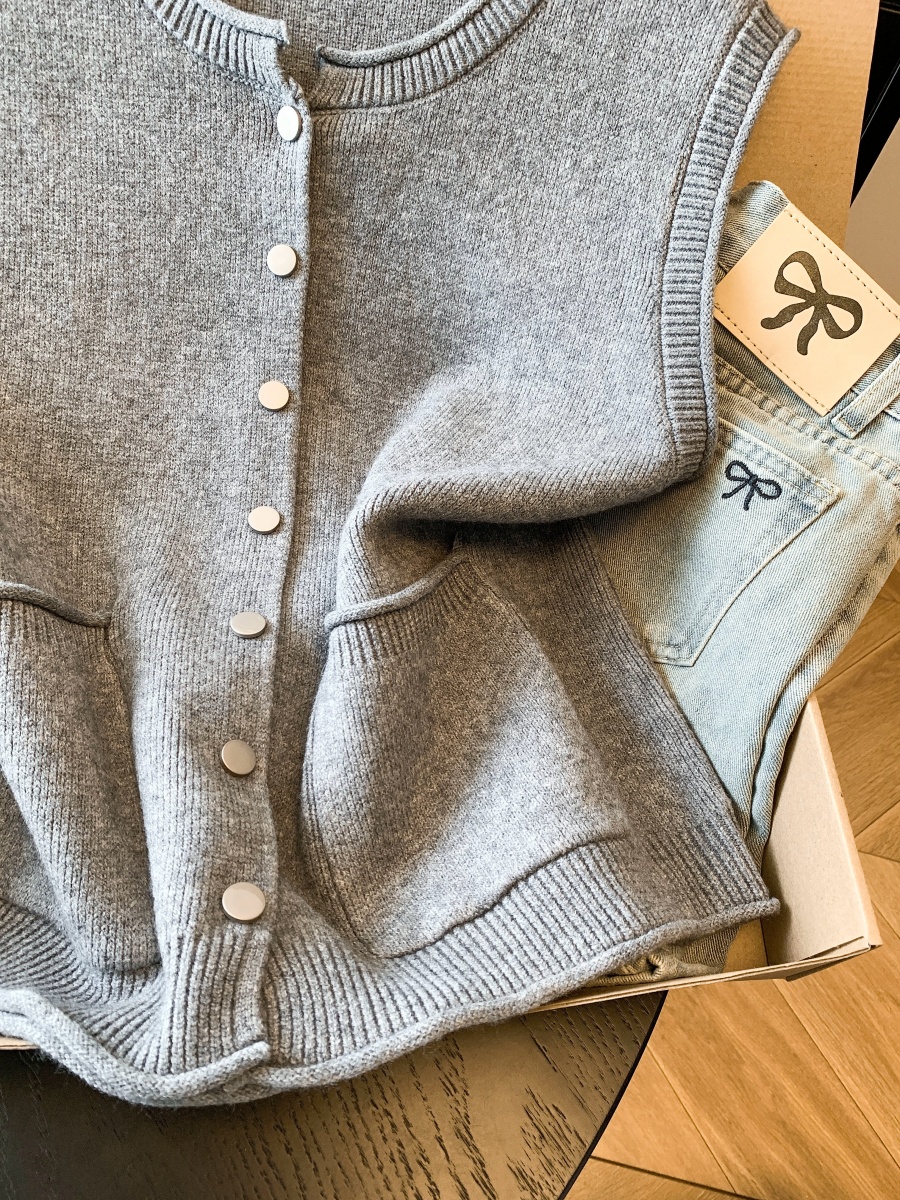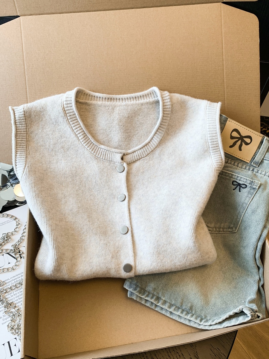 实拍~韩系温柔系卷边金属扣气质百搭针织马甲女2026春季叠穿马甲
