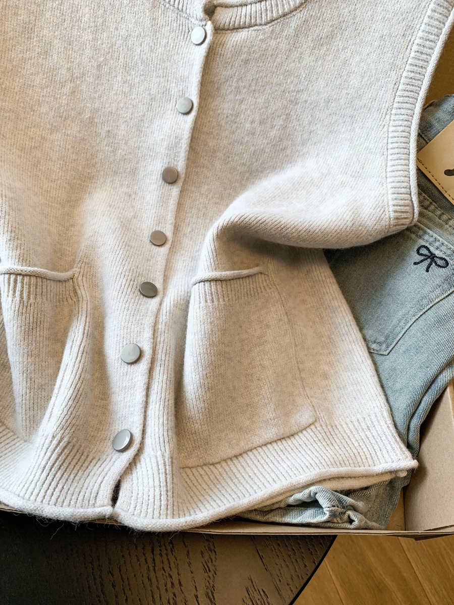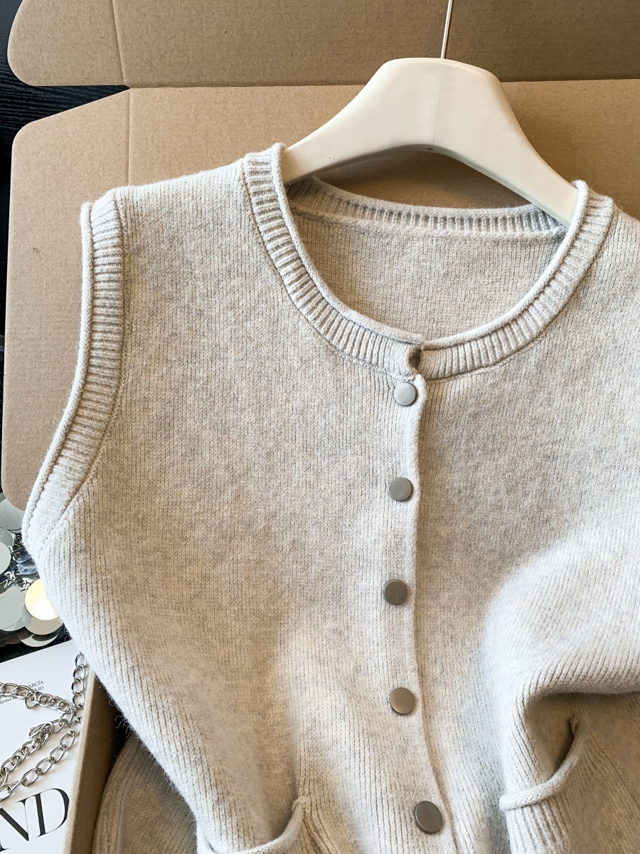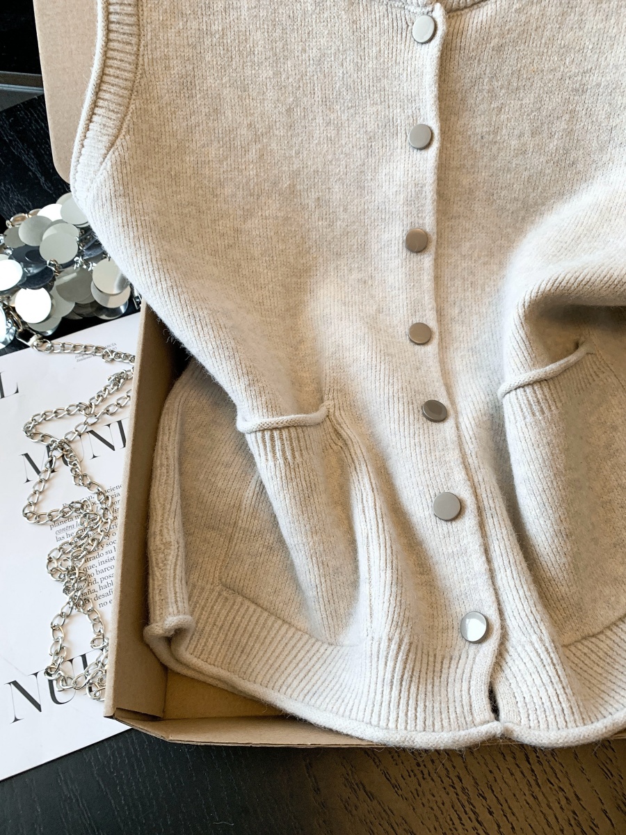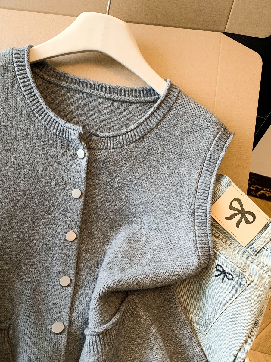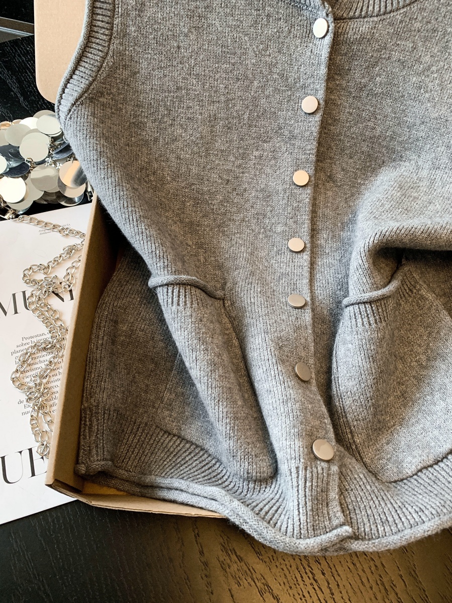 实拍~韩系温柔系卷边金属扣气质百搭针织马甲女2026春季叠穿马甲