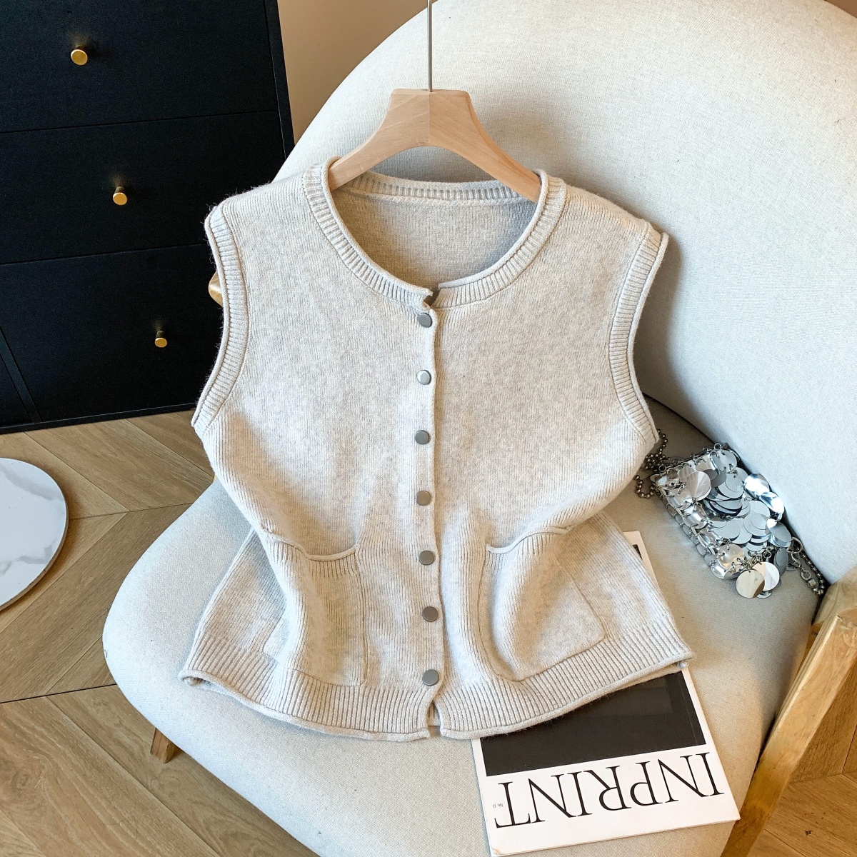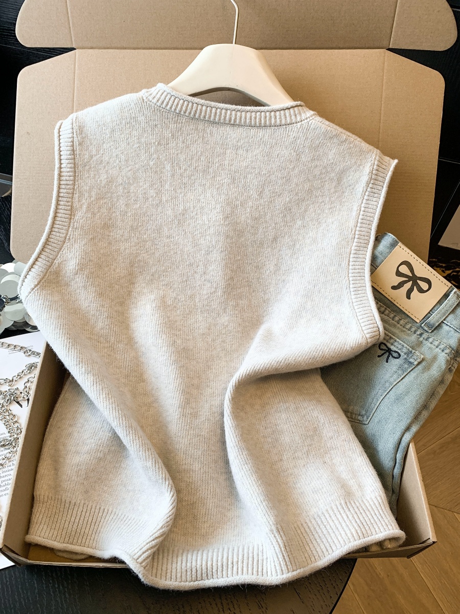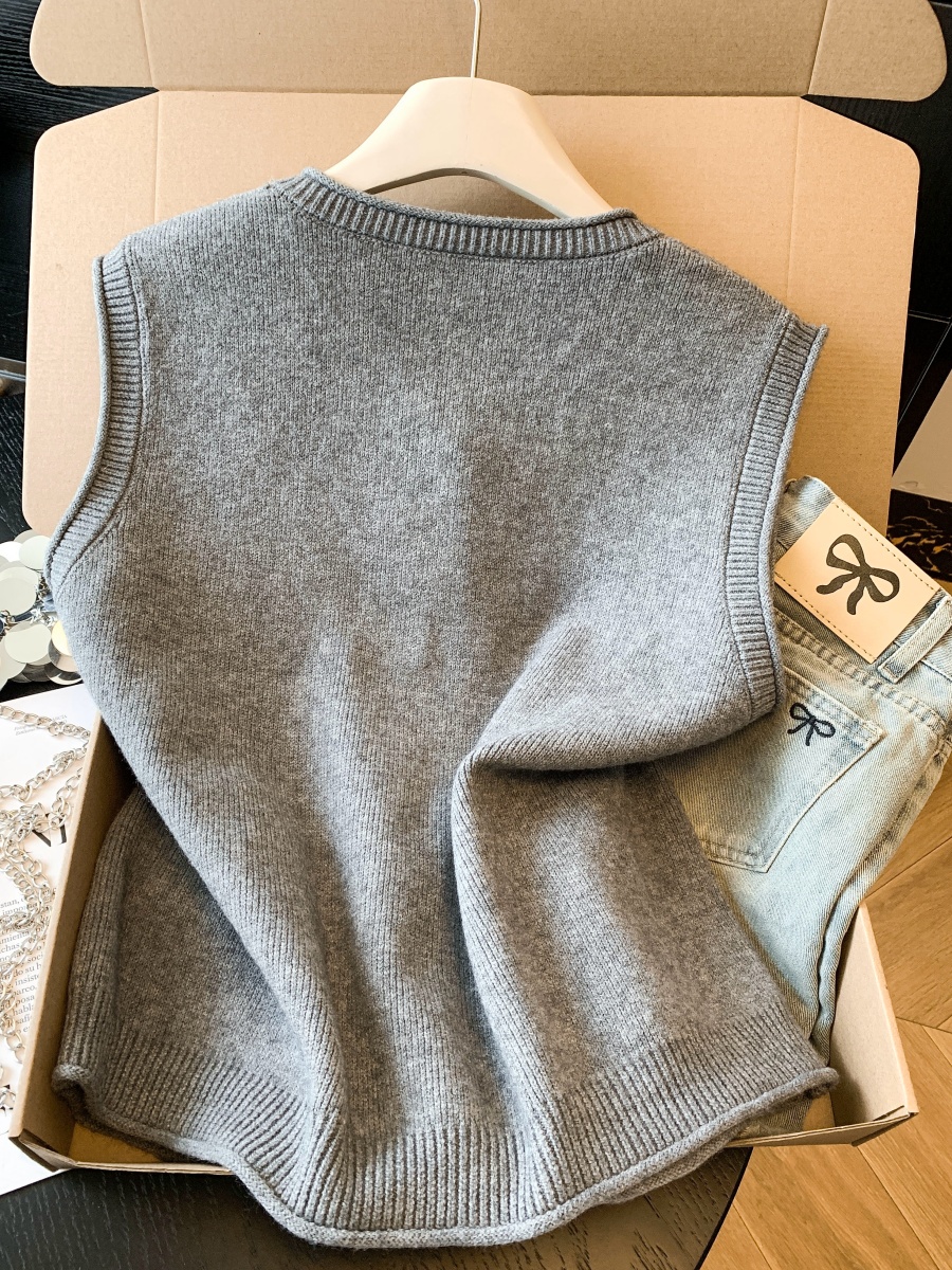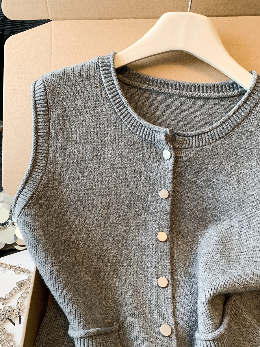 实拍~韩系温柔系卷边金属扣气质百搭针织马甲女2026春季叠穿马甲