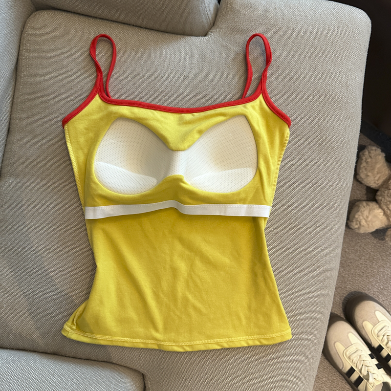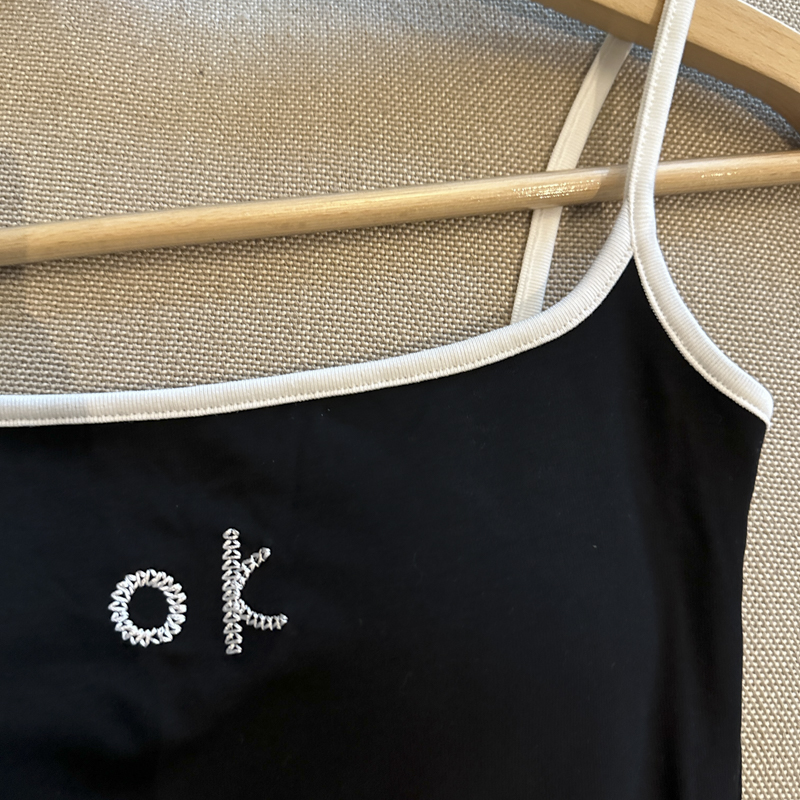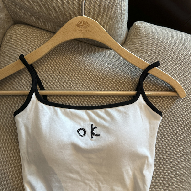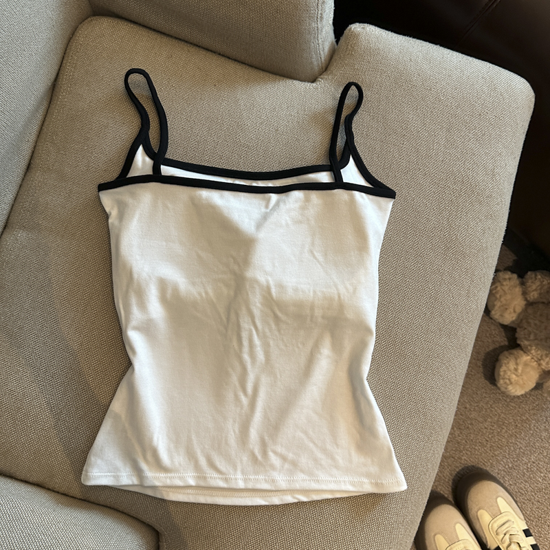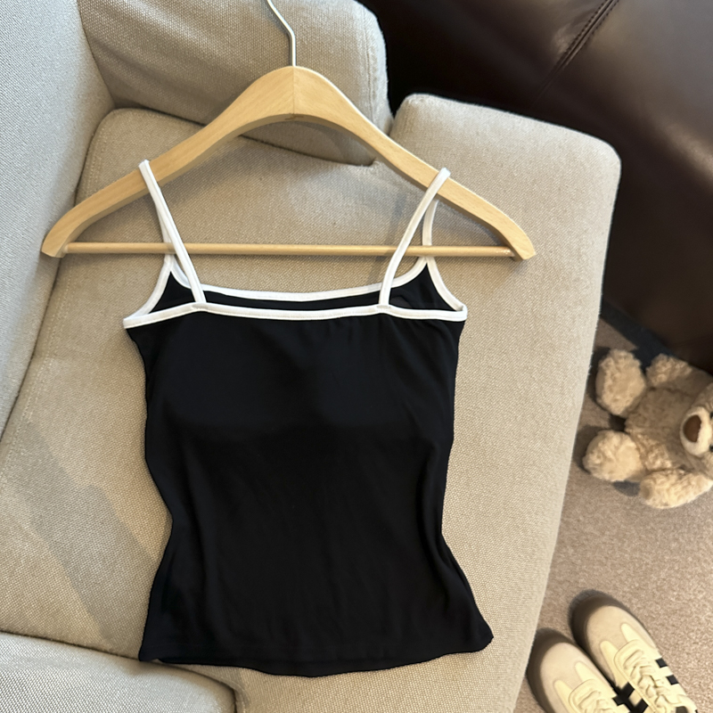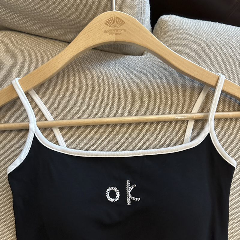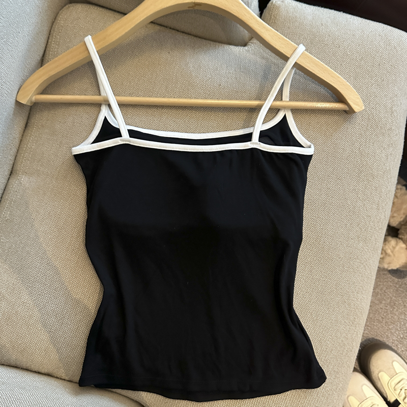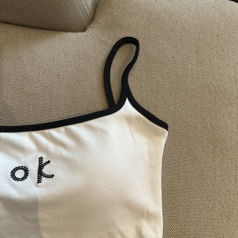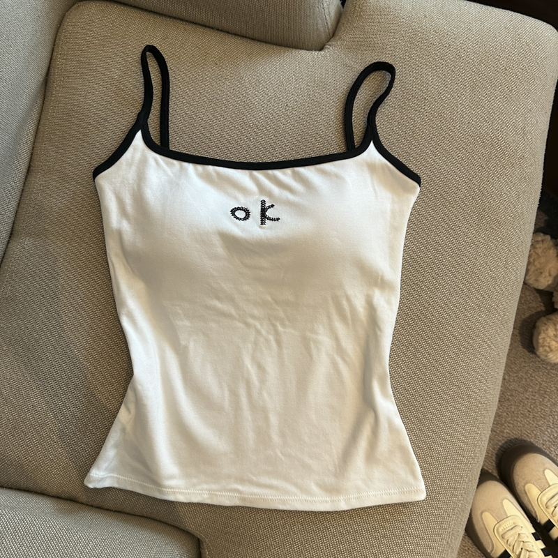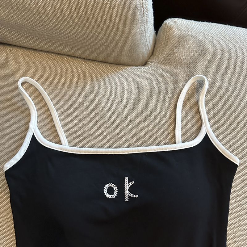 实拍 辣妹撞色拼接吊带背心女带胸垫字母绣花修身显瘦短款上衣