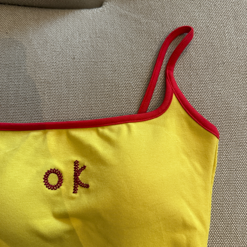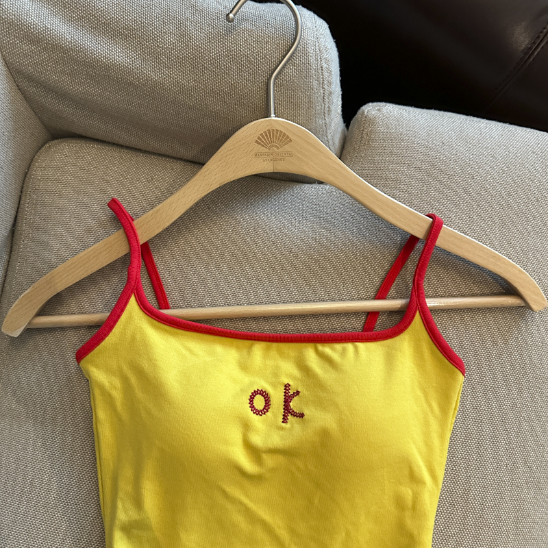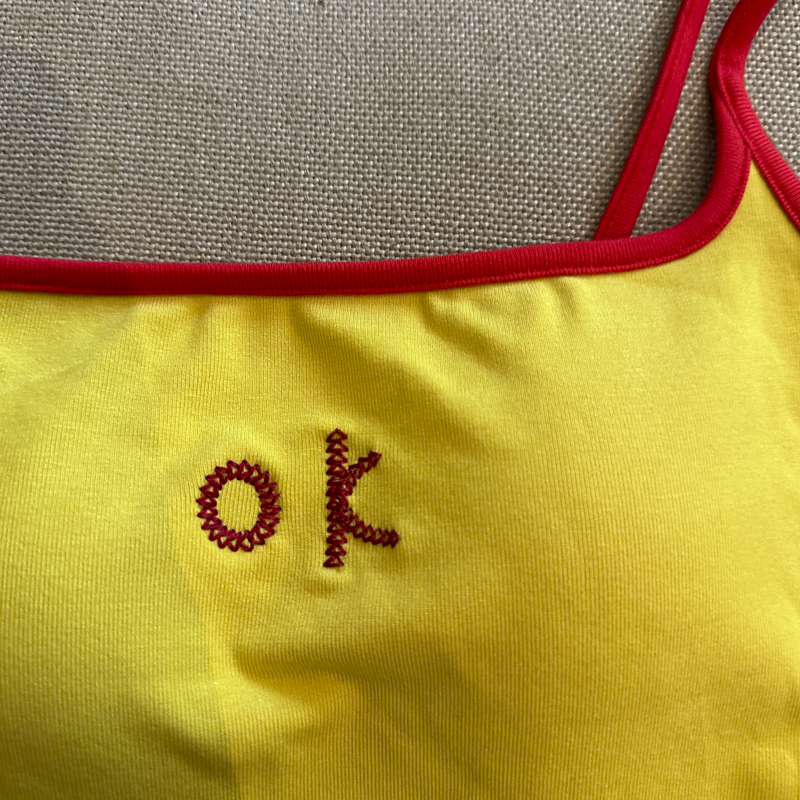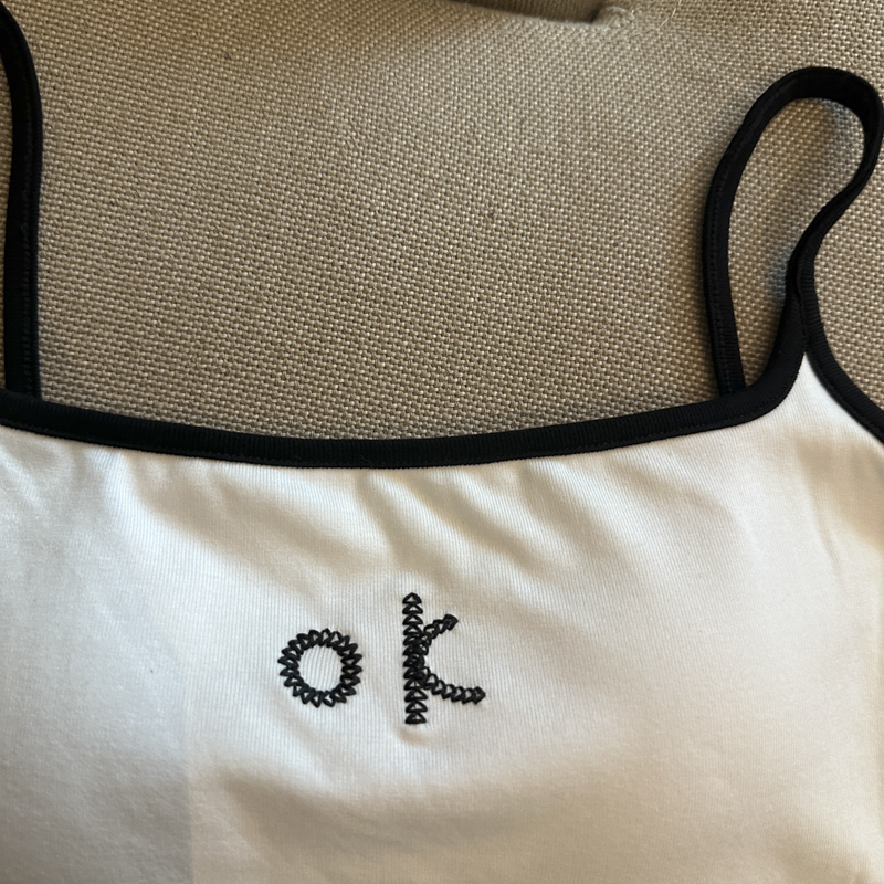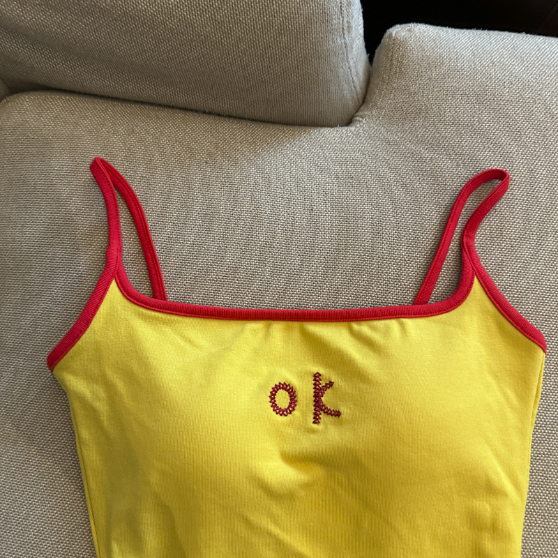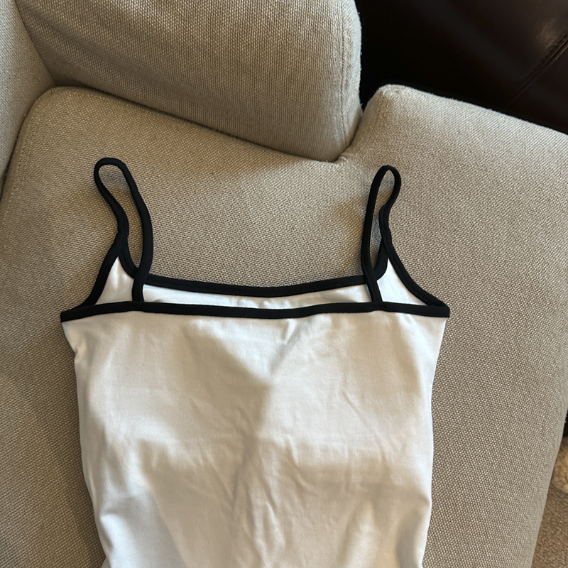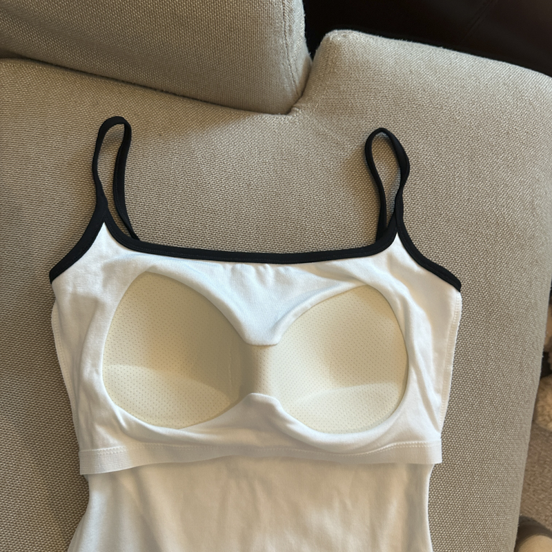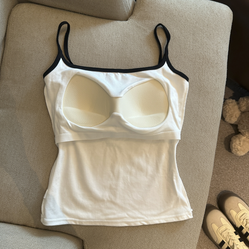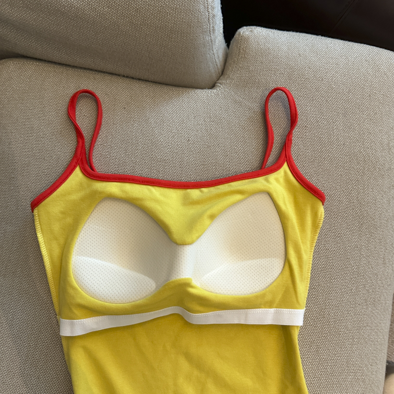 实拍 辣妹撞色拼接吊带背心女带胸垫字母绣花修身显瘦短款上衣
