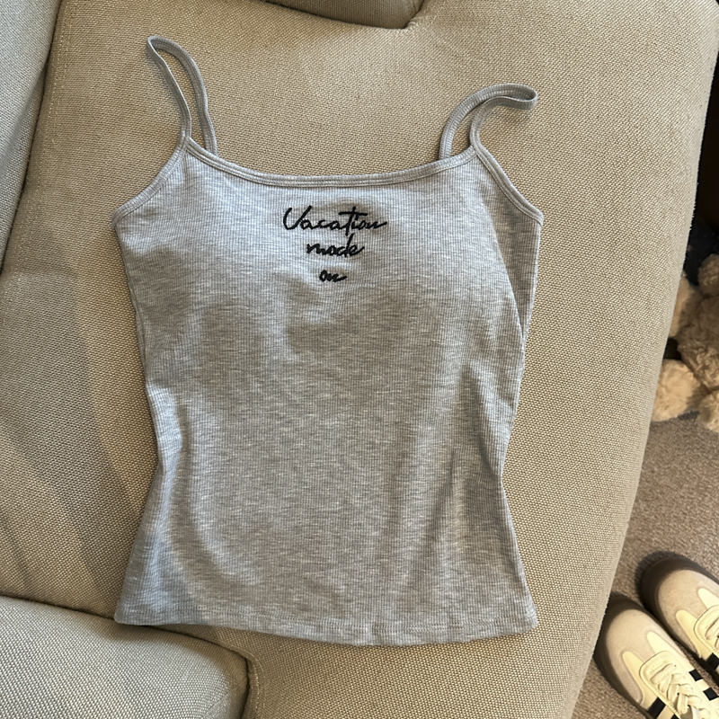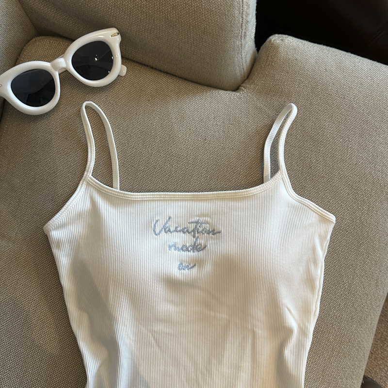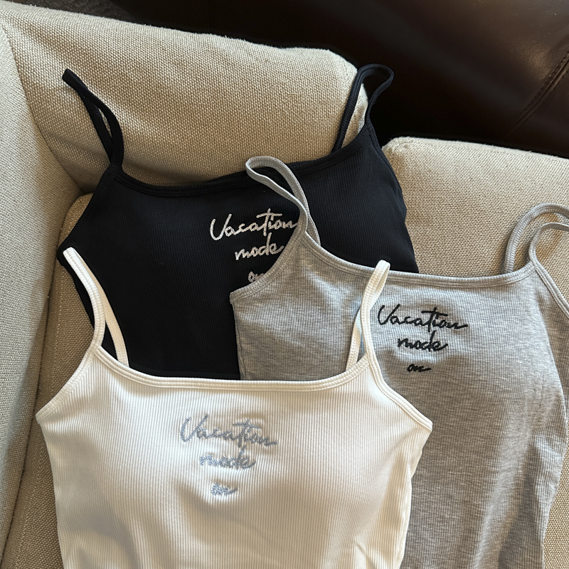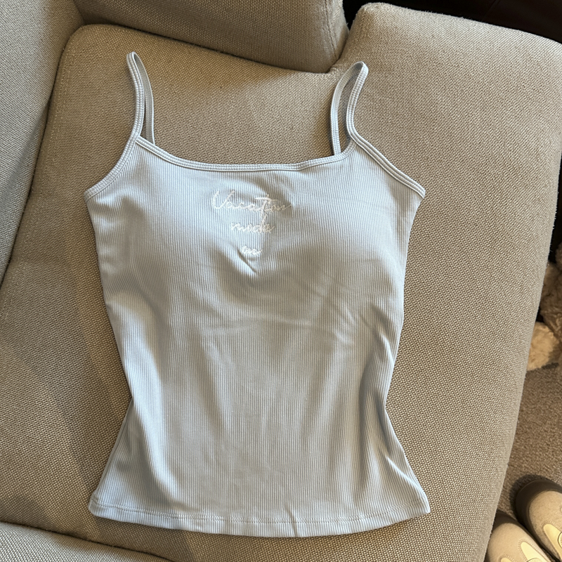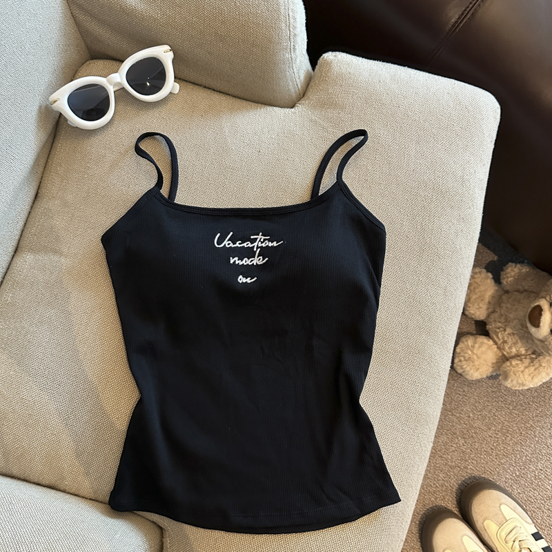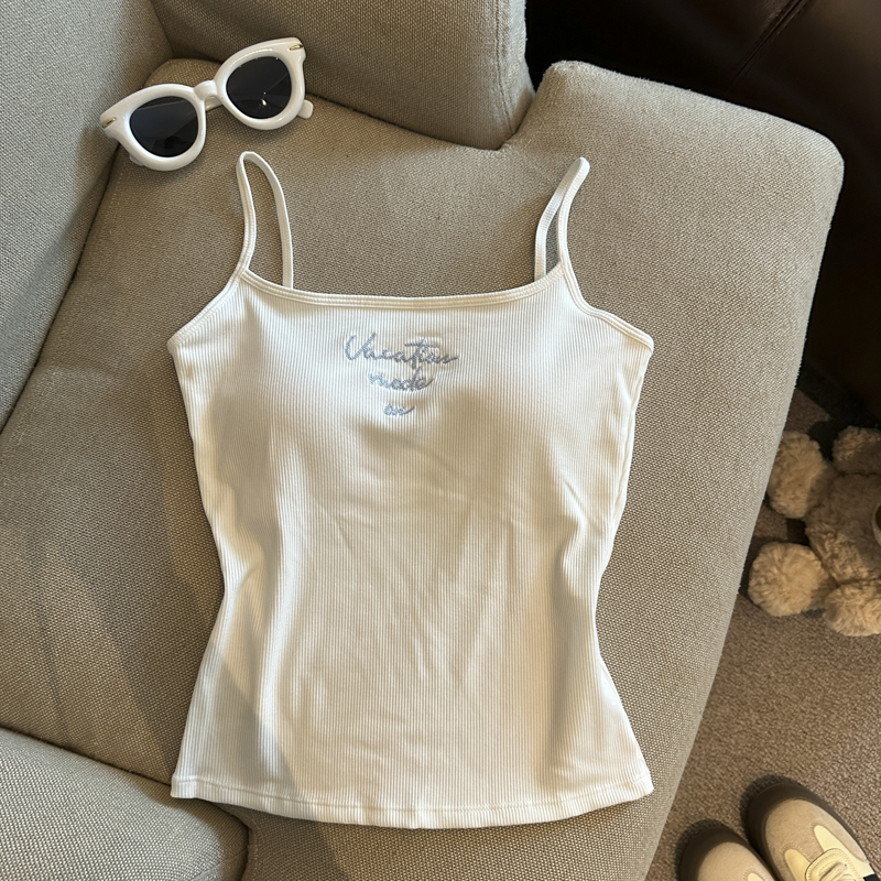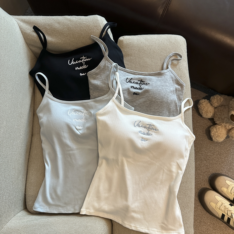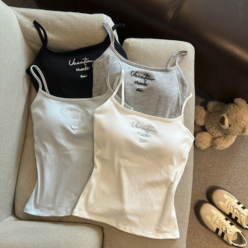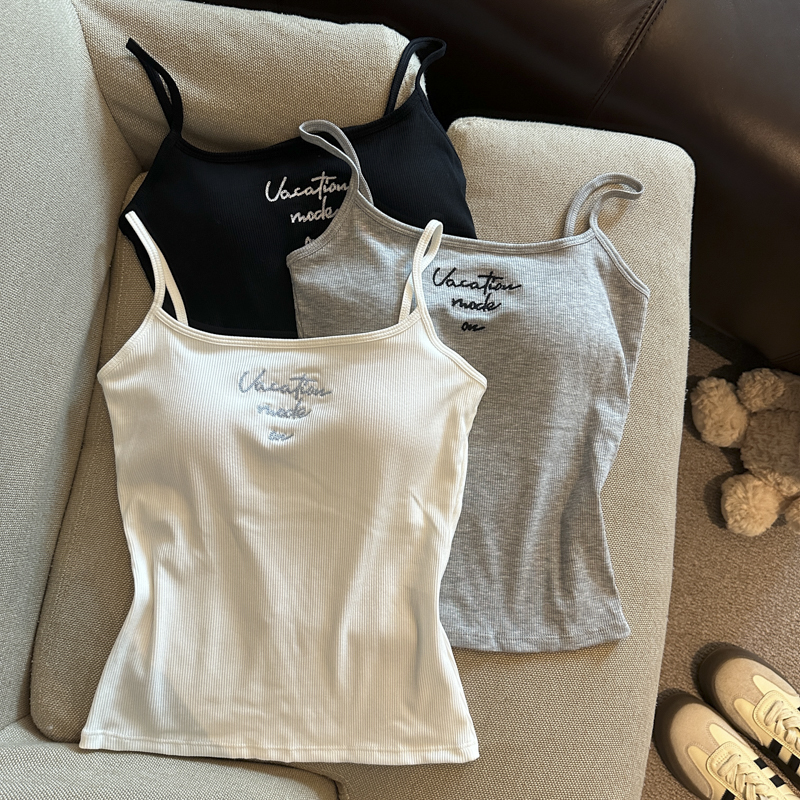 实拍 吊带背心女夏外穿2026新款高级感内搭带胸垫字母刺绣上衣