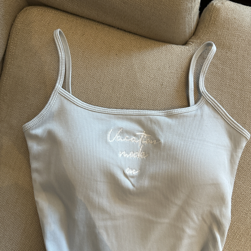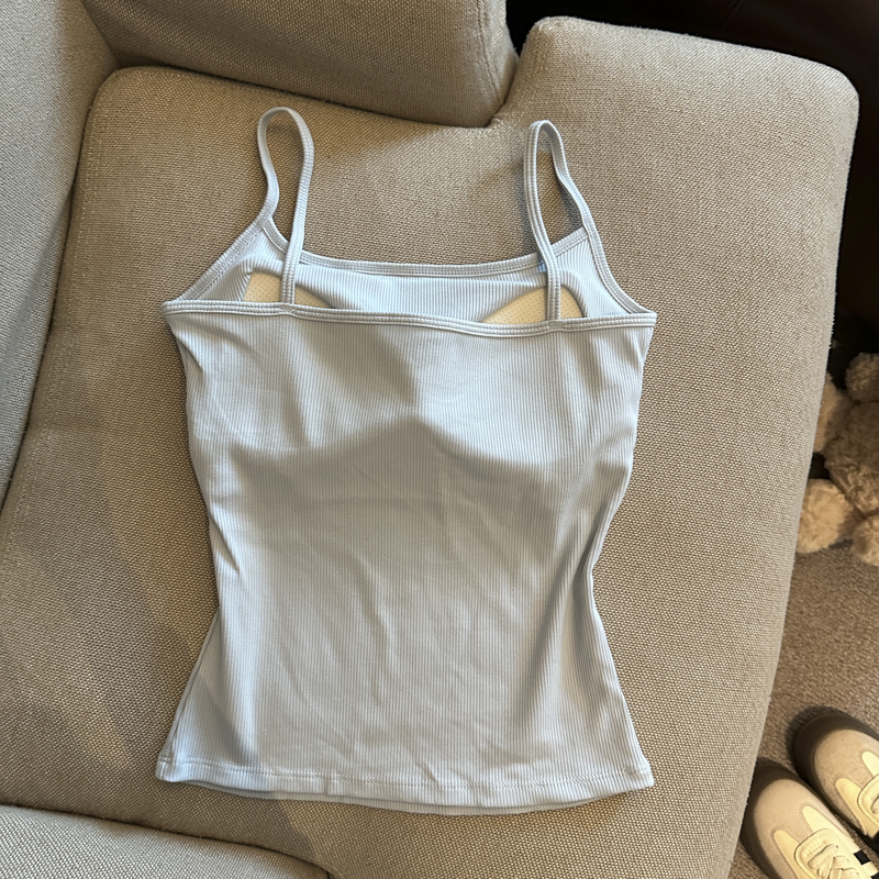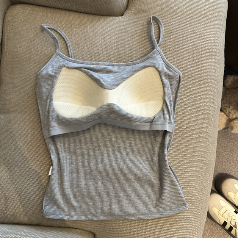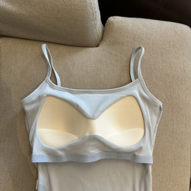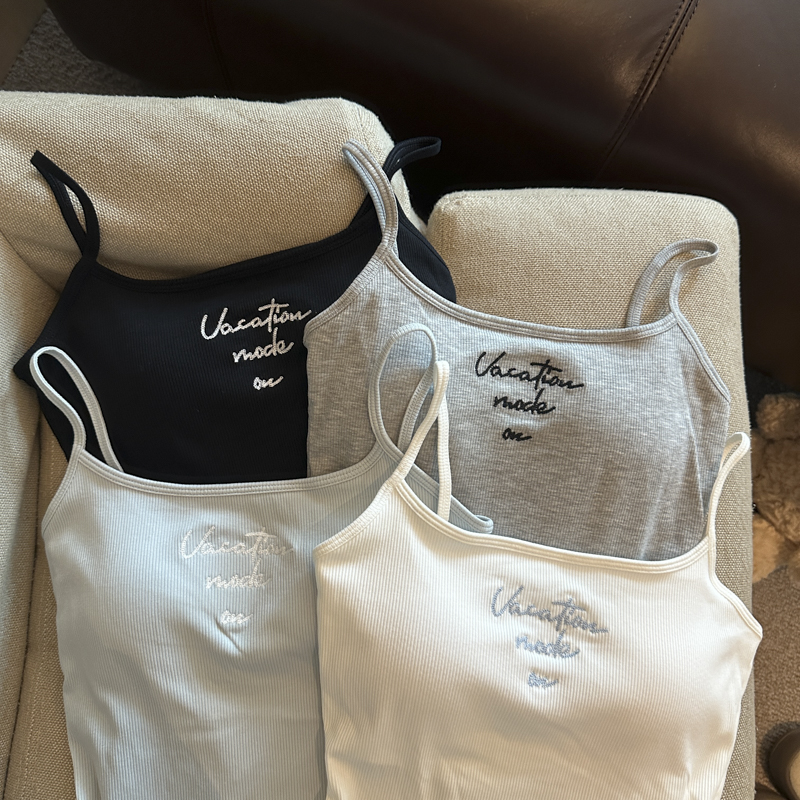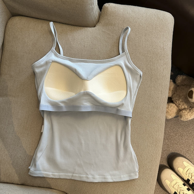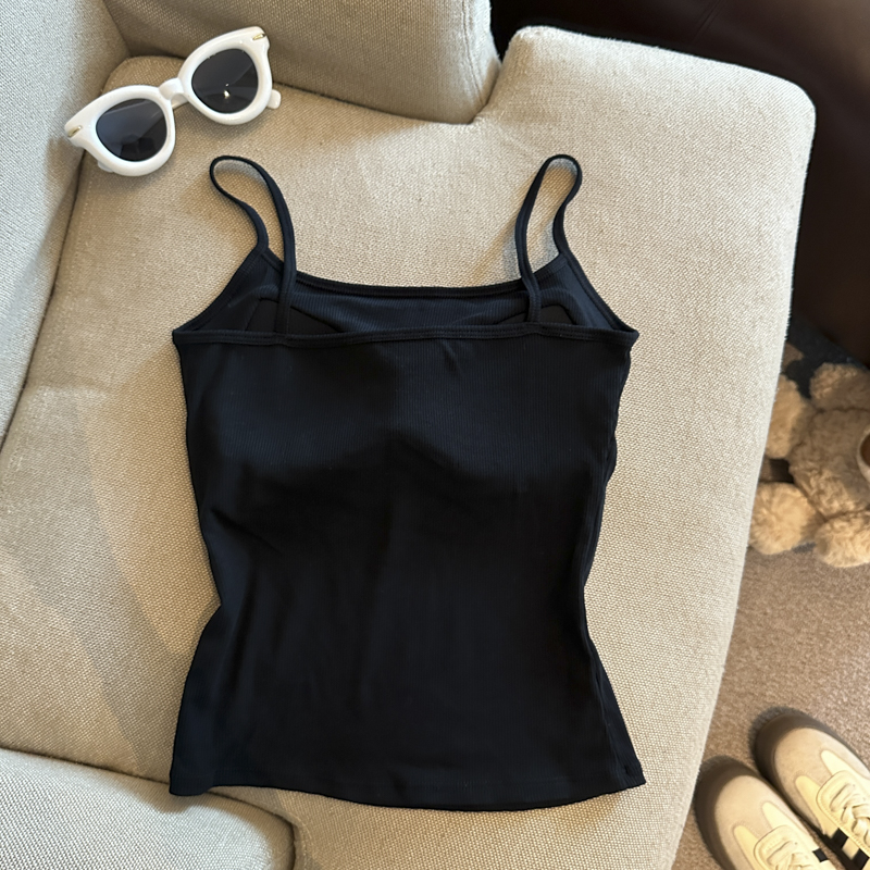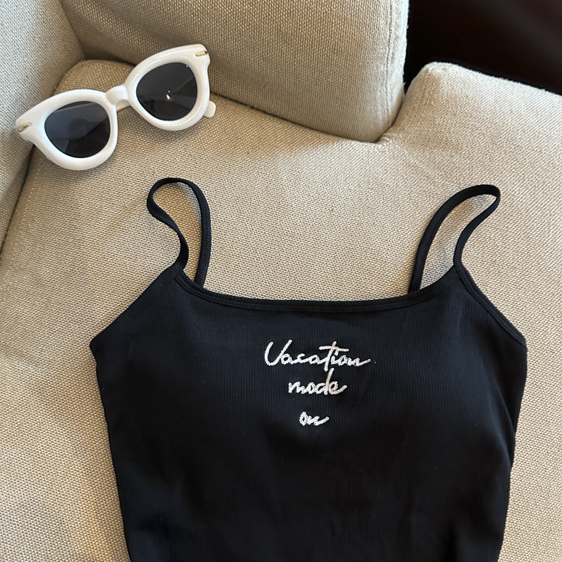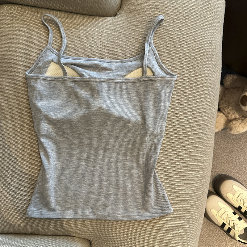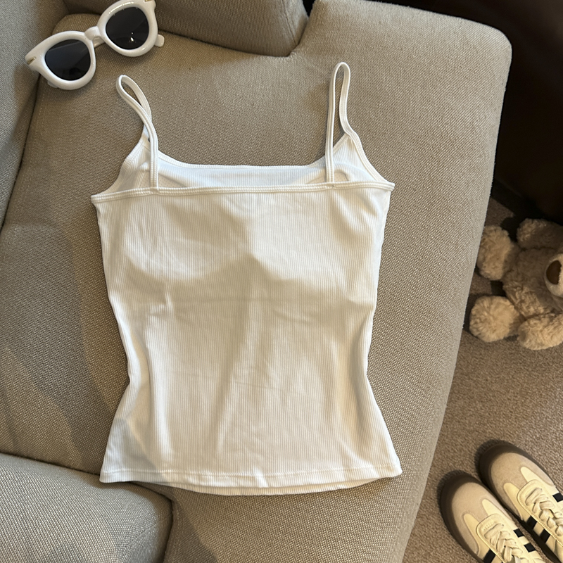 实拍 吊带背心女夏外穿2026新款高级感内搭带胸垫字母刺绣上衣