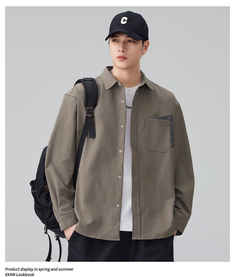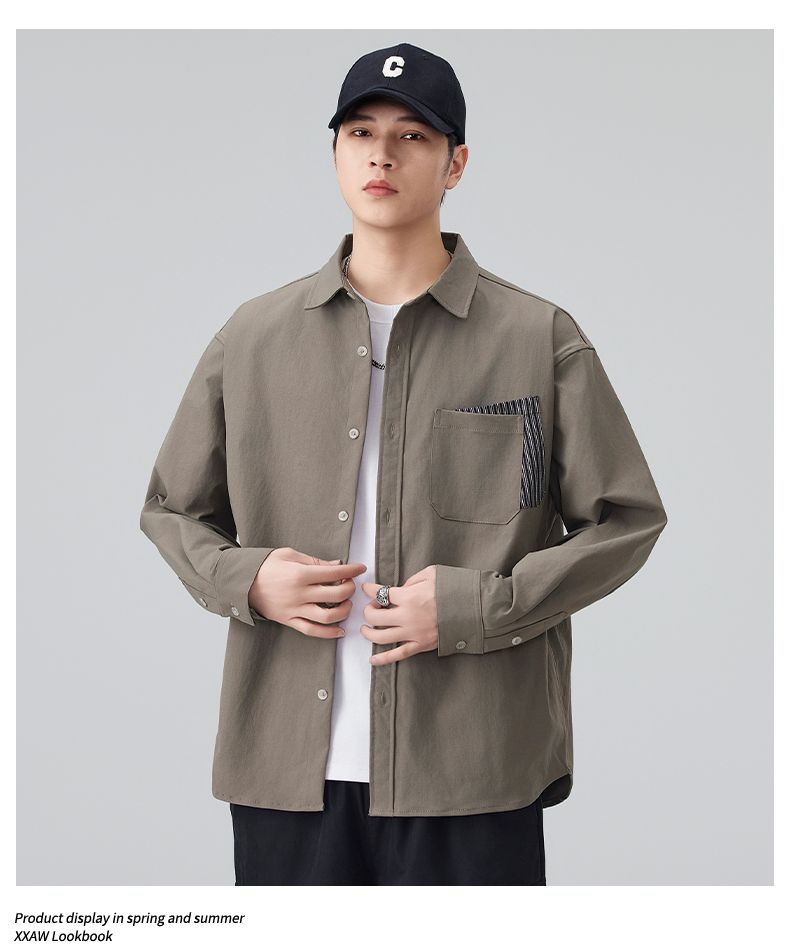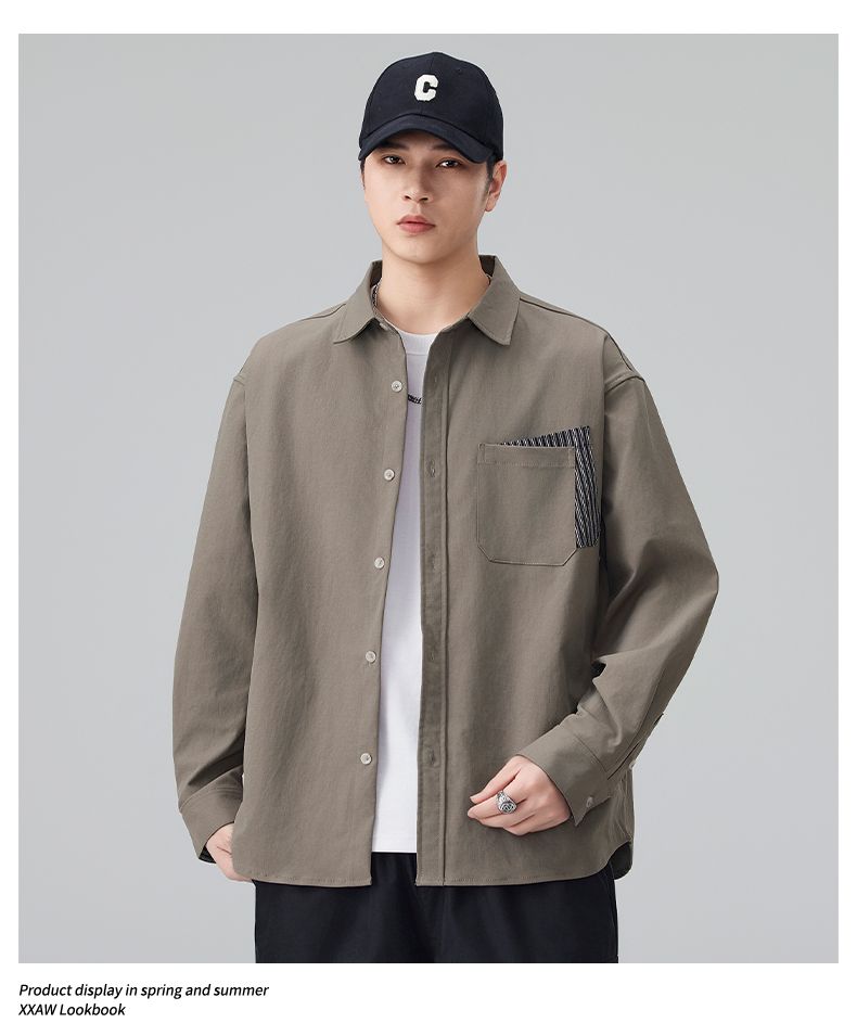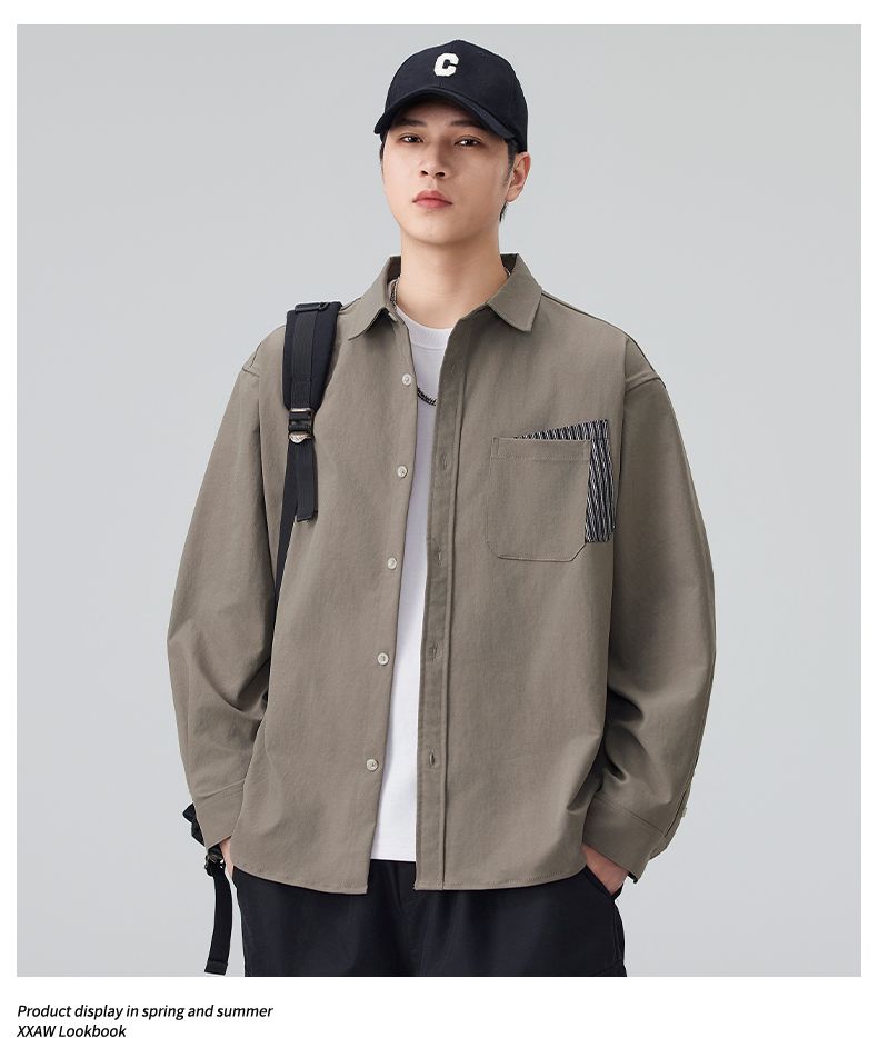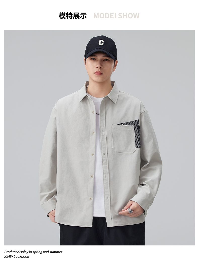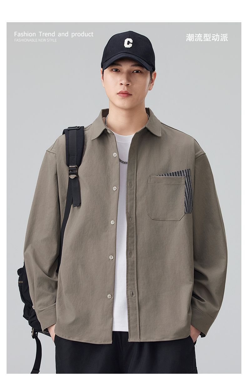 实拍2026新款长袖衬衫男士翻领工装宽松衬衣外套日系复古潮流时尚