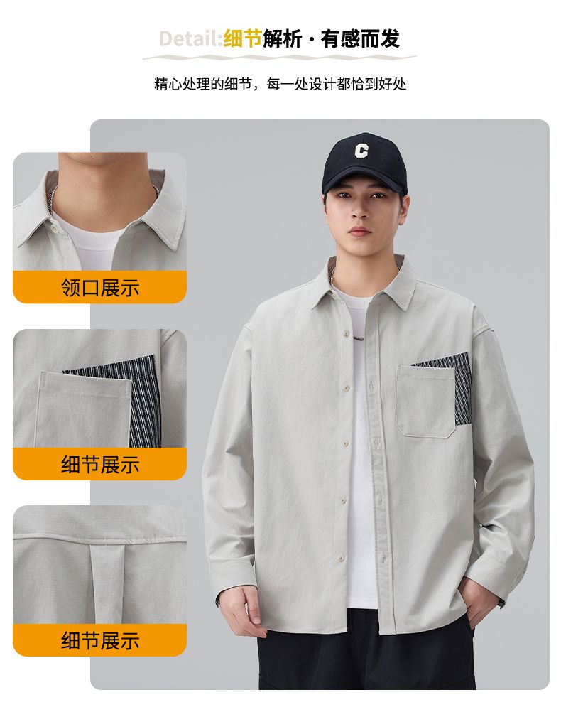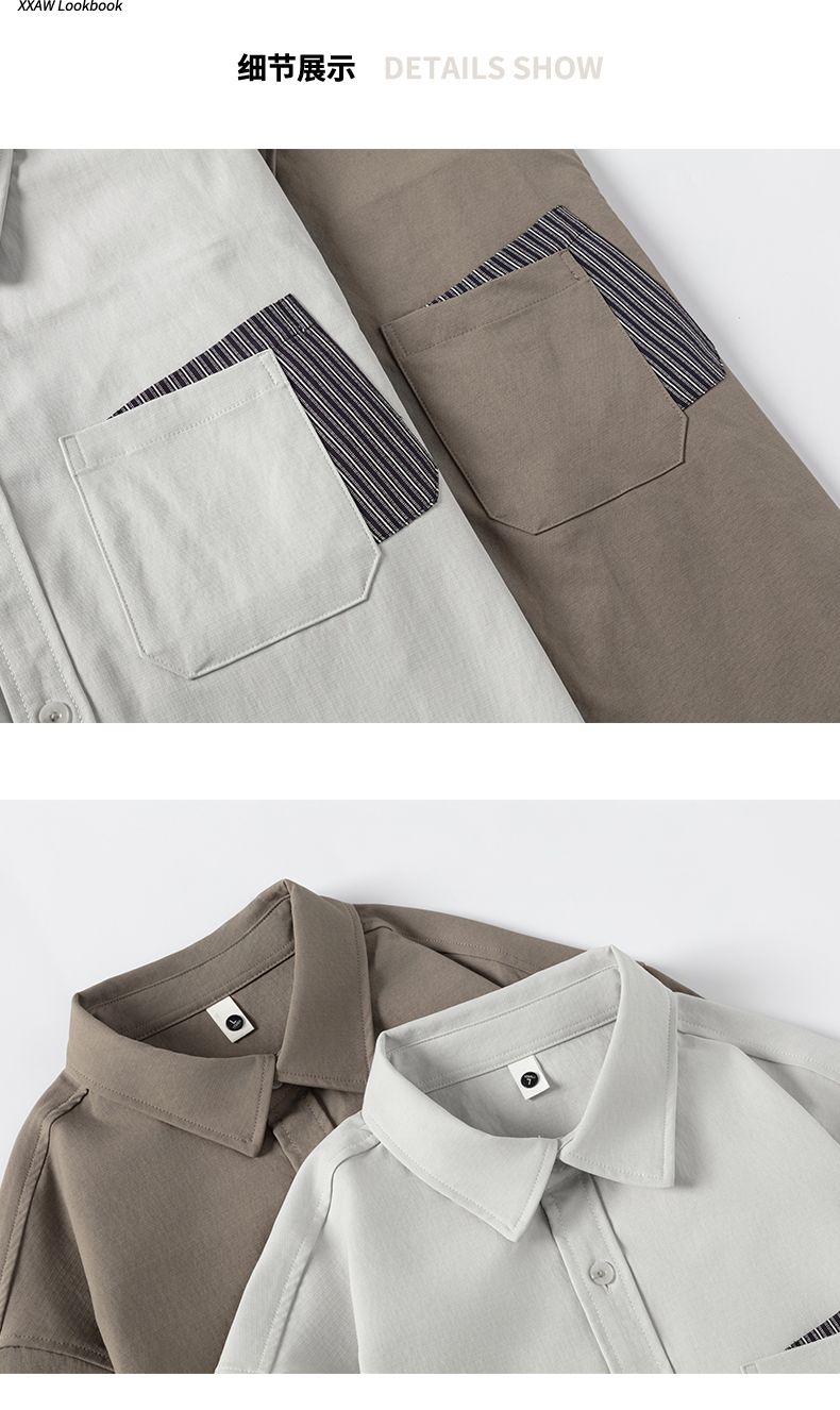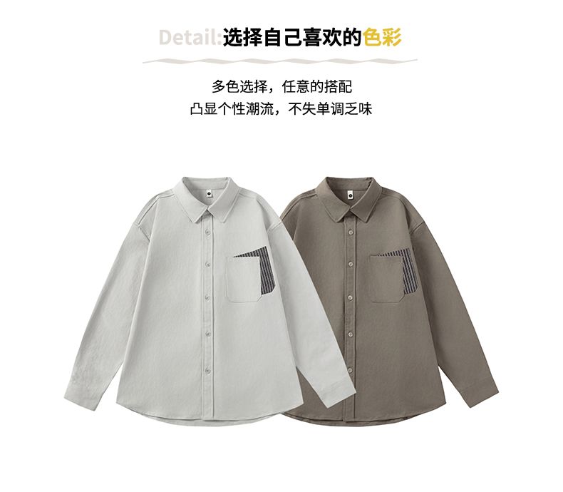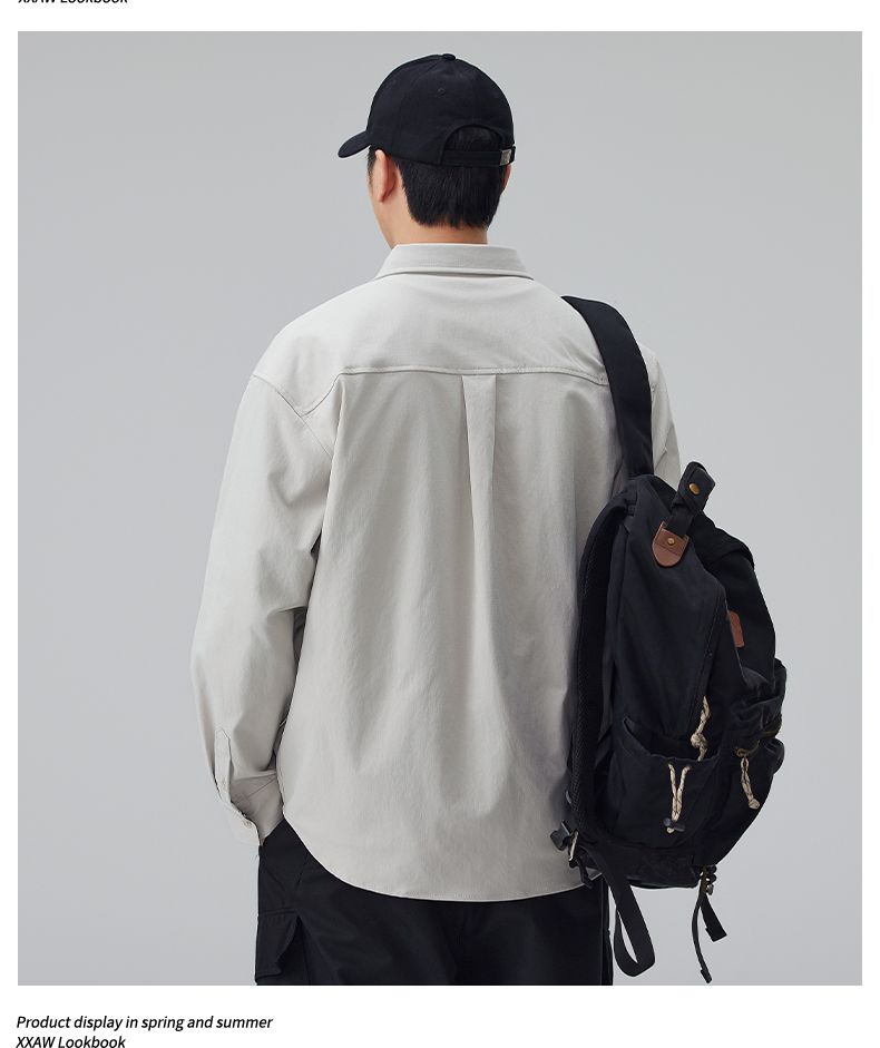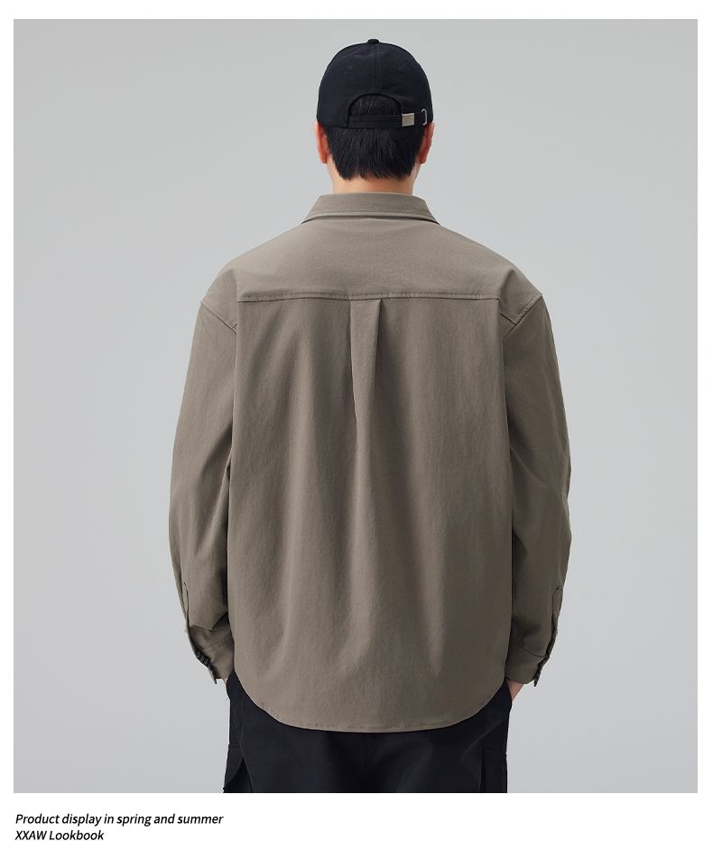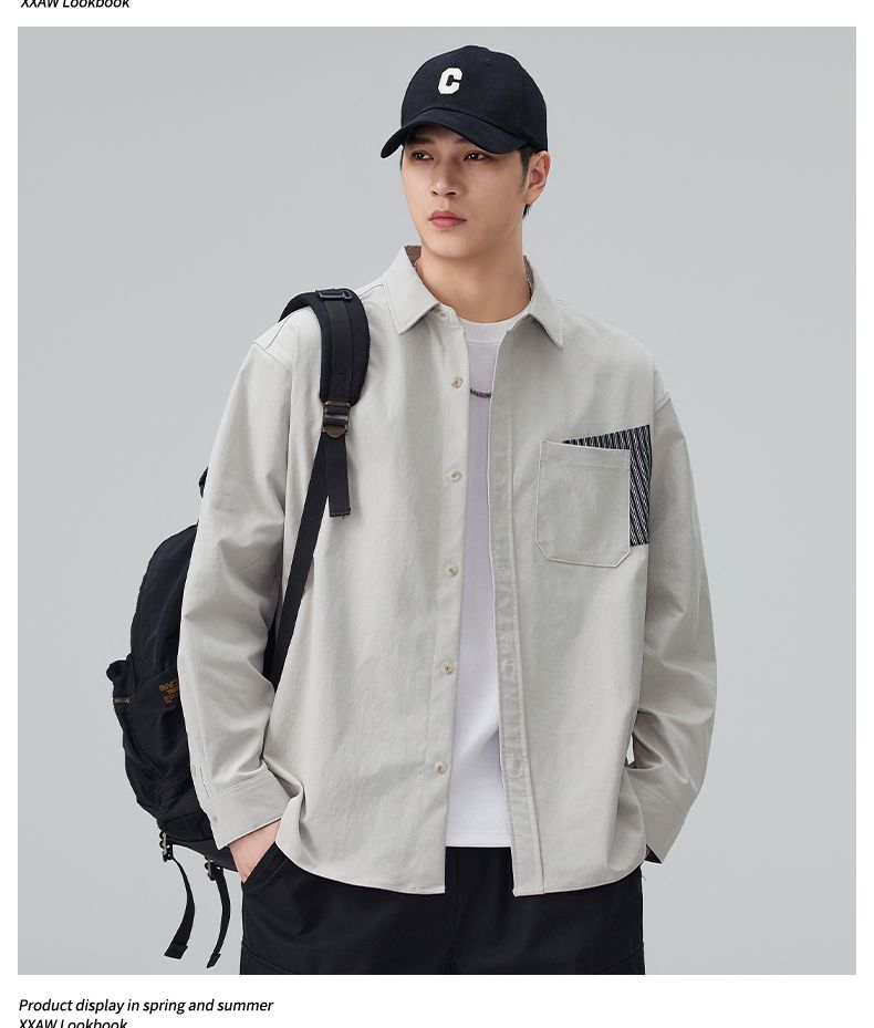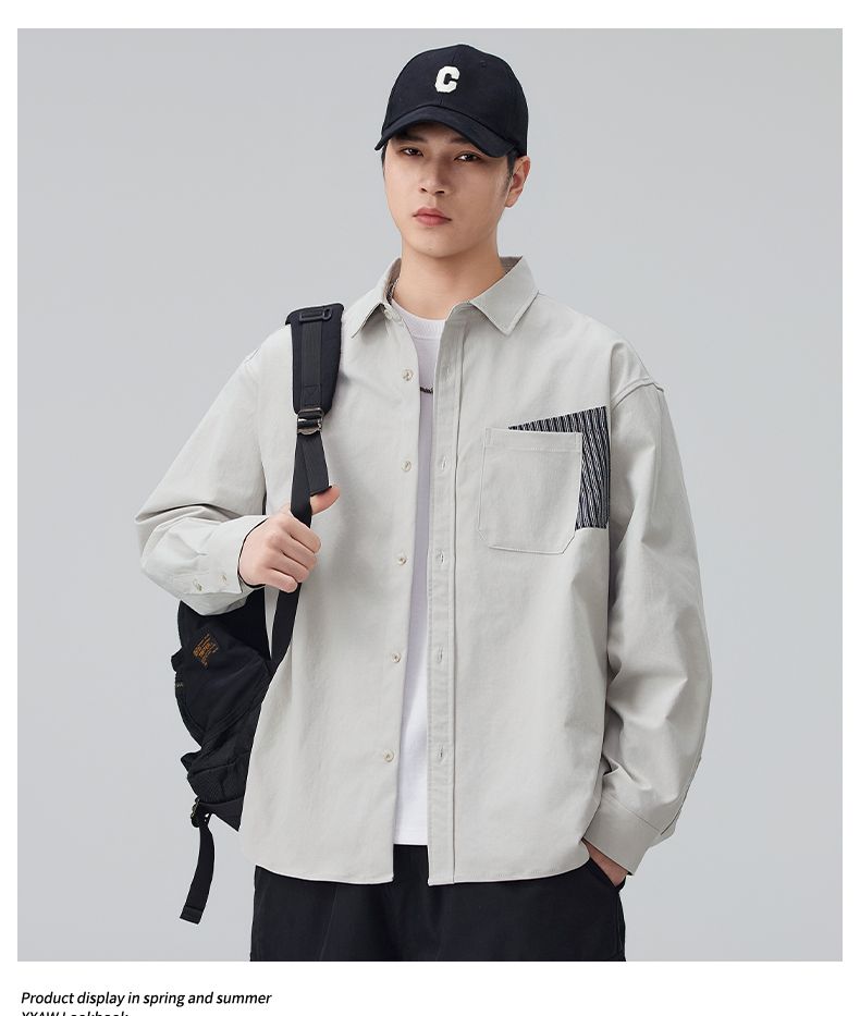 实拍2026新款长袖衬衫男士翻领工装宽松衬衣外套日系复古潮流时尚