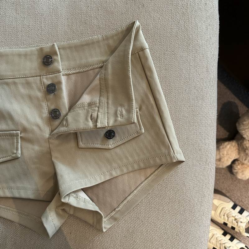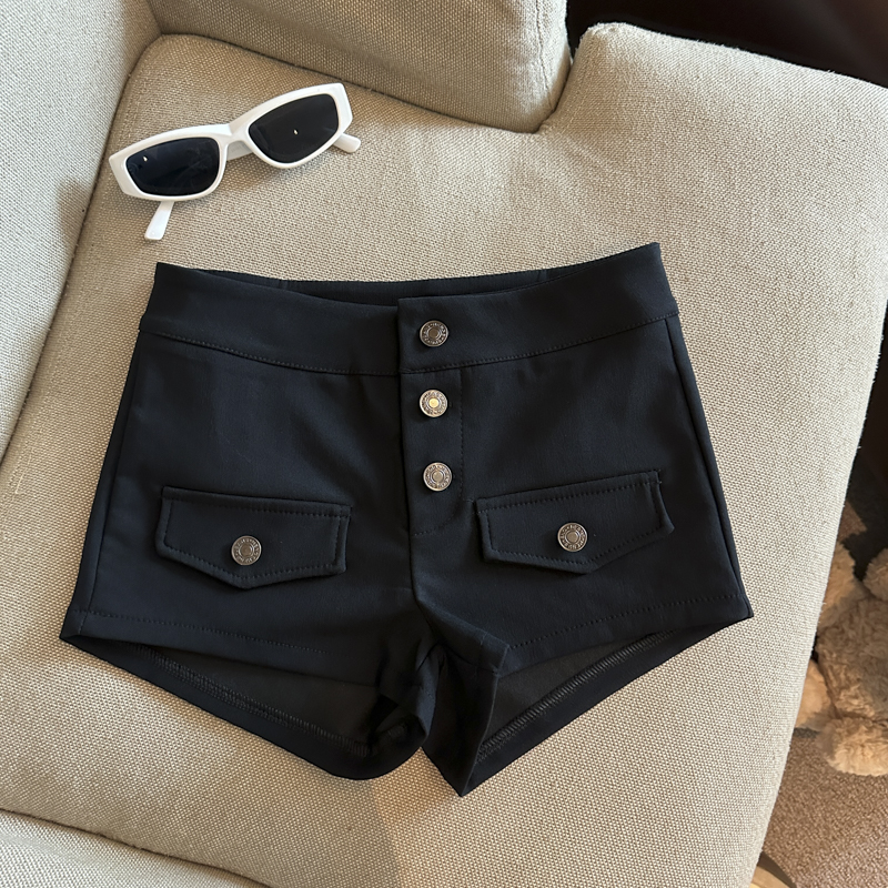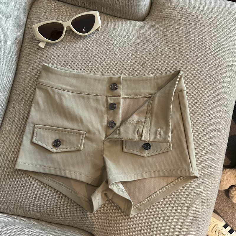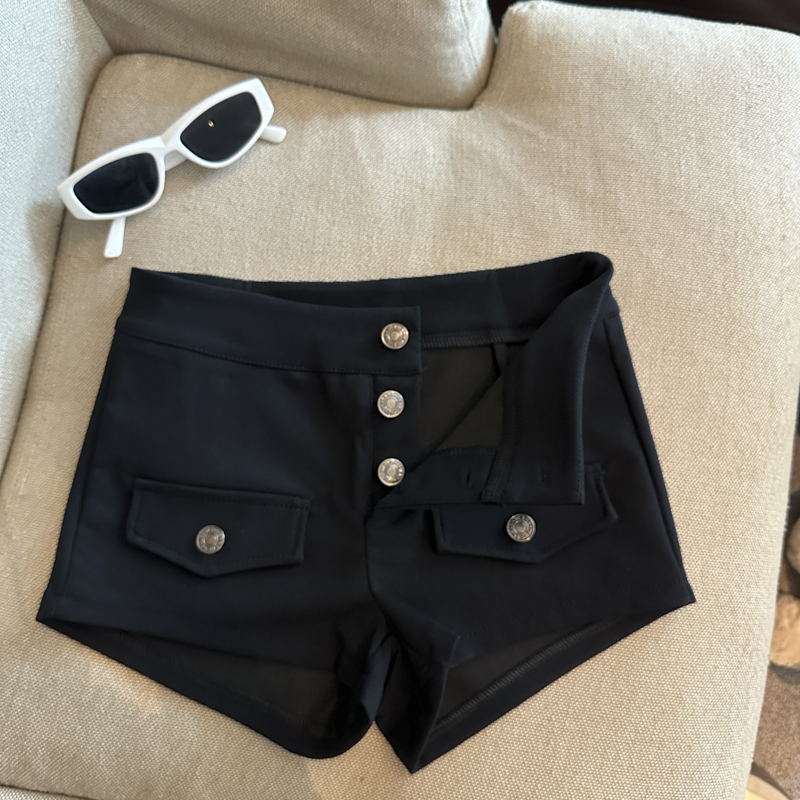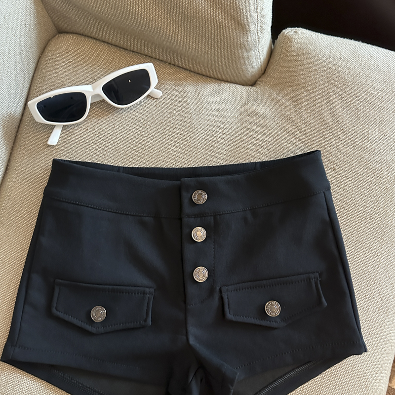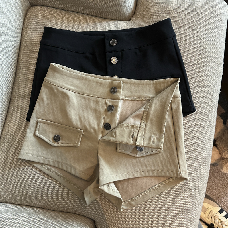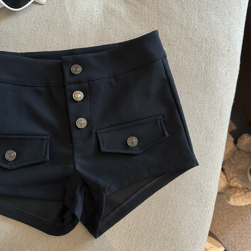 实拍 复古工装多排扣短裤女夏2026新款修身辣妹修身弹力包臀热裤