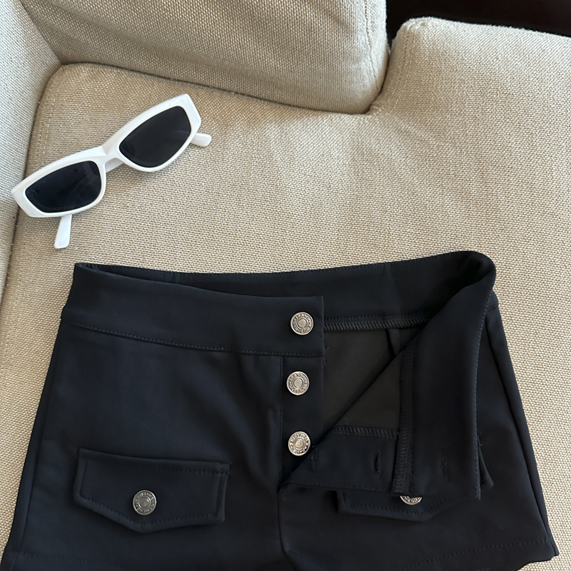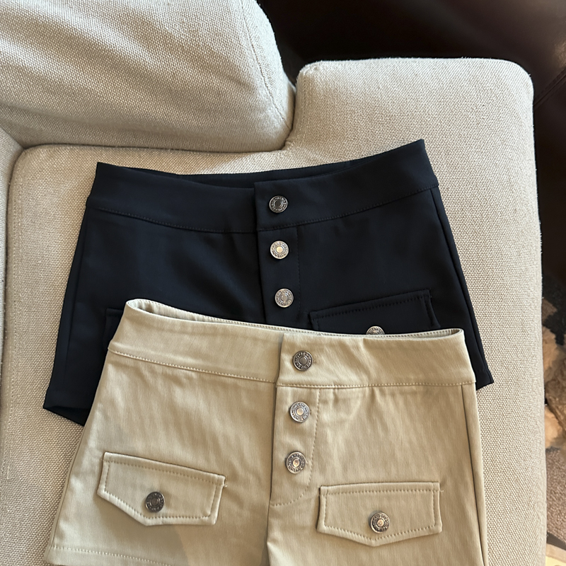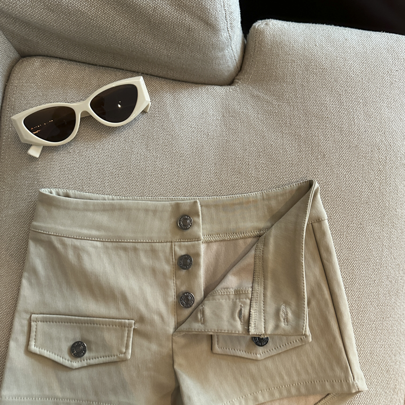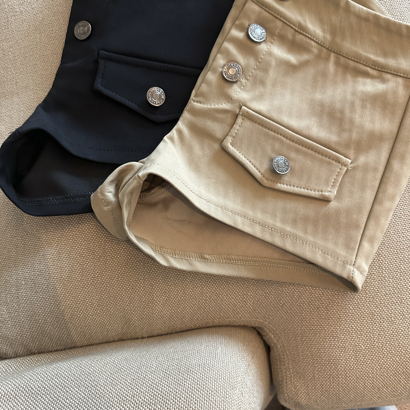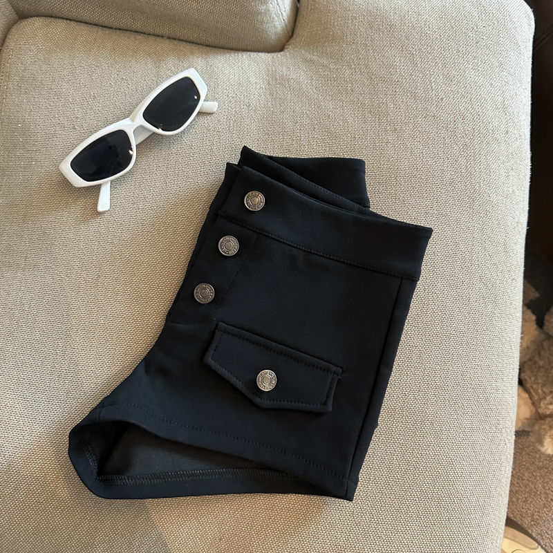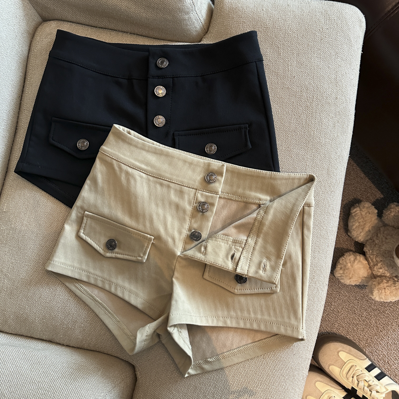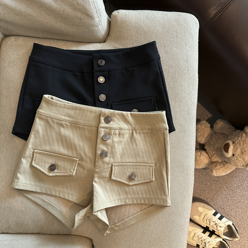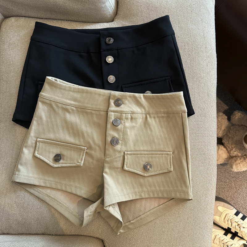实拍 复古工装多排扣短裤女夏2026新款修身辣妹修身弹力包臀热裤