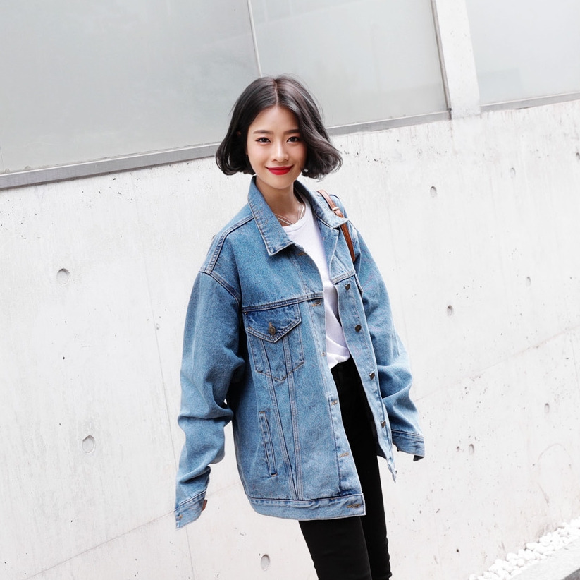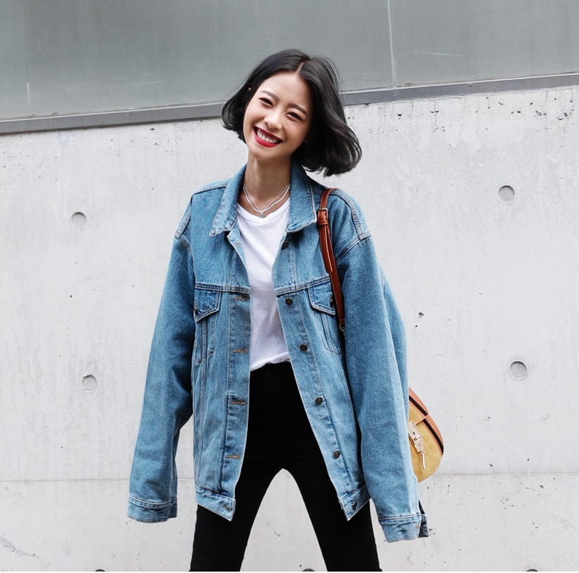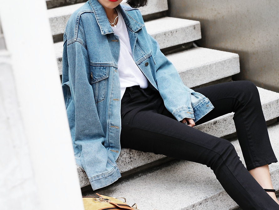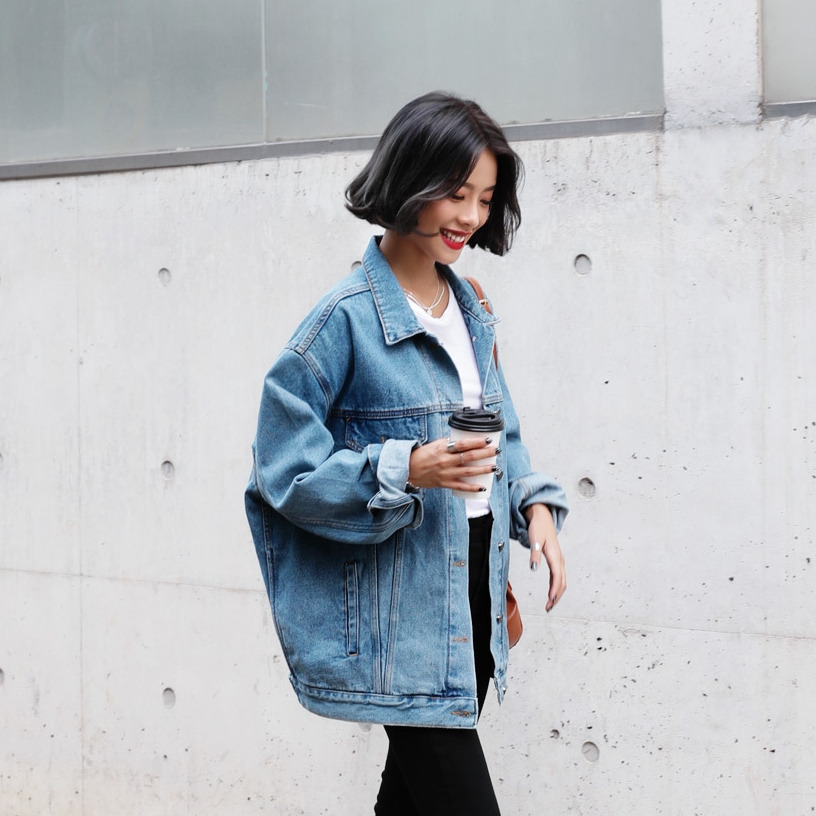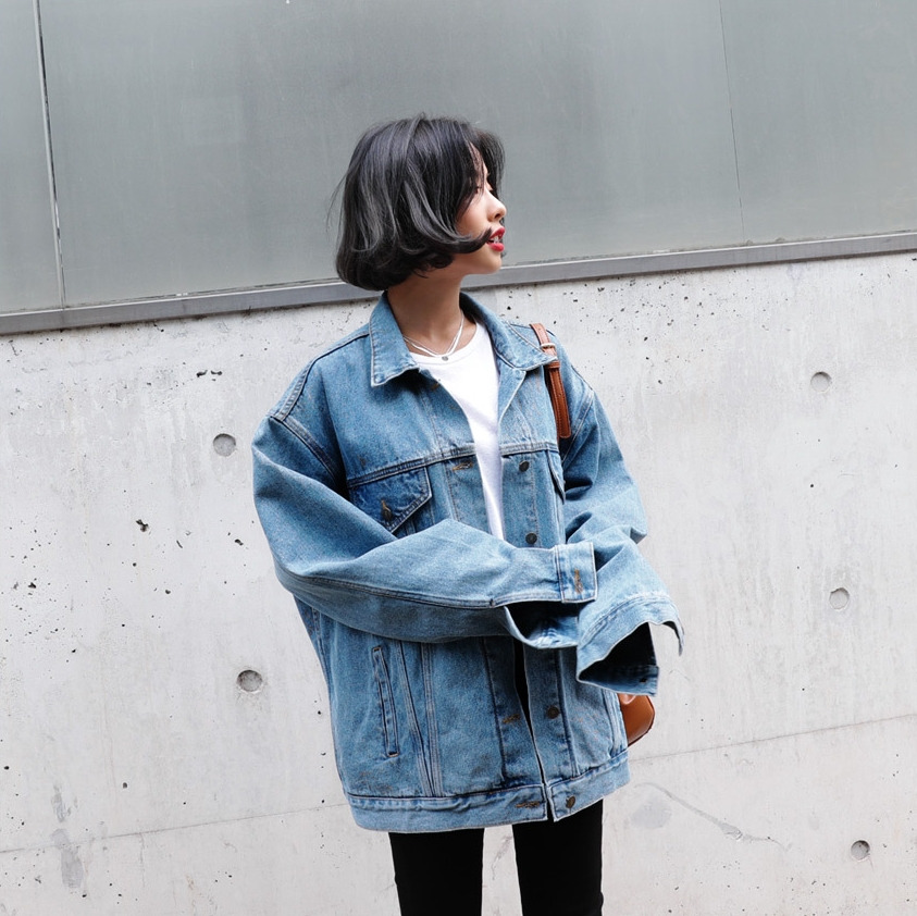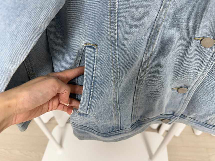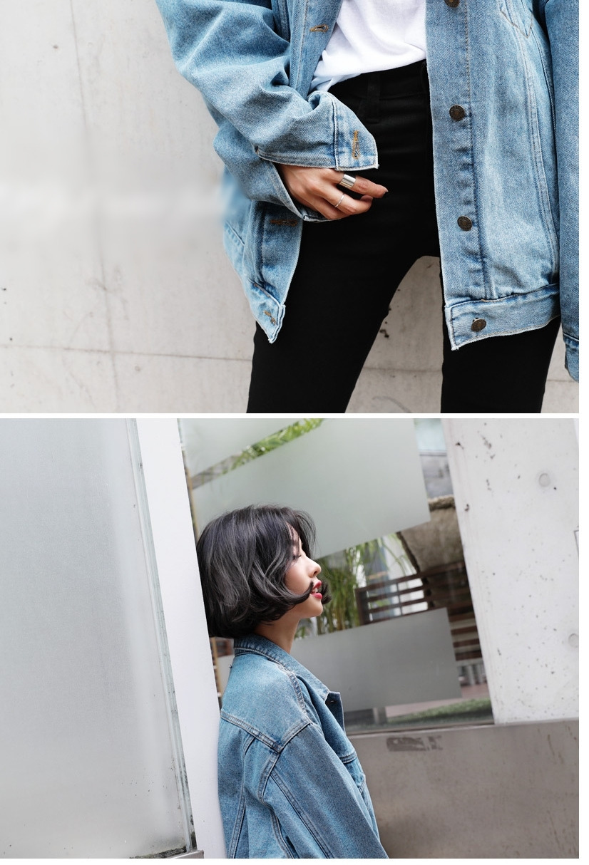 現 复古水洗淺藍色经典宽松做旧牛仔外套
