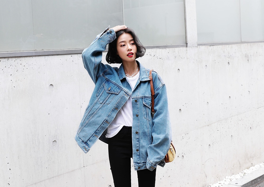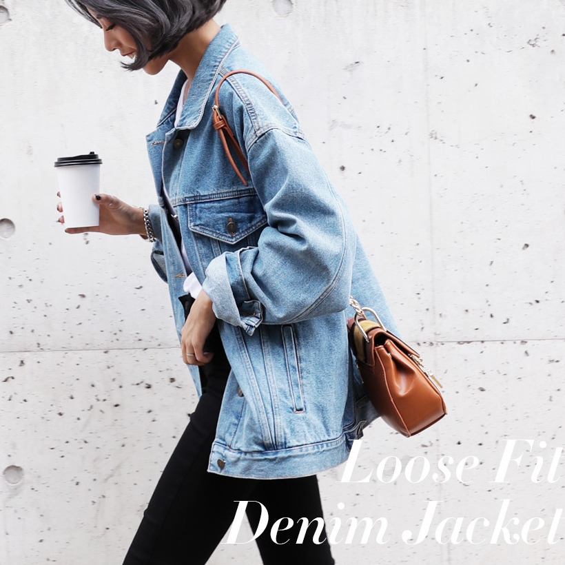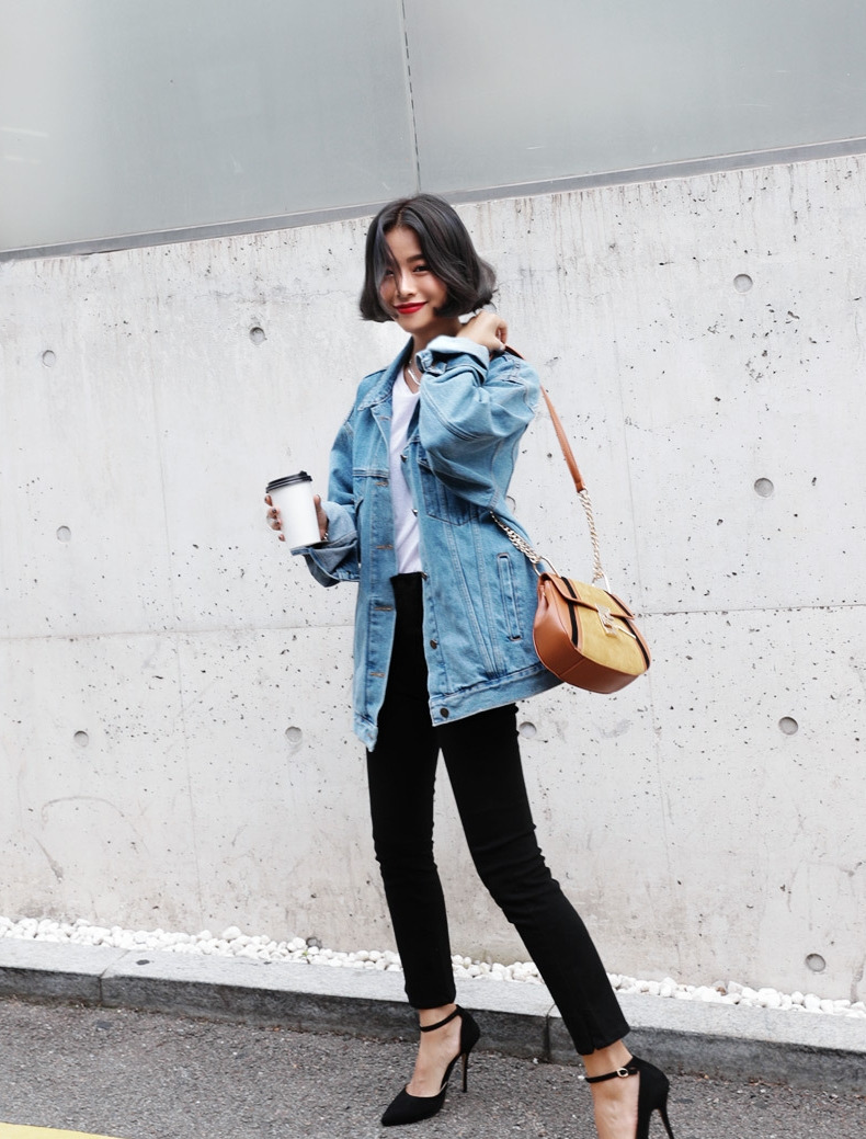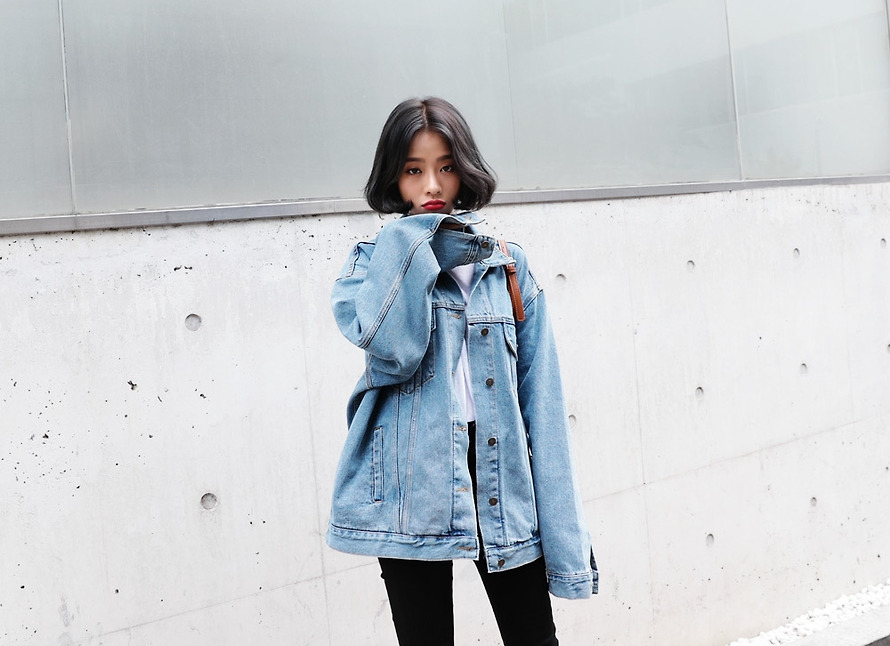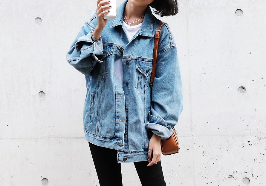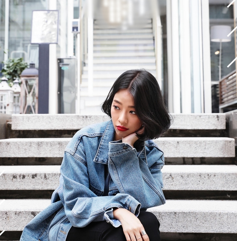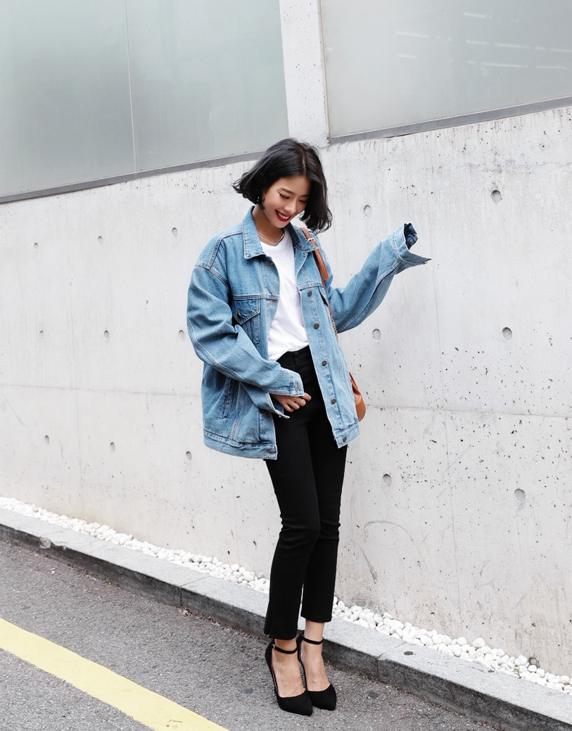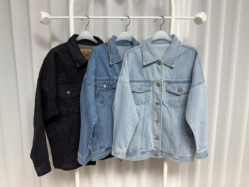 現 复古水洗淺藍色经典宽松做旧牛仔外套