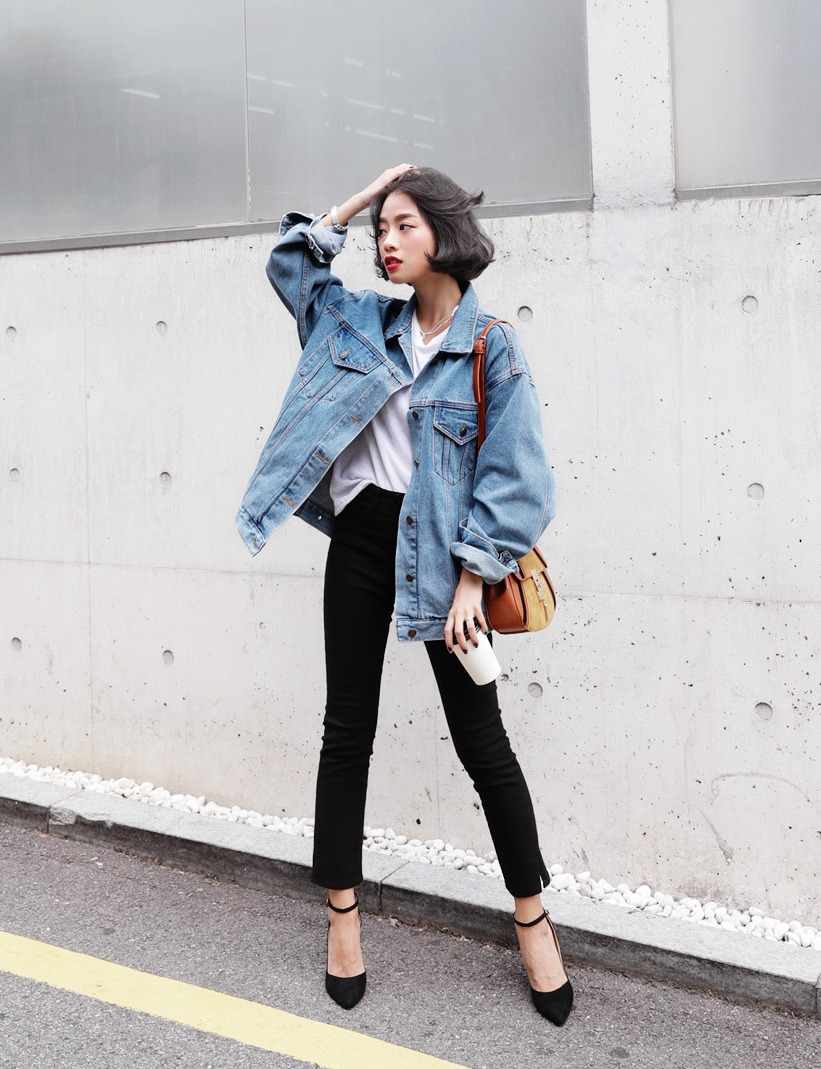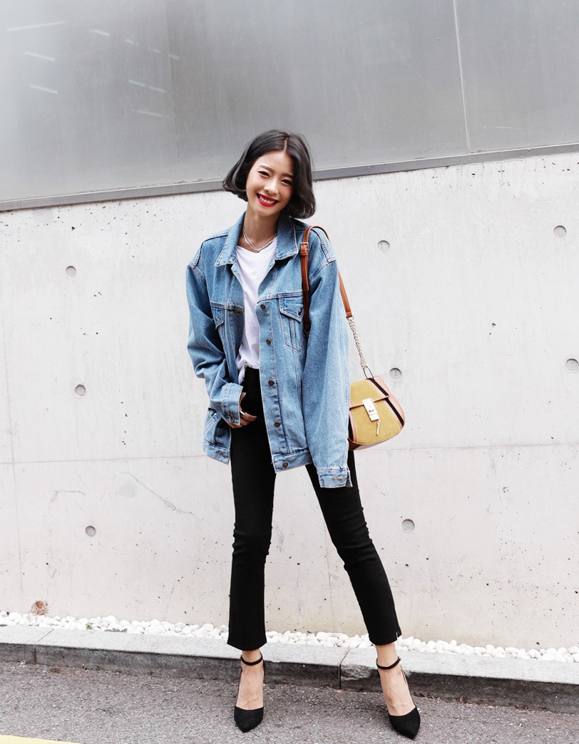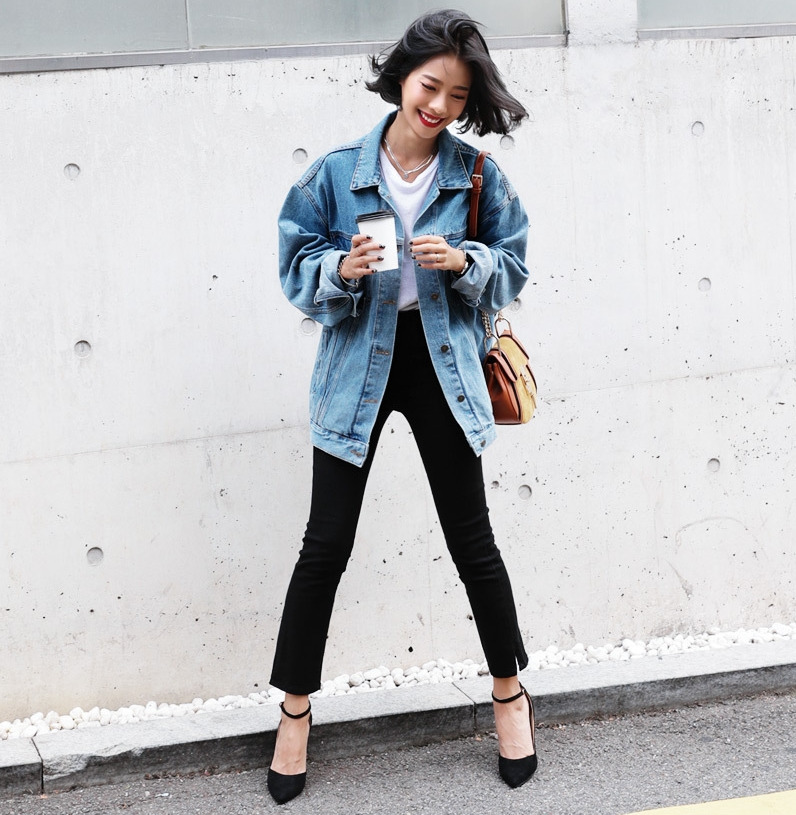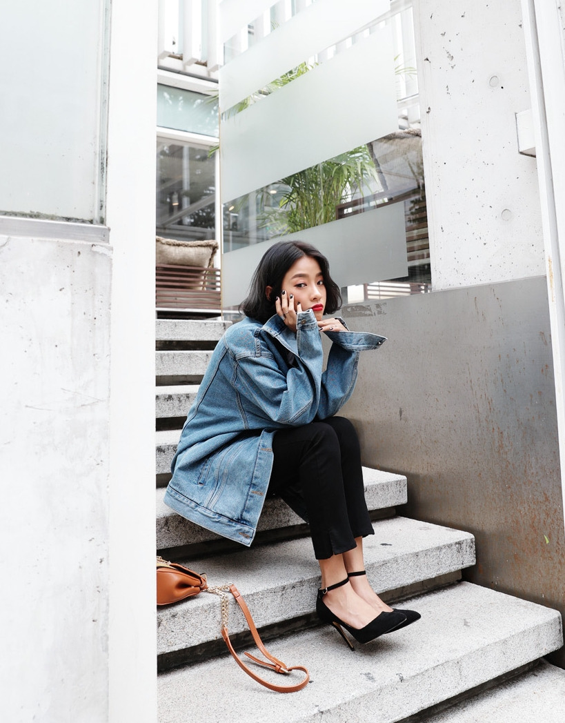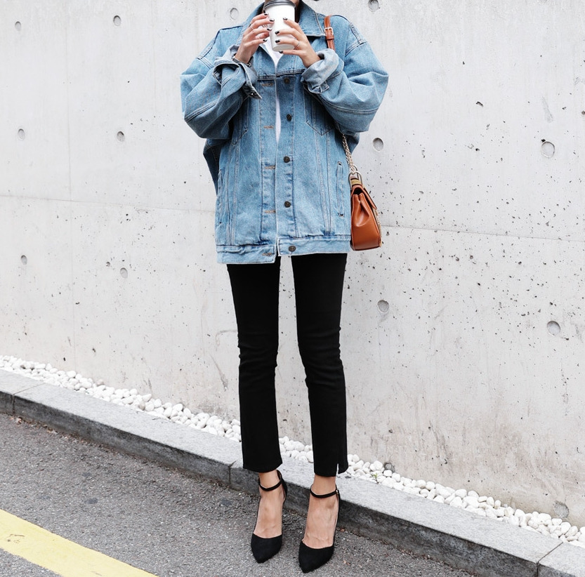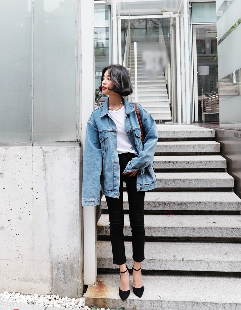 現 复古水洗淺藍色经典宽松做旧牛仔外套