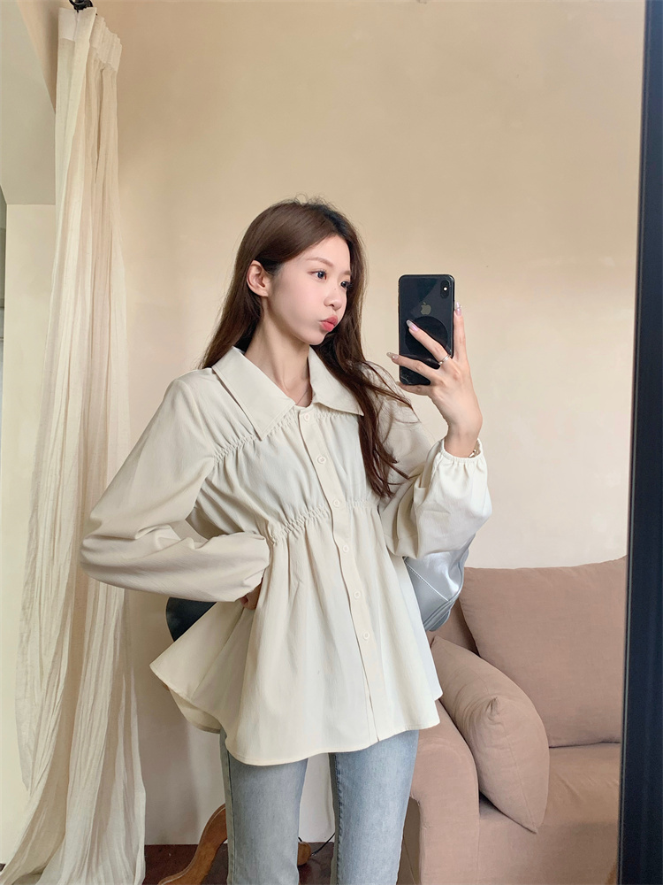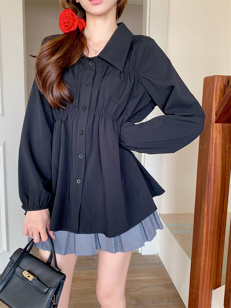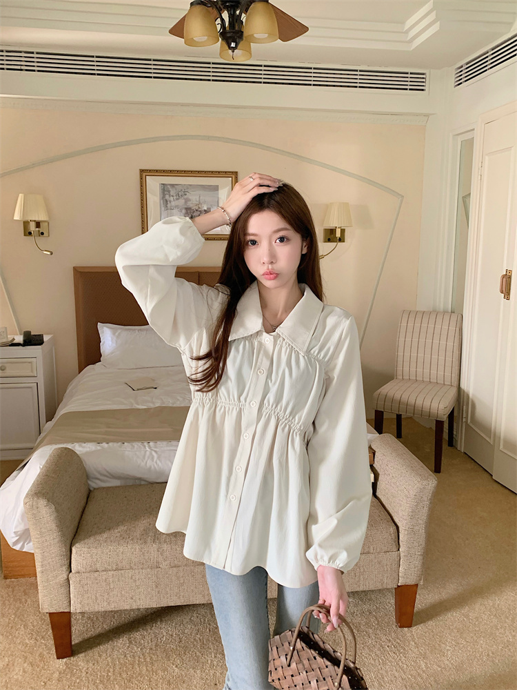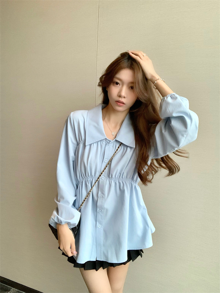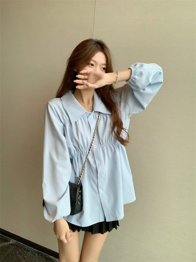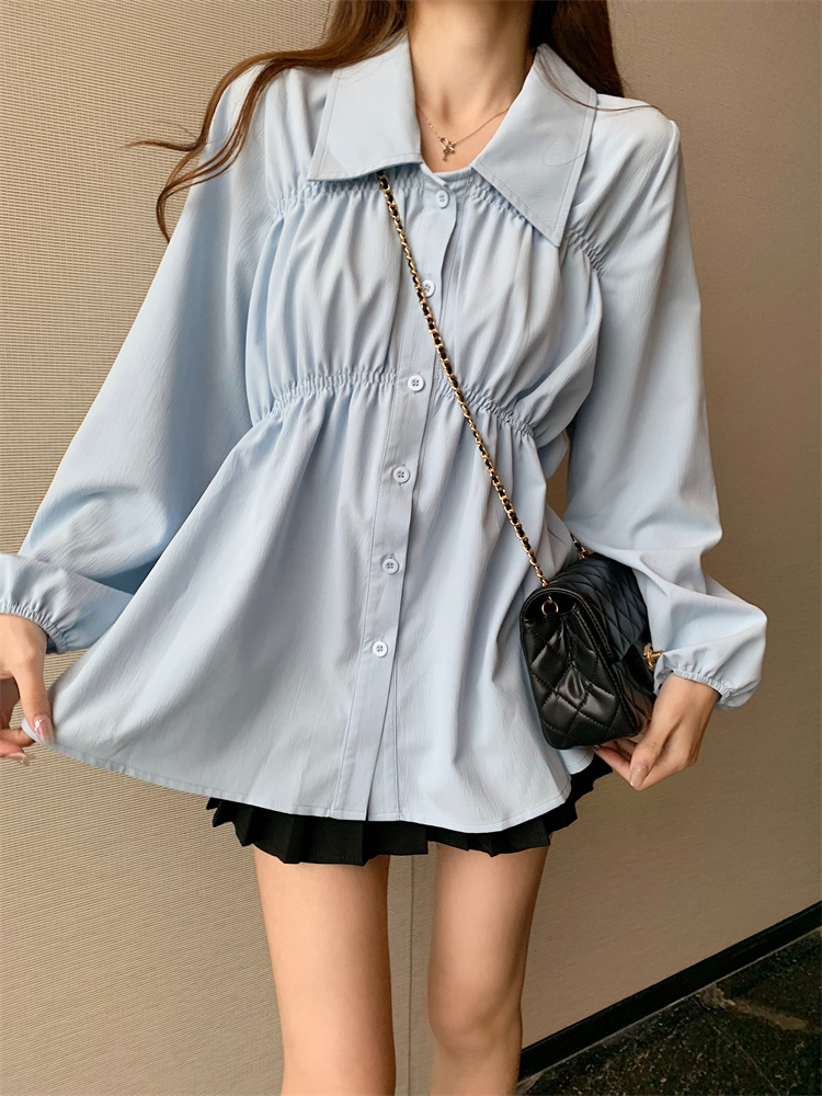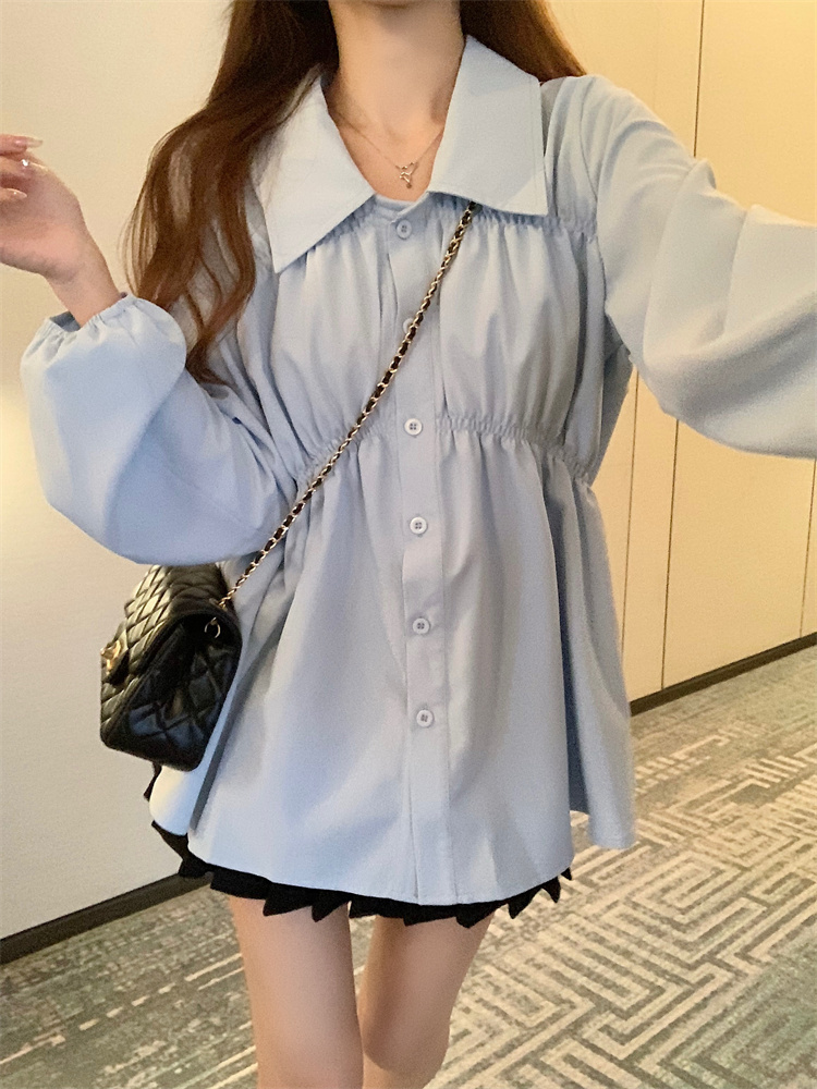 遮肚子收腰正肩长袖女显瘦荷叶边娃娃衫上衣