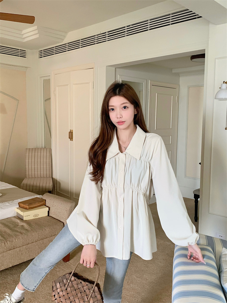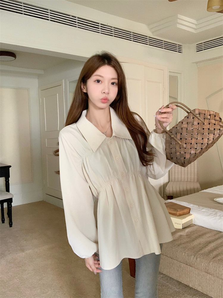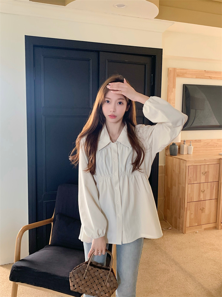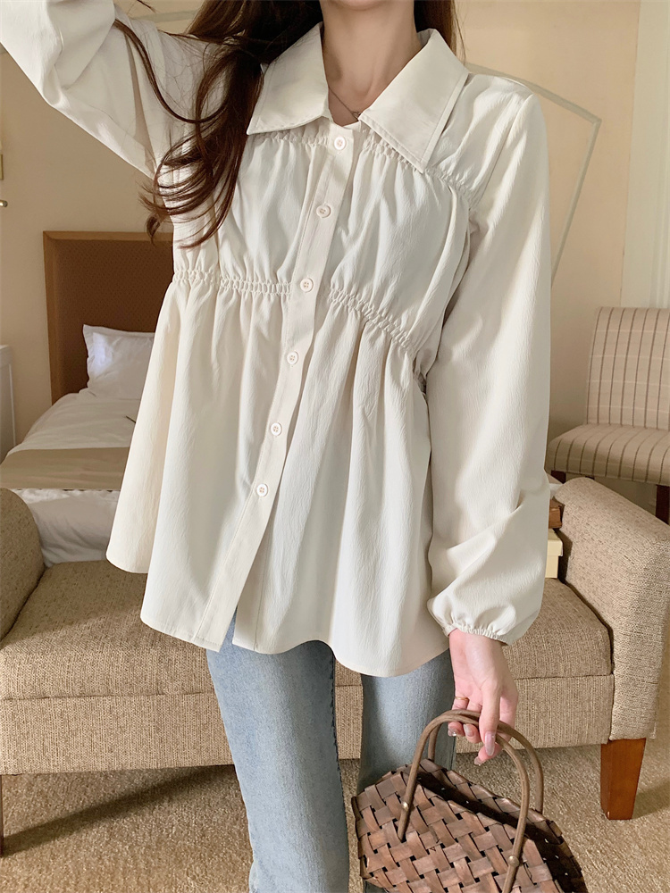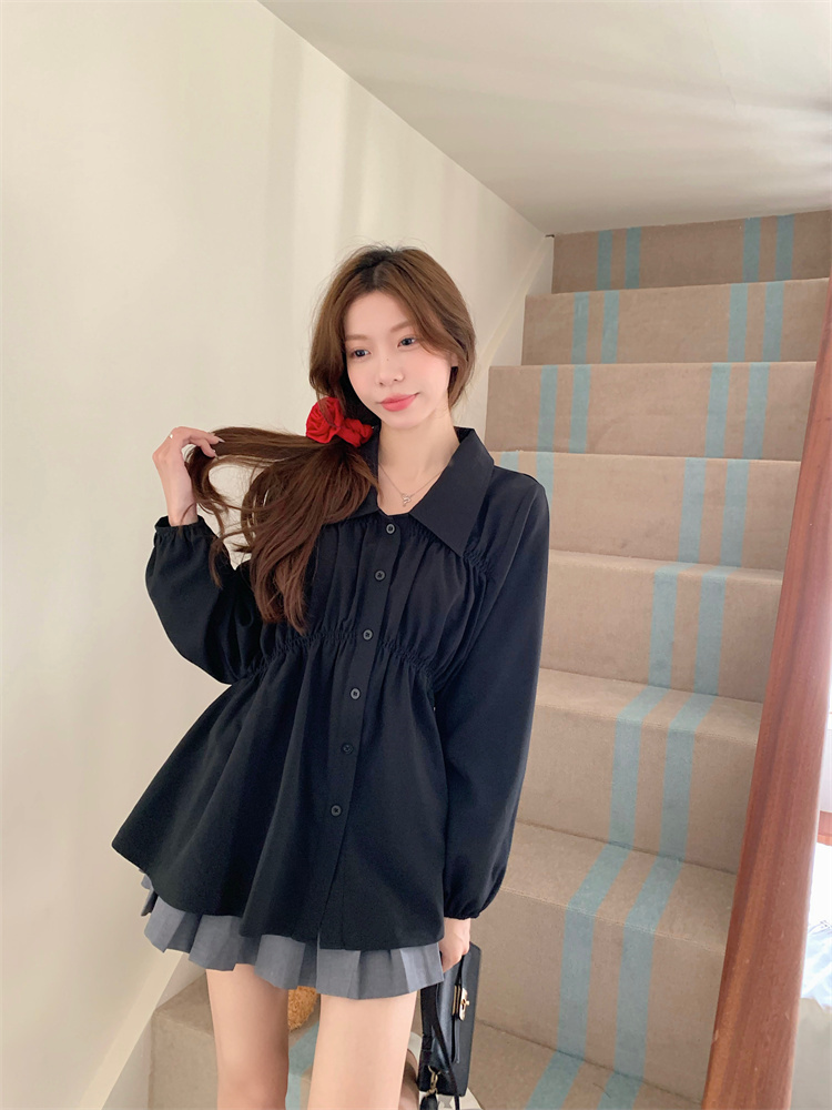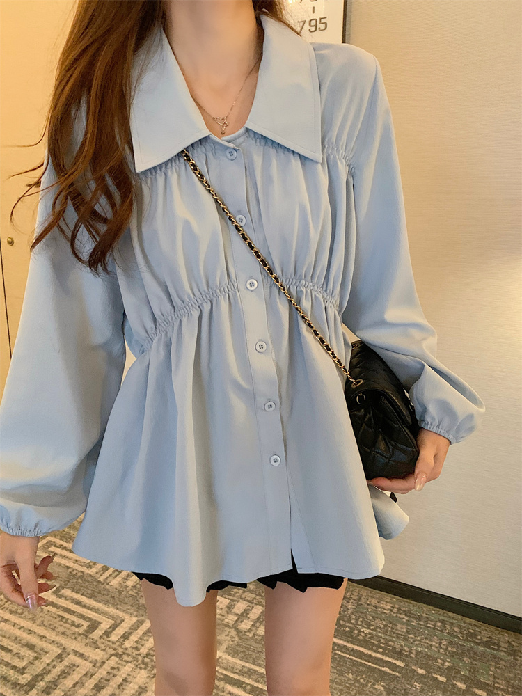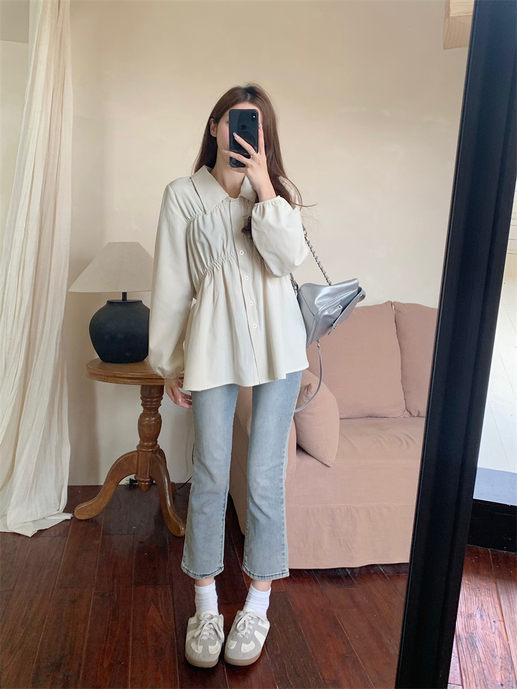 遮肚子收腰正肩长袖女显瘦荷叶边娃娃衫上衣