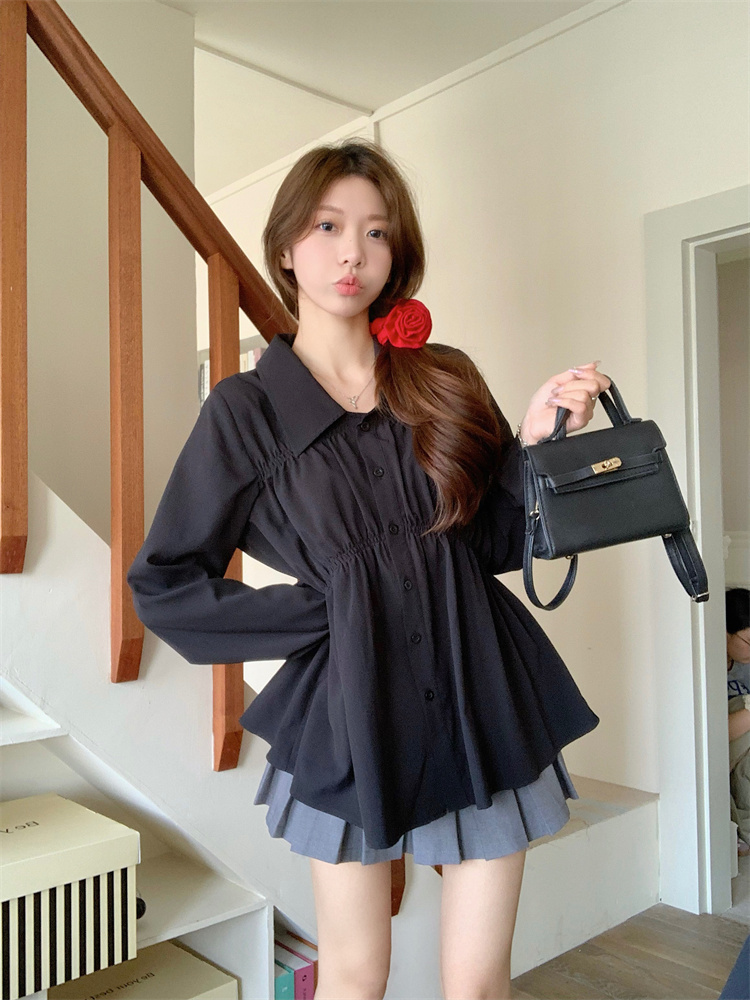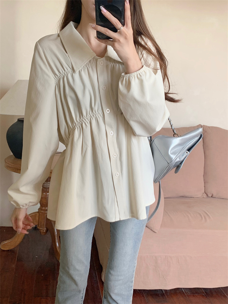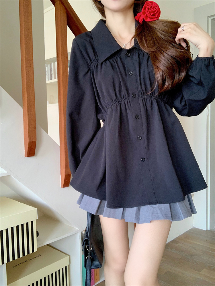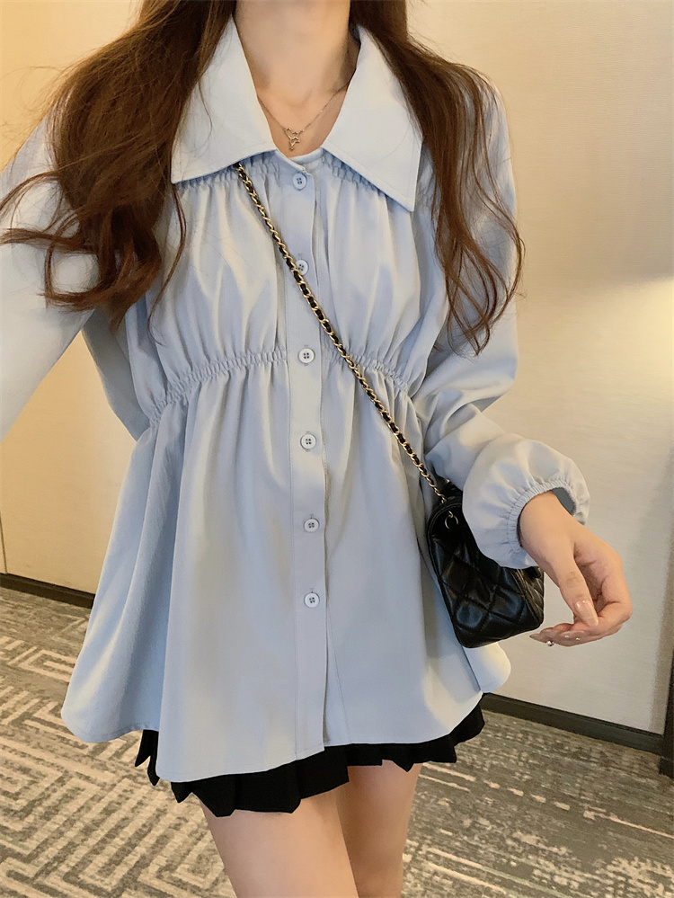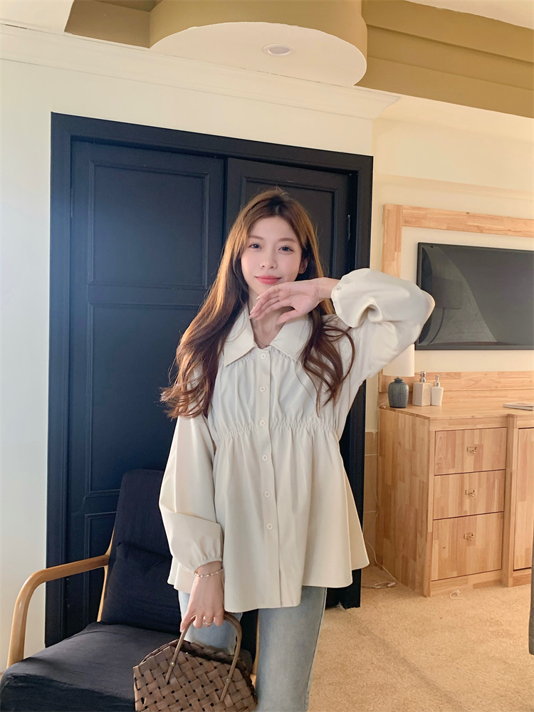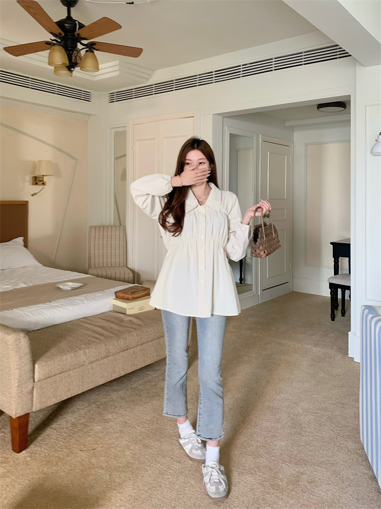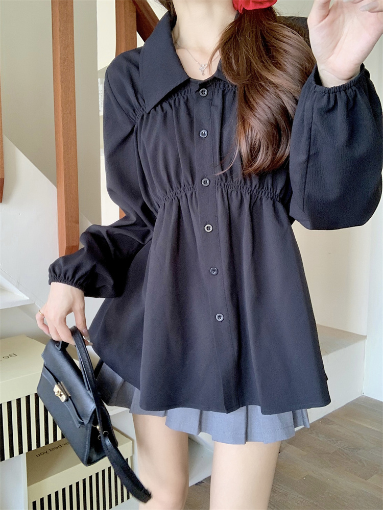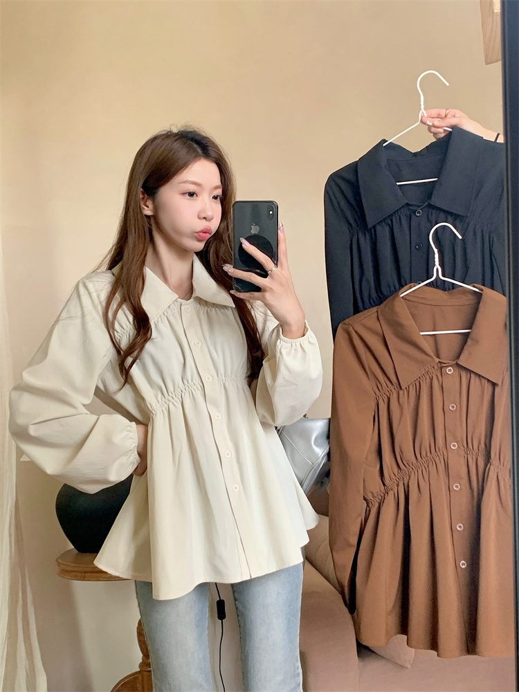遮肚子收腰正肩长袖女显瘦荷叶边娃娃衫上衣