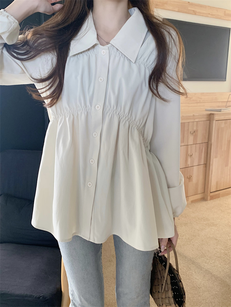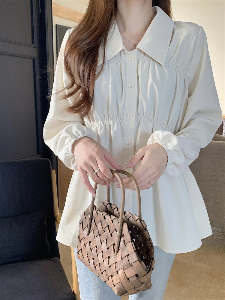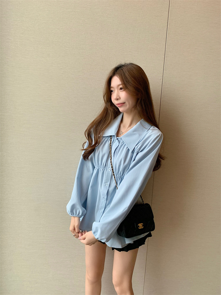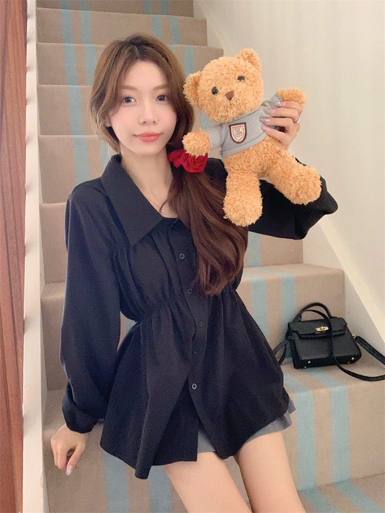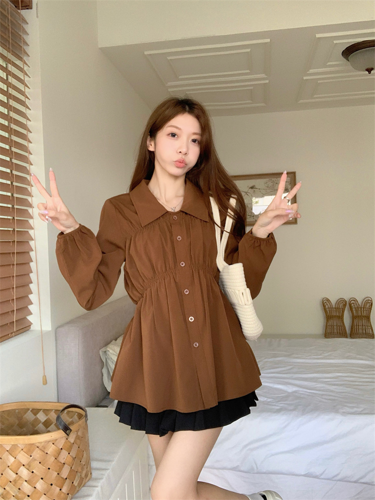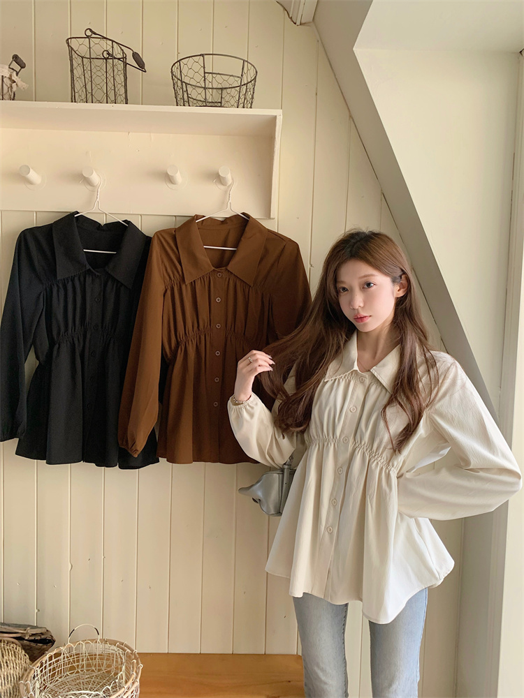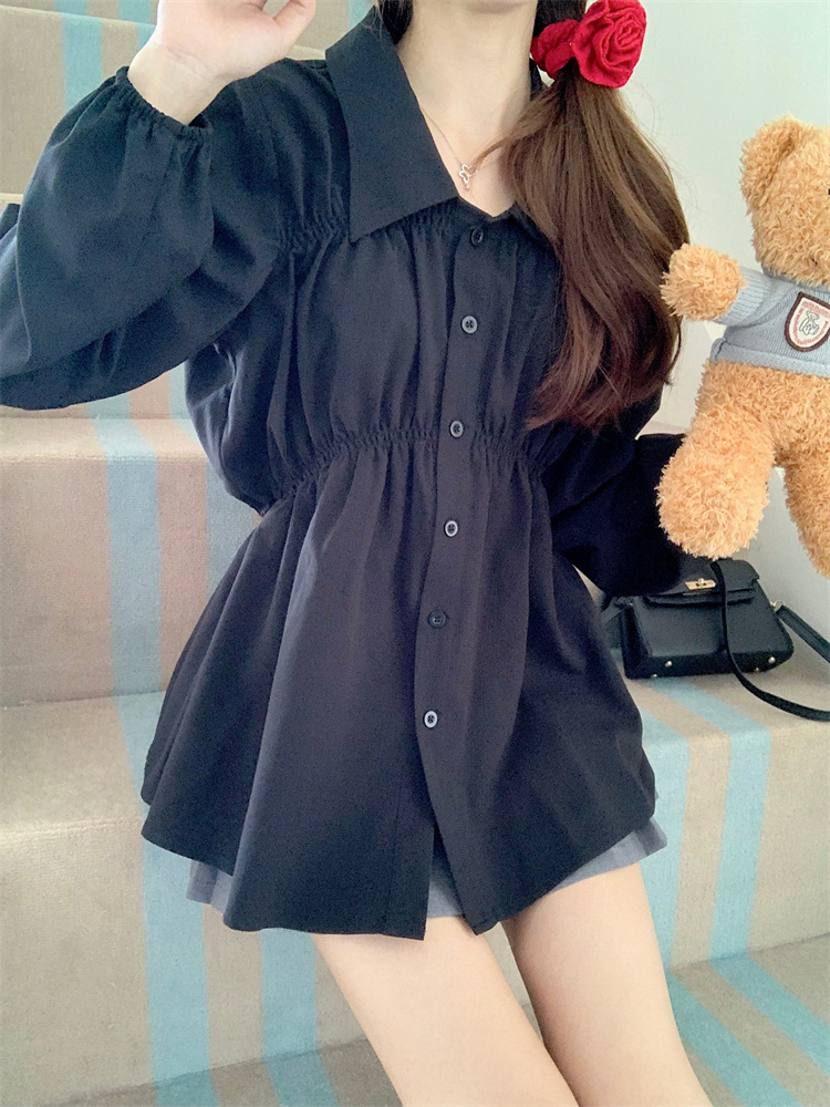 遮肚子收腰正肩长袖女显瘦荷叶边娃娃衫上衣