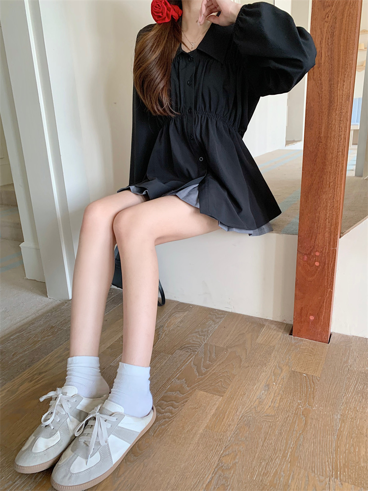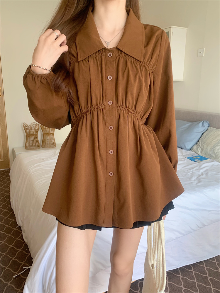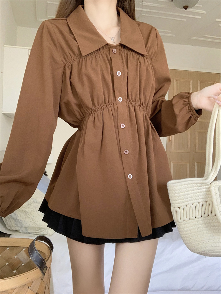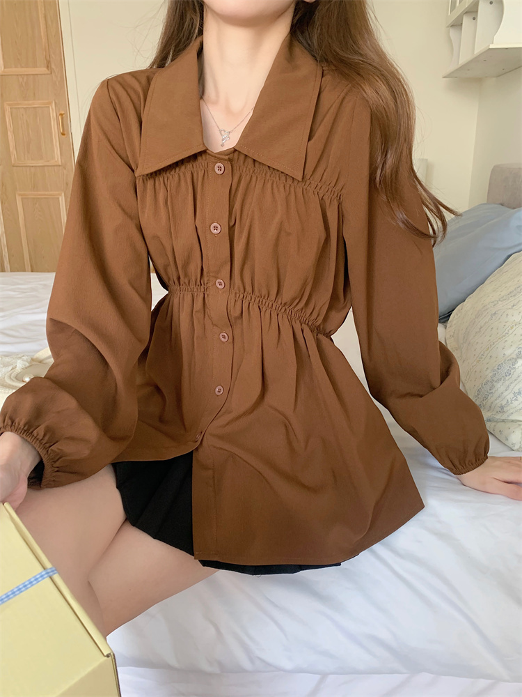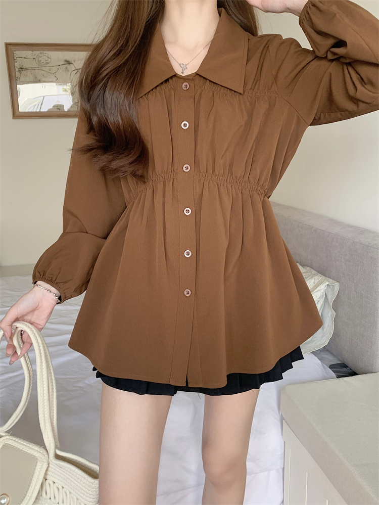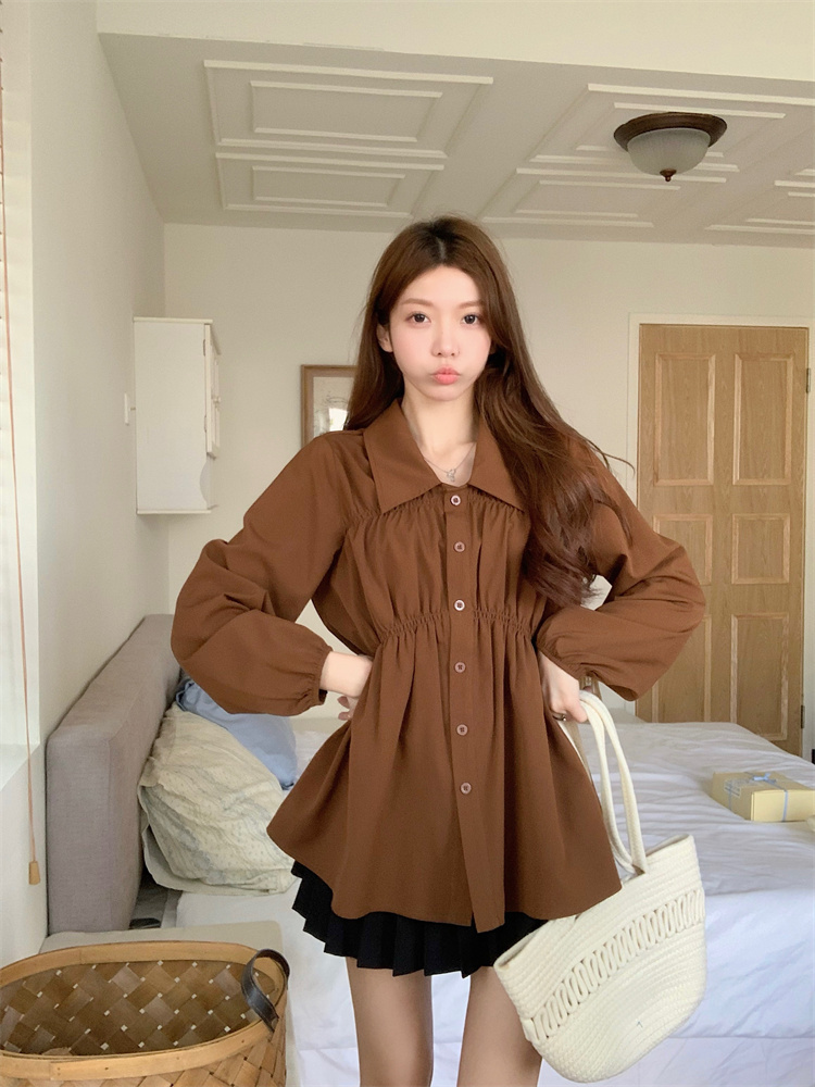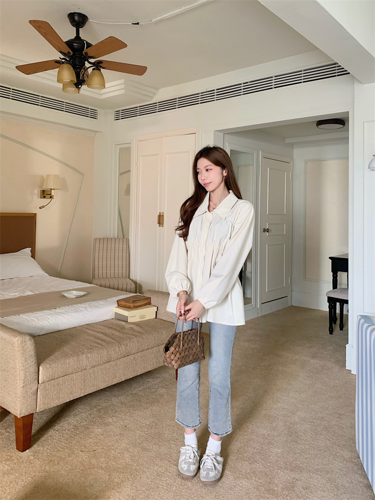 遮肚子收腰正肩长袖女显瘦荷叶边娃娃衫上衣