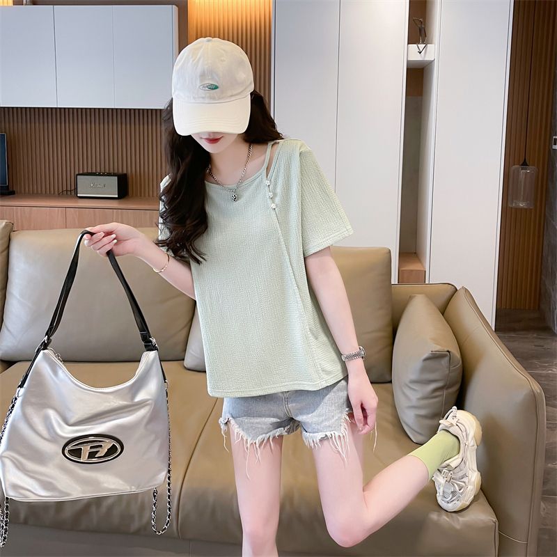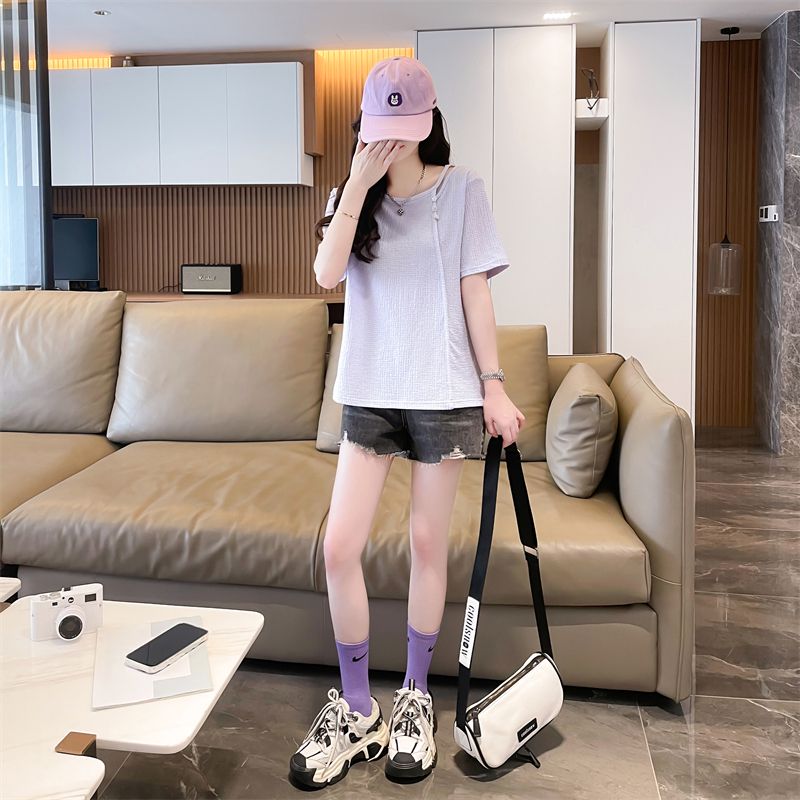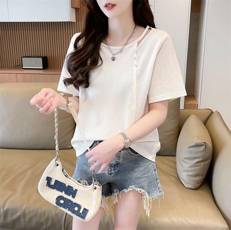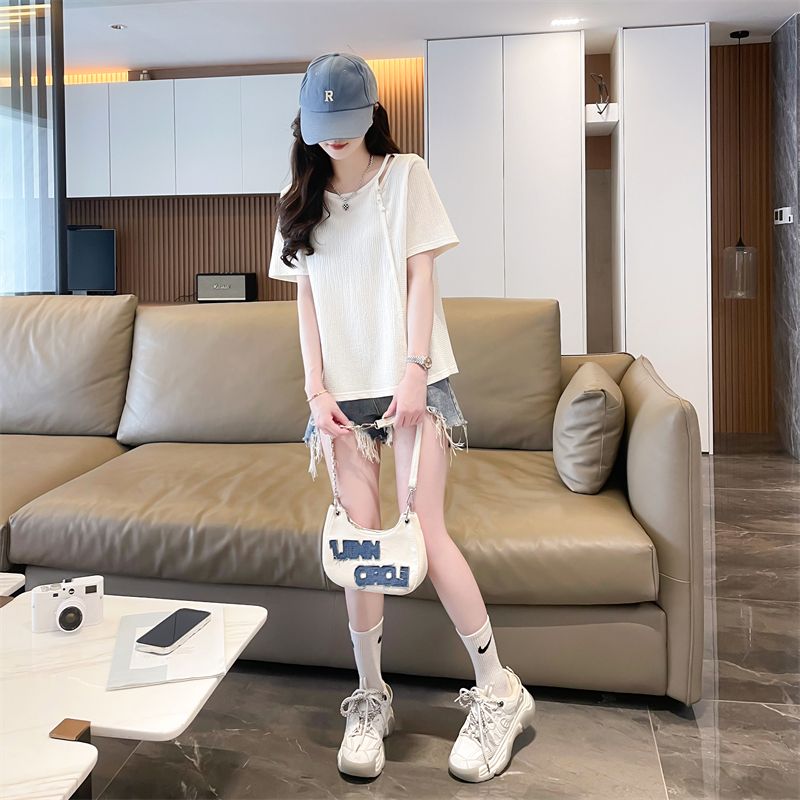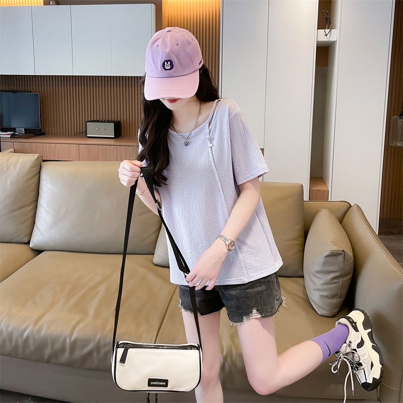 实拍2026夏季设计感韩版小清新半袖宽松上衣短袖t恤女