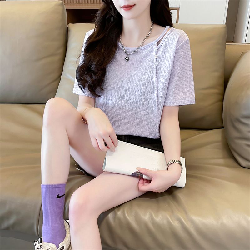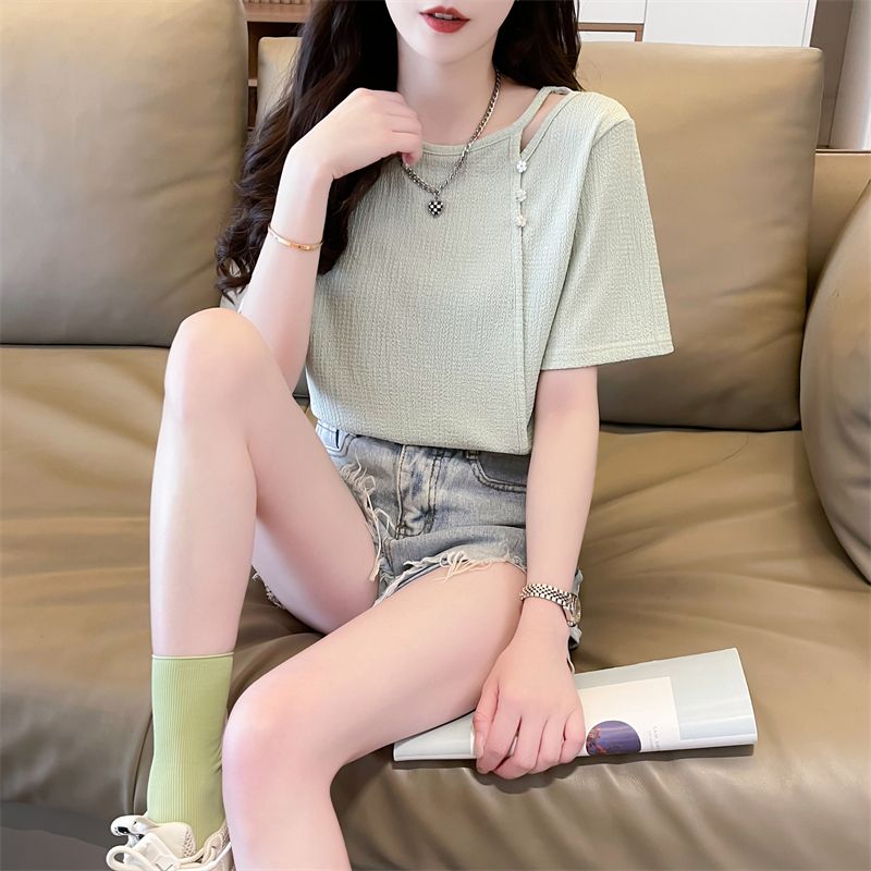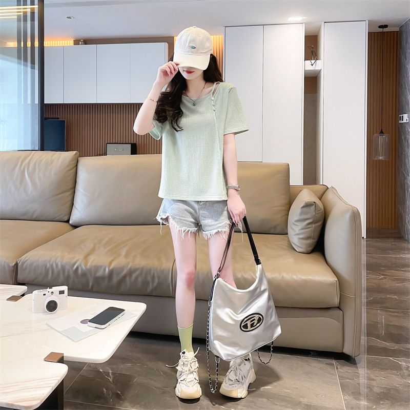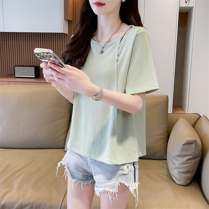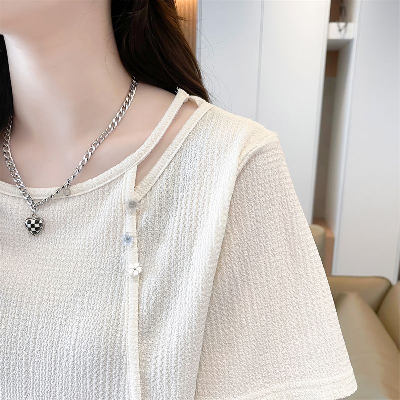实拍2026夏季设计感韩版小清新半袖宽松上衣短袖t恤女